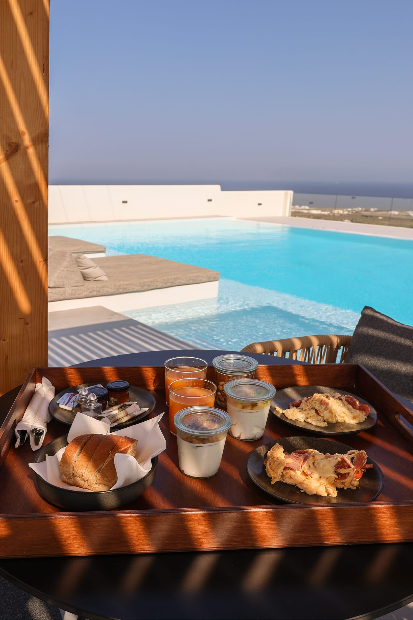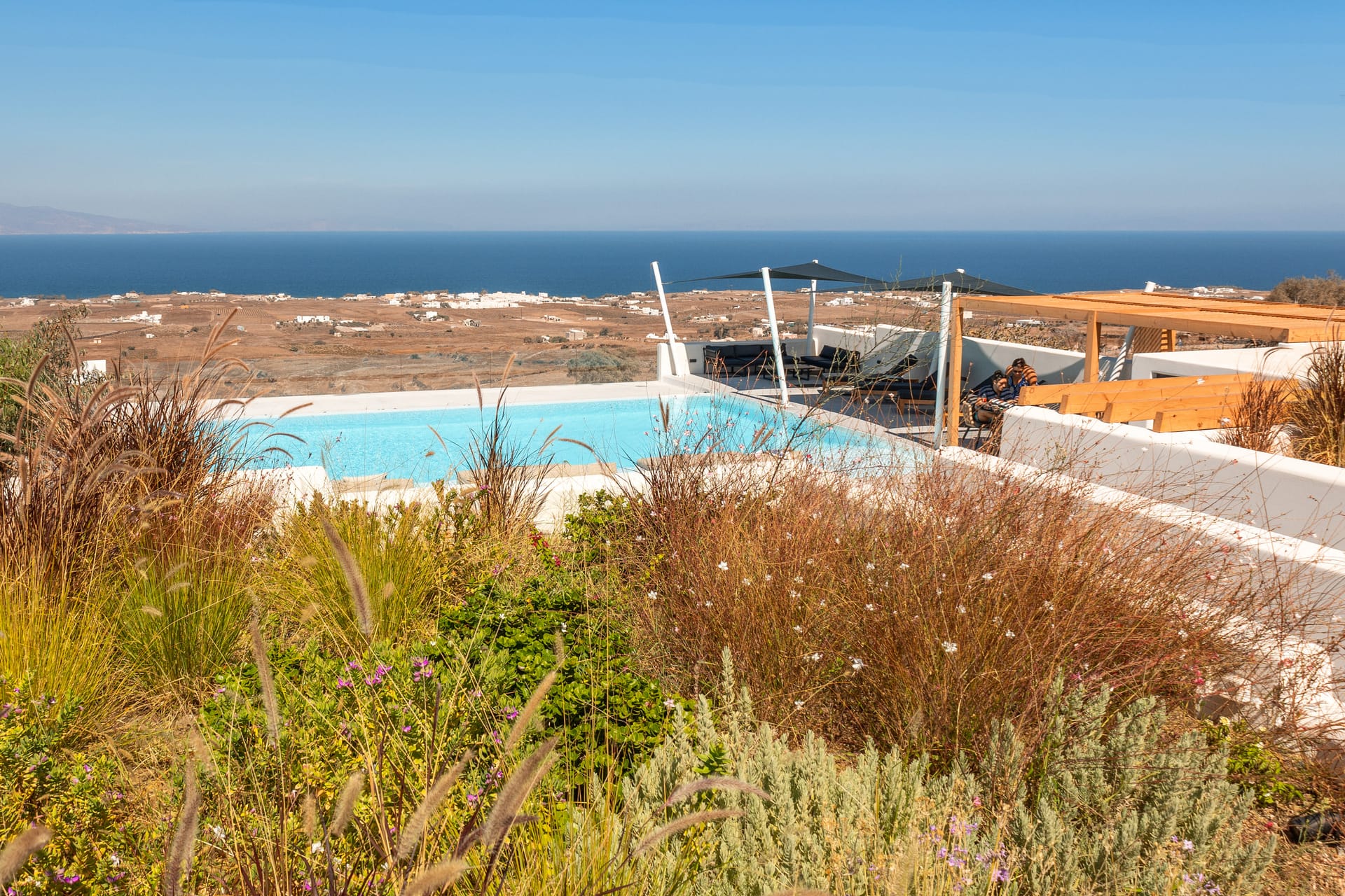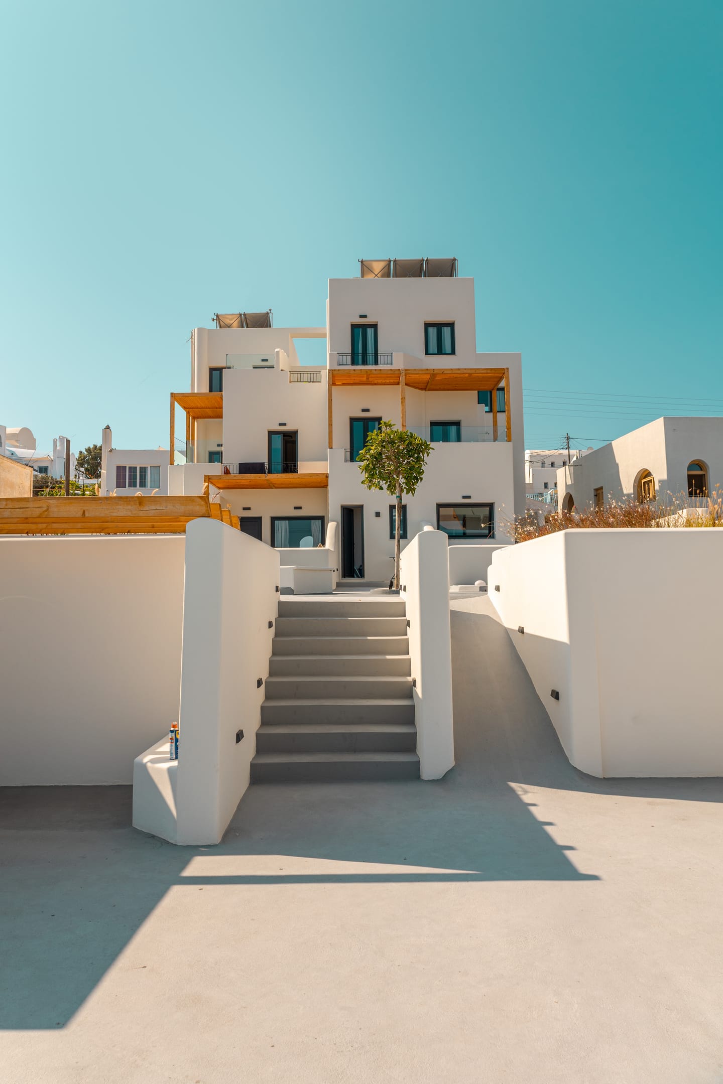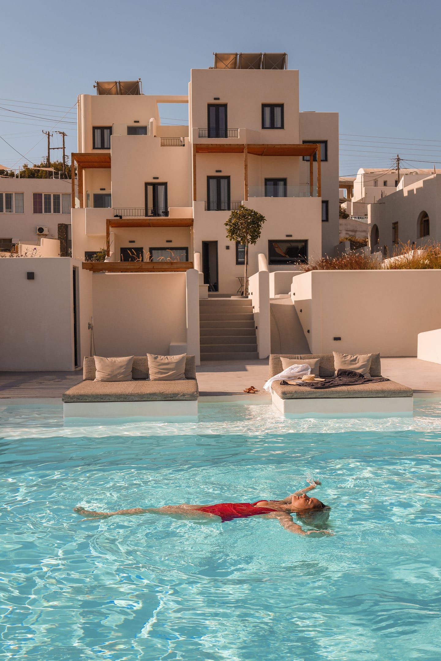 Each suite at Northwind is designed for comfort and privacy, featuring a private veranda and a hot tub. Guests can also relax by the pool and lounge area, which offers unobstructed views of the surrounding vineyards, the sea, and the famous Santorini sunsets. The hotel's location in the village of Oia provides a perfect balance of seclusion and accessibility, situated a short distance from the bustling main strip of the caldera and its iconic cliffside.