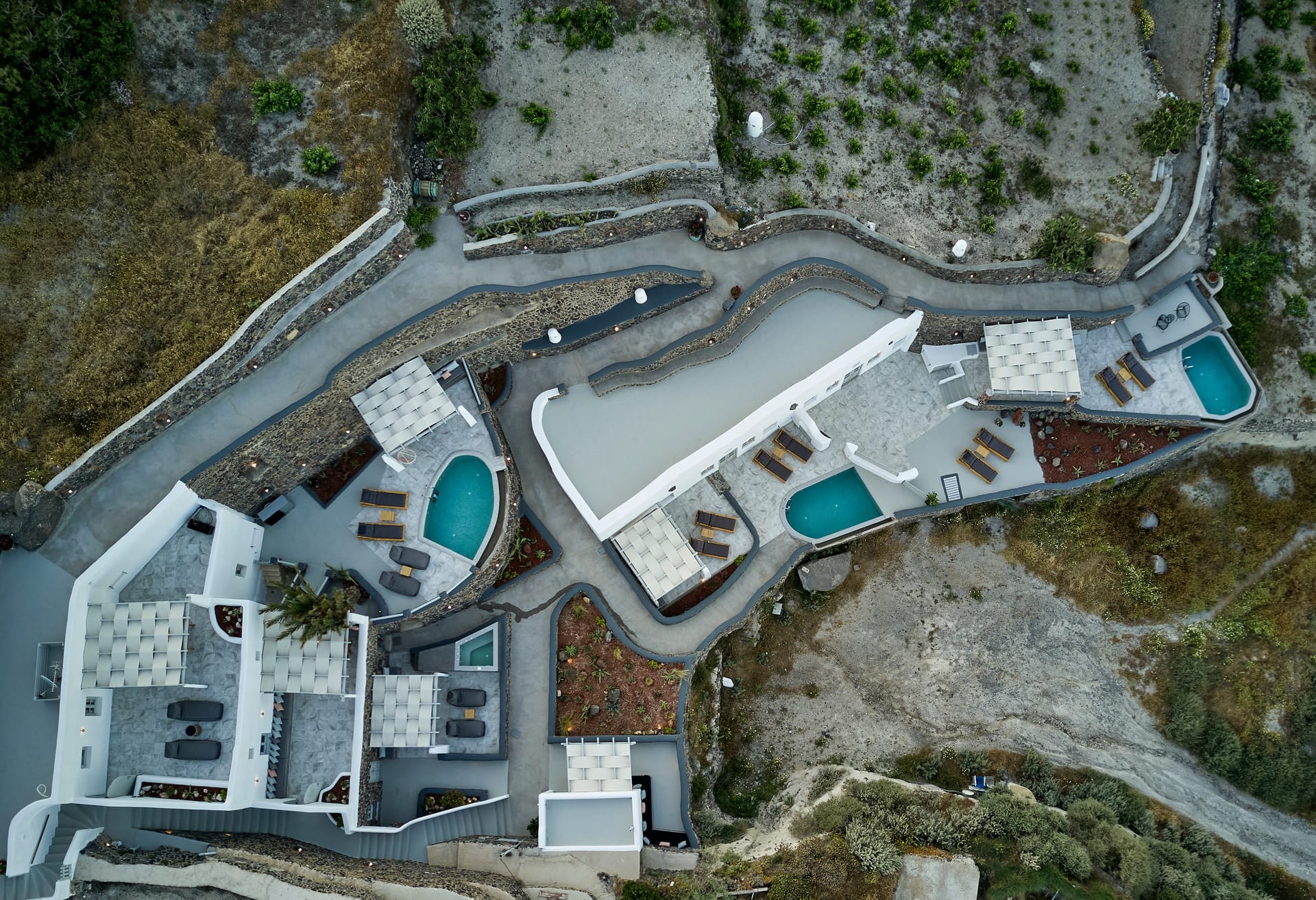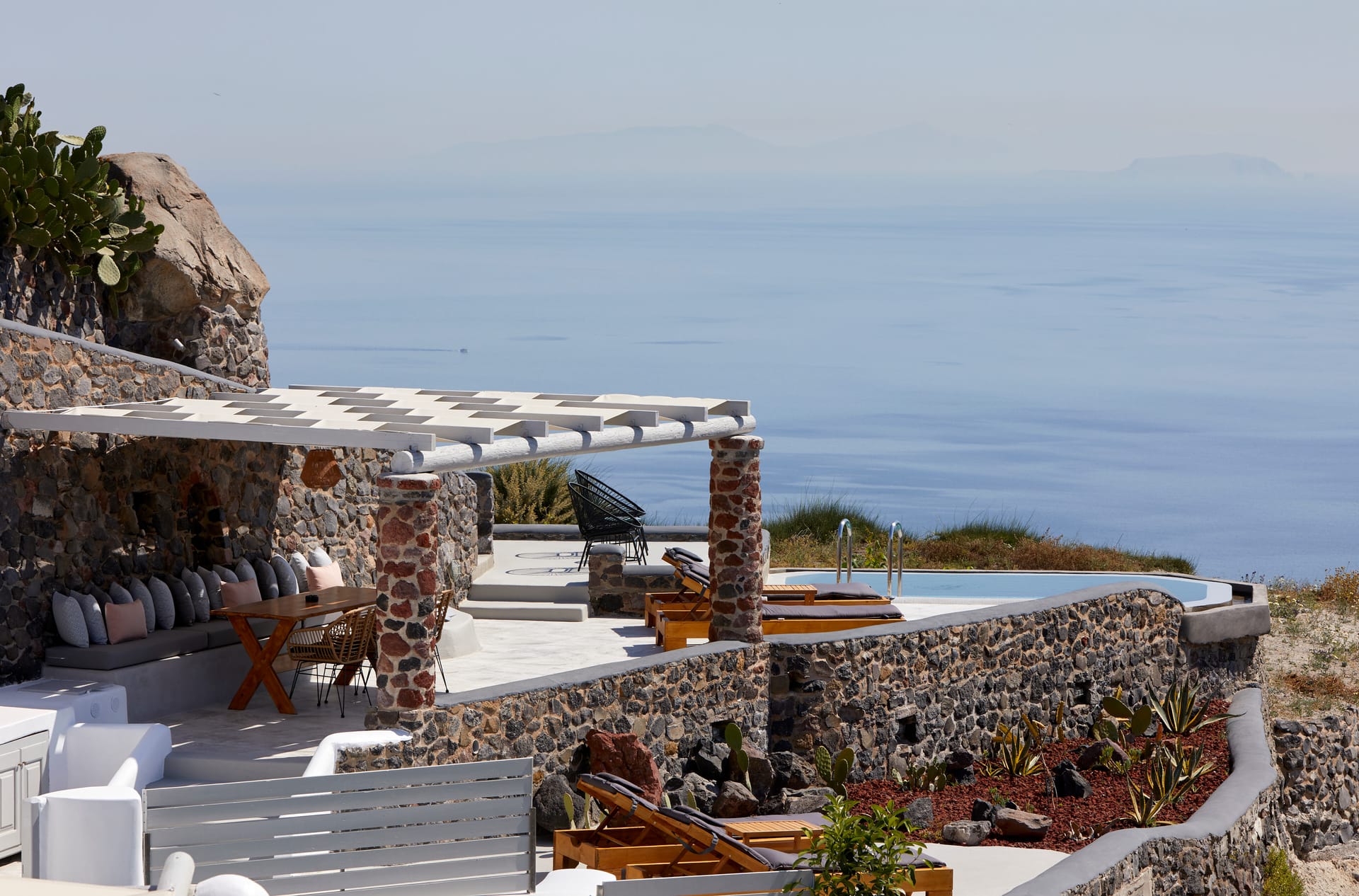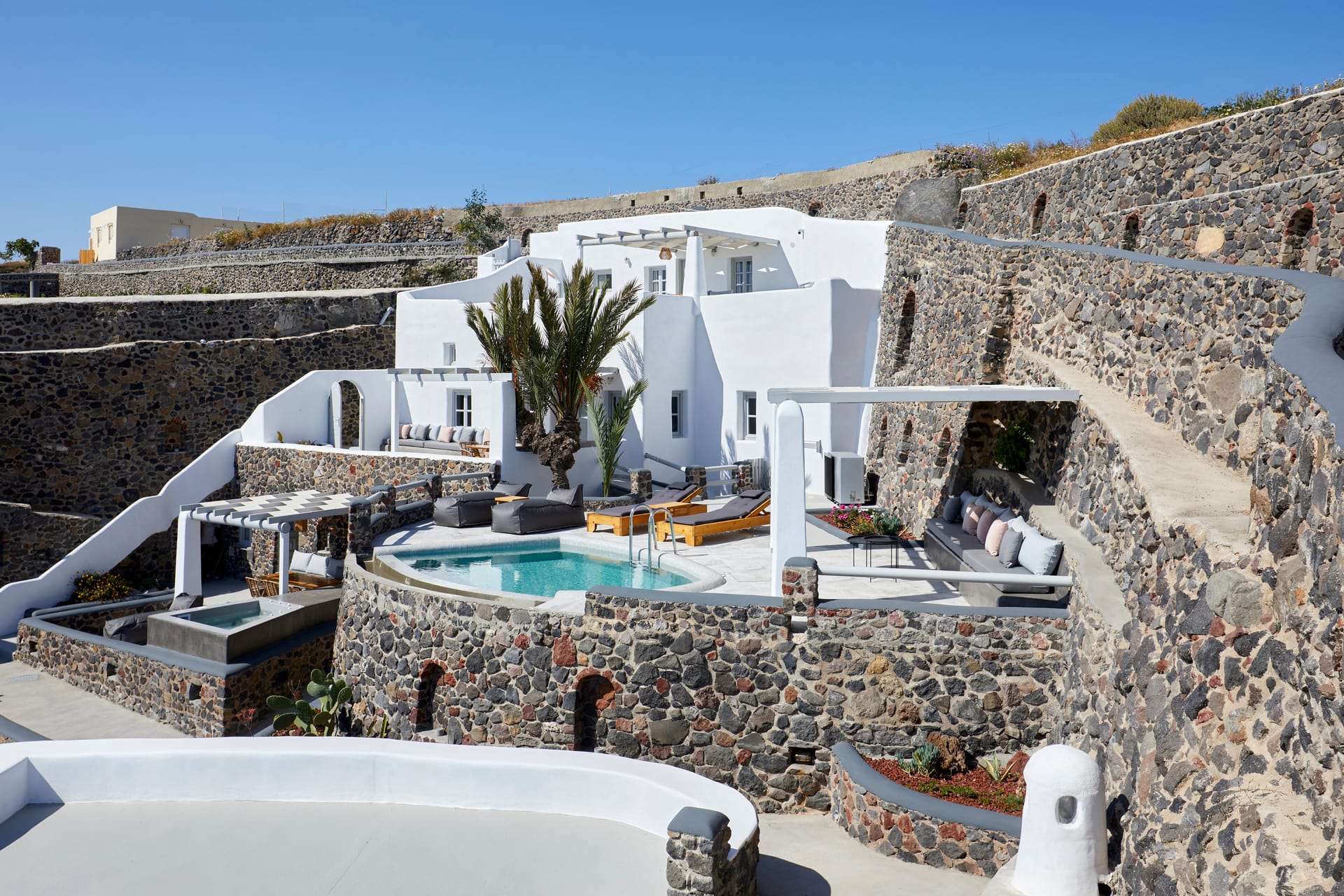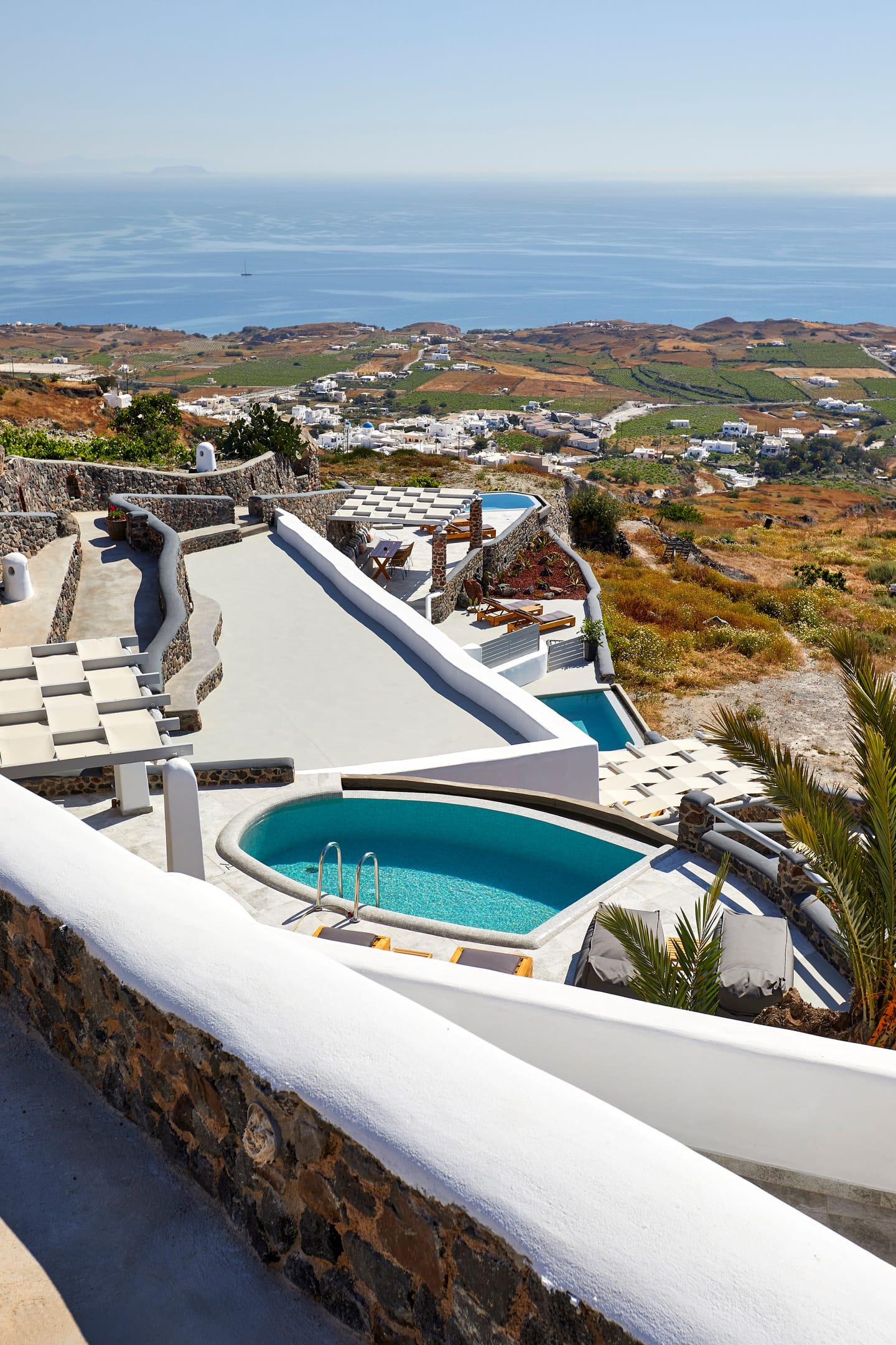 Traditionally built in an amphitheatrical location, they are fully equipped, with a minimal design featuring all wonderful elements of a sophisticated Cycladic aesthetic.