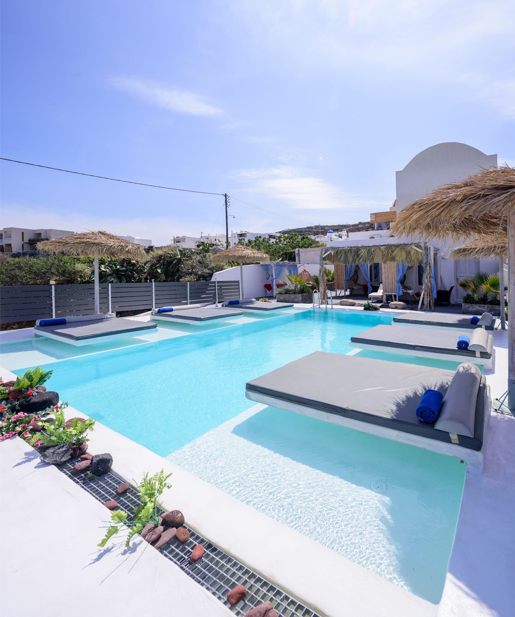 Welcome to Nãlu Suites in majestic Santorini, where the Aegean horizon, the poolside air, and the radiant Cycladic features reveal your path to a transcendental home away from home experience.