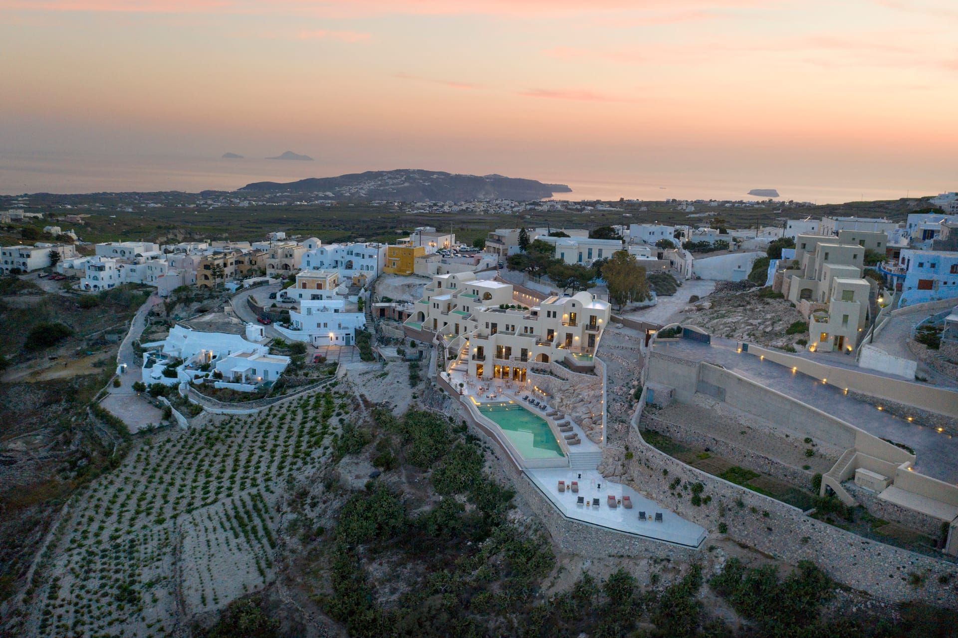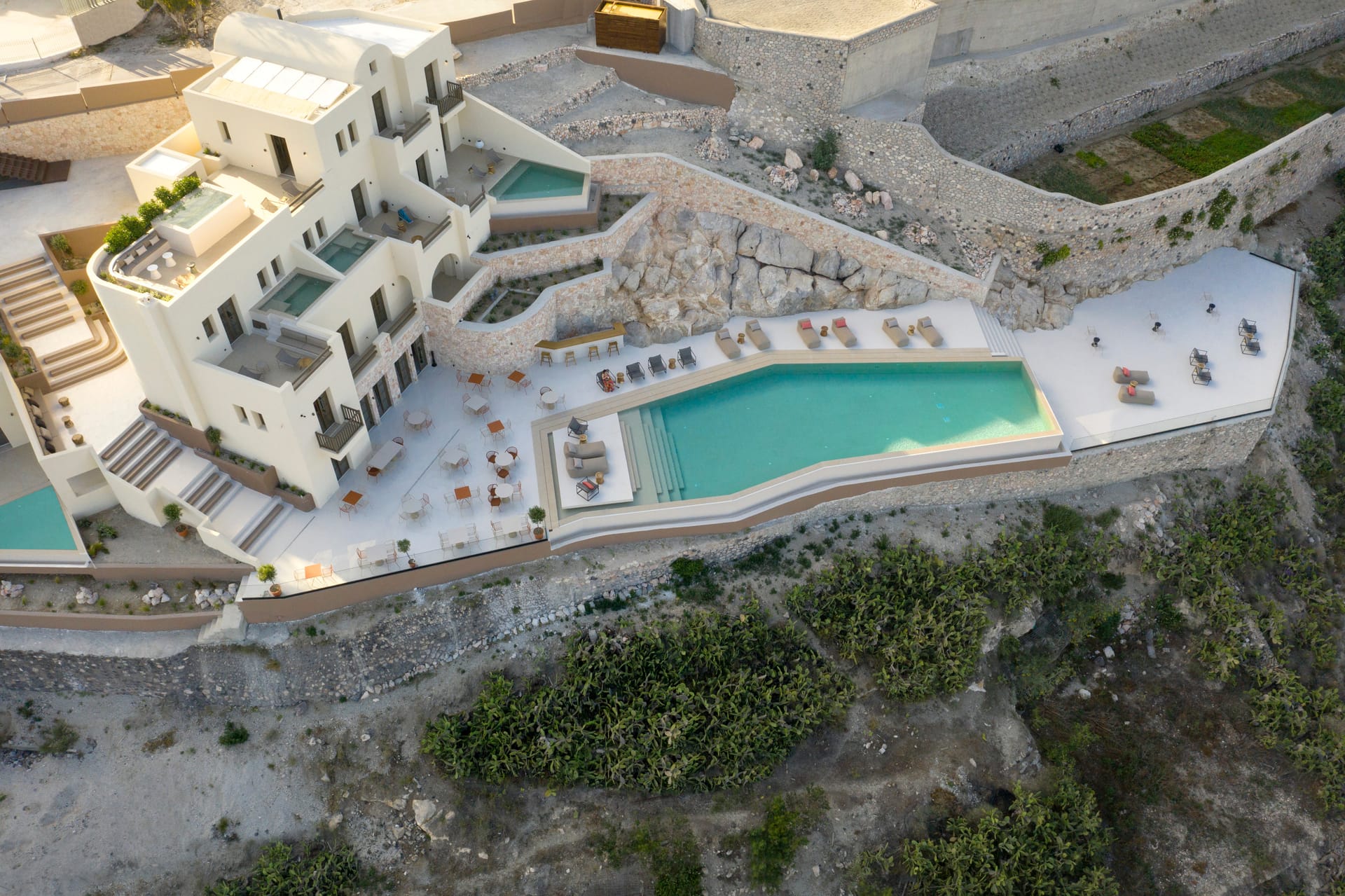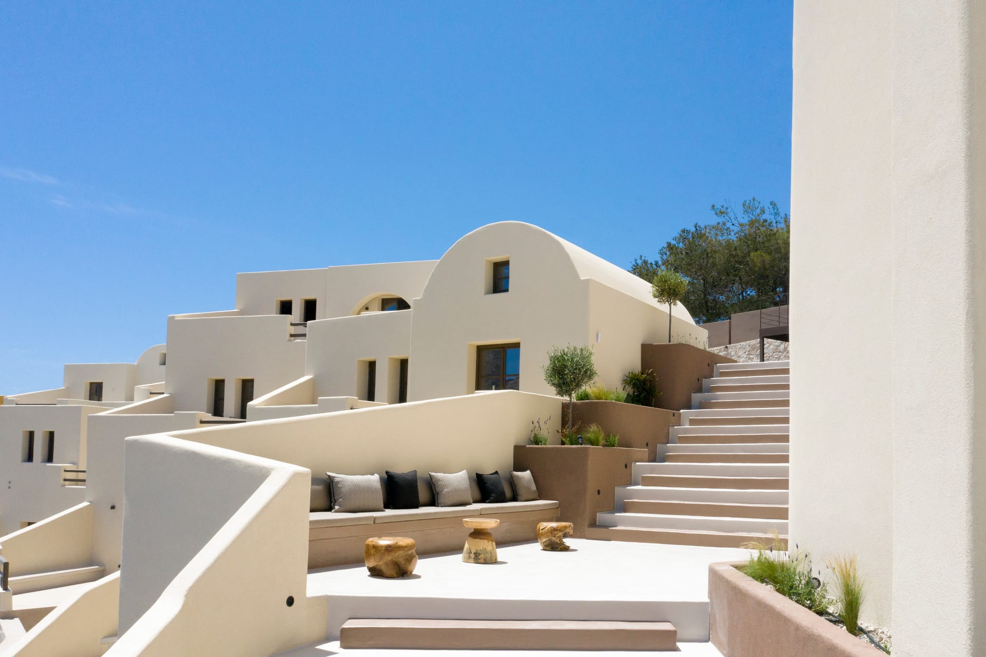 Elessa Hotel is a prestigious 5-star hotel offering outstanding amenities for absolute comfort and relaxation. The hotel features a common swimming pool and a renowned restaurant called Elani. Private parking is also available. Guests can enjoy attentive room service and a 24-hour front desk. The hotel is only for adults and we accept children from the age of 16 and above. The hotel provides luxurious suites and villas with open spaces, showcasing traditional accents and soothing beige tones that create a warm and tranquil atmosphere. Each accommodation includes a private swimming pool or plunge pool with mesmerizing views.