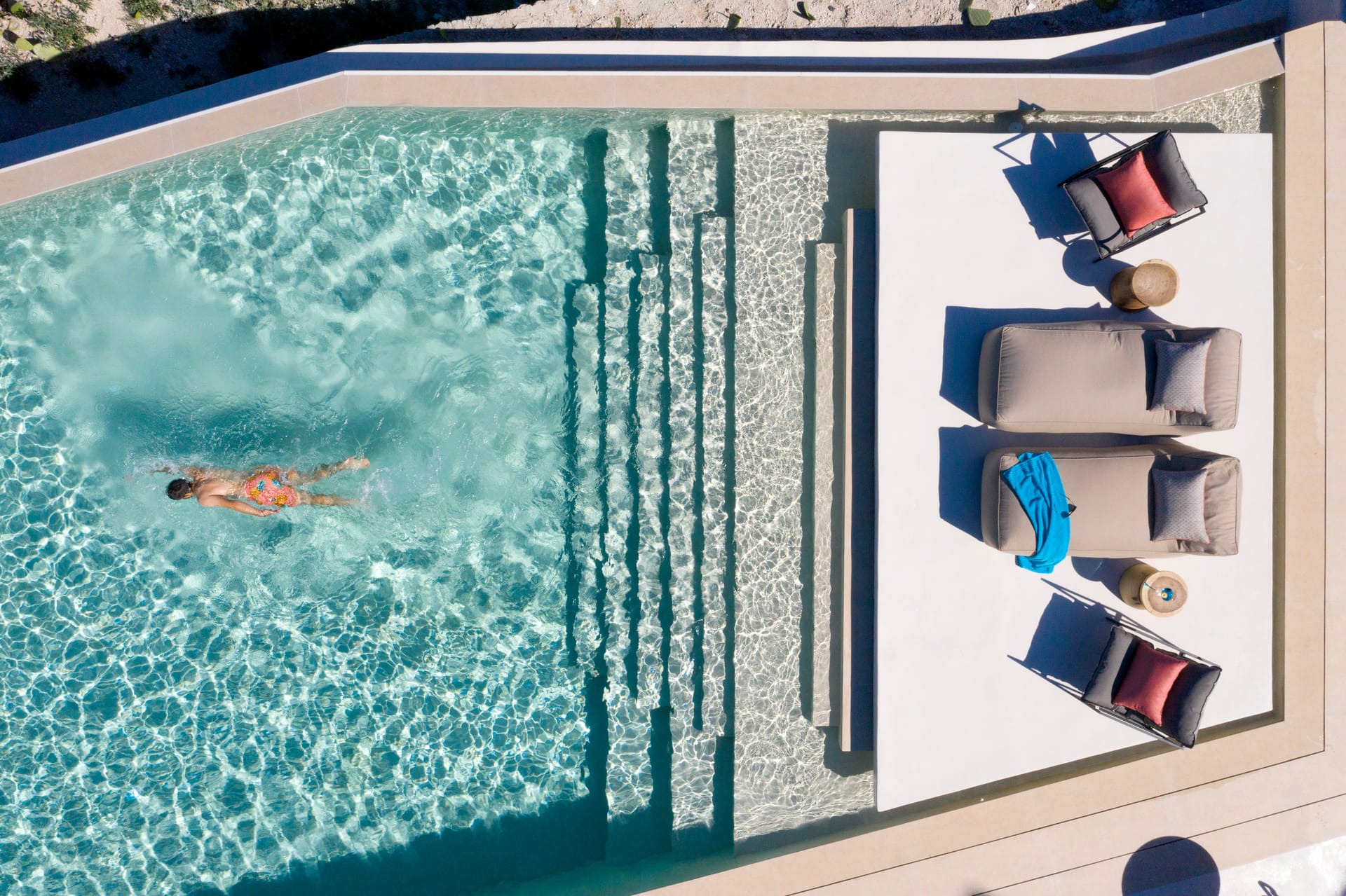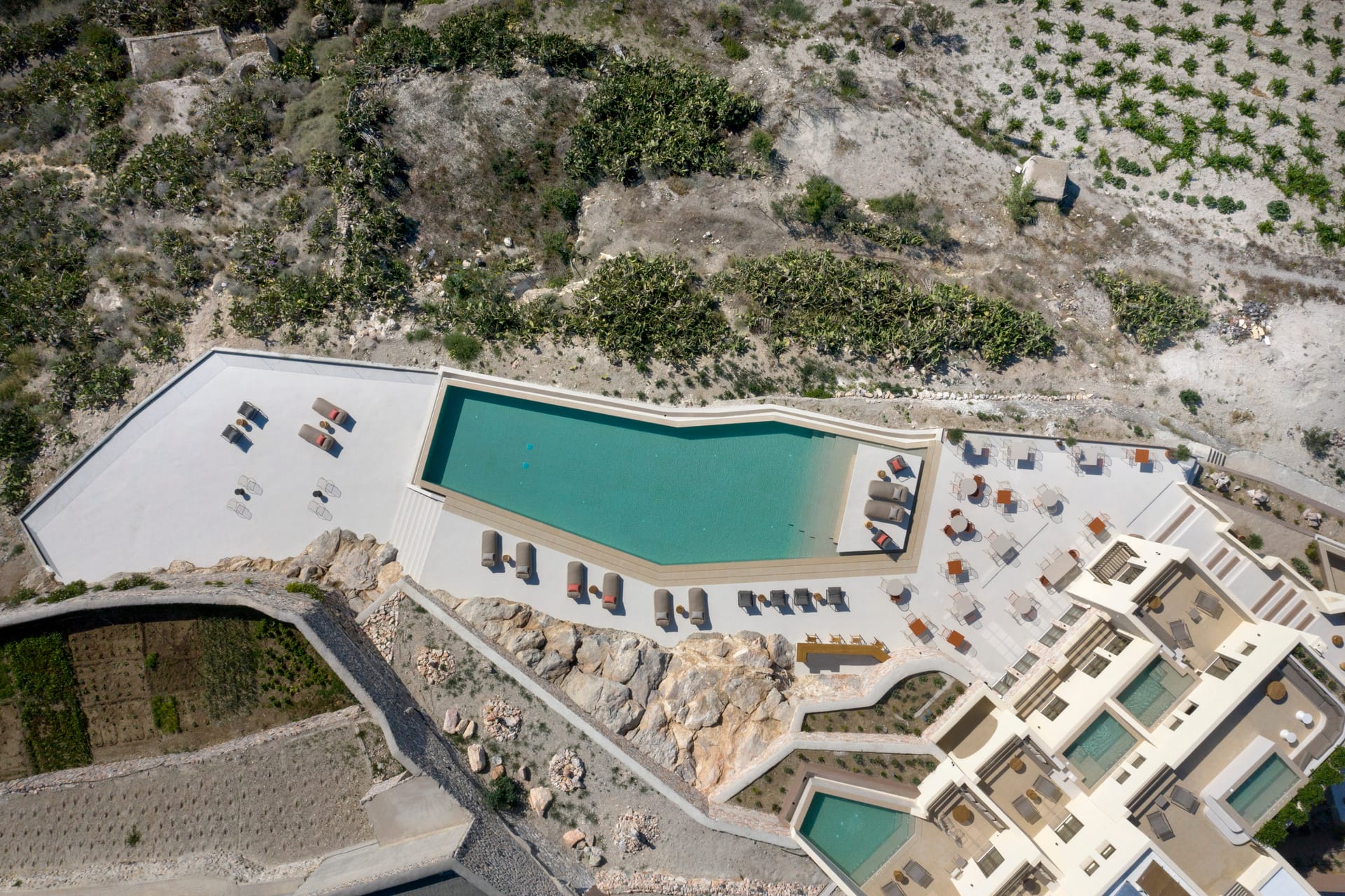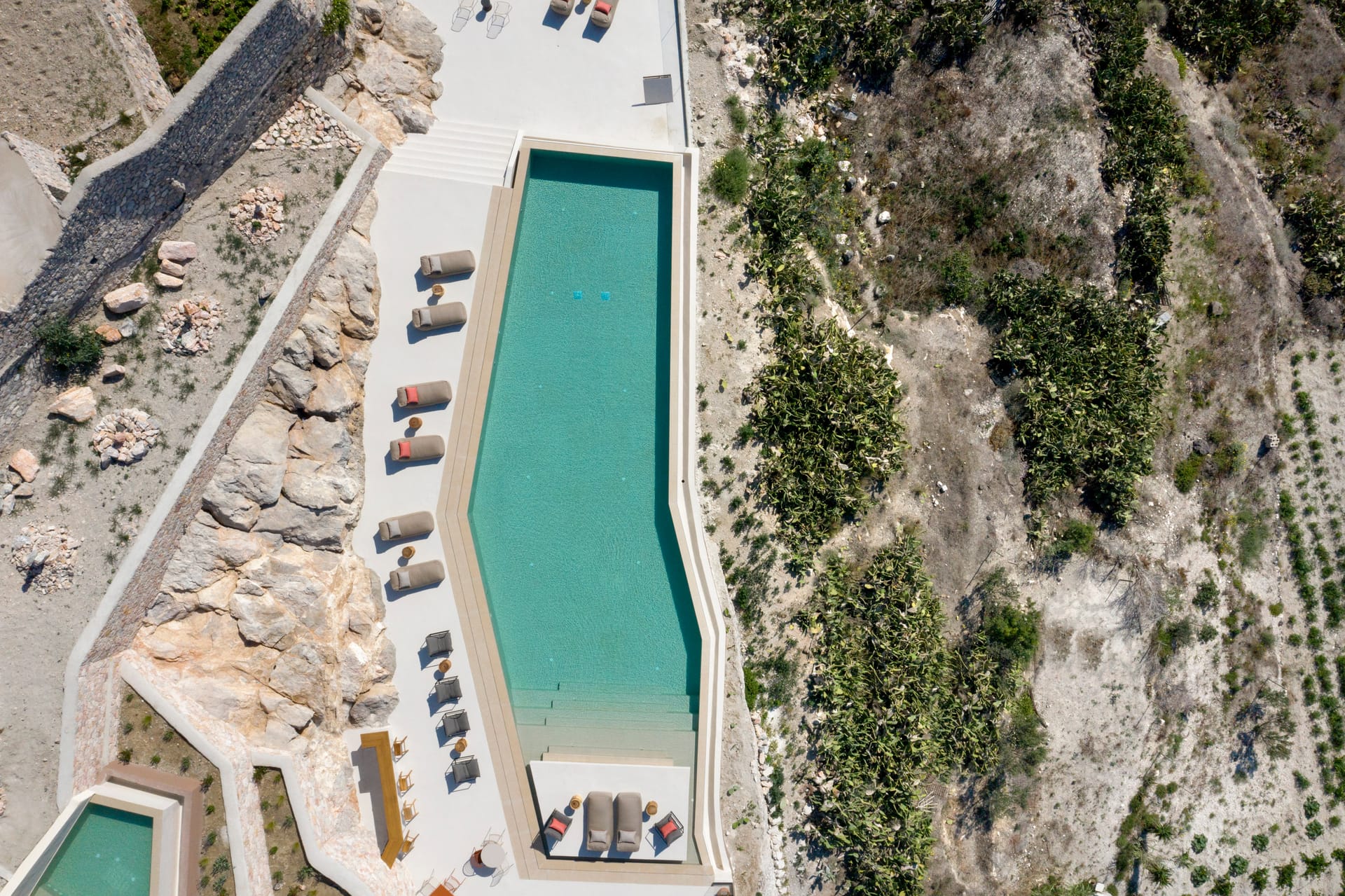 Elessa Hotel is a prestigious 5-star hotel offering outstanding amenities for absolute comfort and relaxation. The hotel features a common swimming pool and a renowned restaurant called Elani. Private parking is also available. Guests can enjoy attentive room service and a 24-hour front desk. The hotel is only for adults and we accept children from the age of 16 and above. The hotel provides luxurious suites and villas with open spaces, showcasing traditional accents and soothing beige tones that create a warm and tranquil atmosphere. Each accommodation includes a private swimming pool or plunge pool with mesmerizing views.
