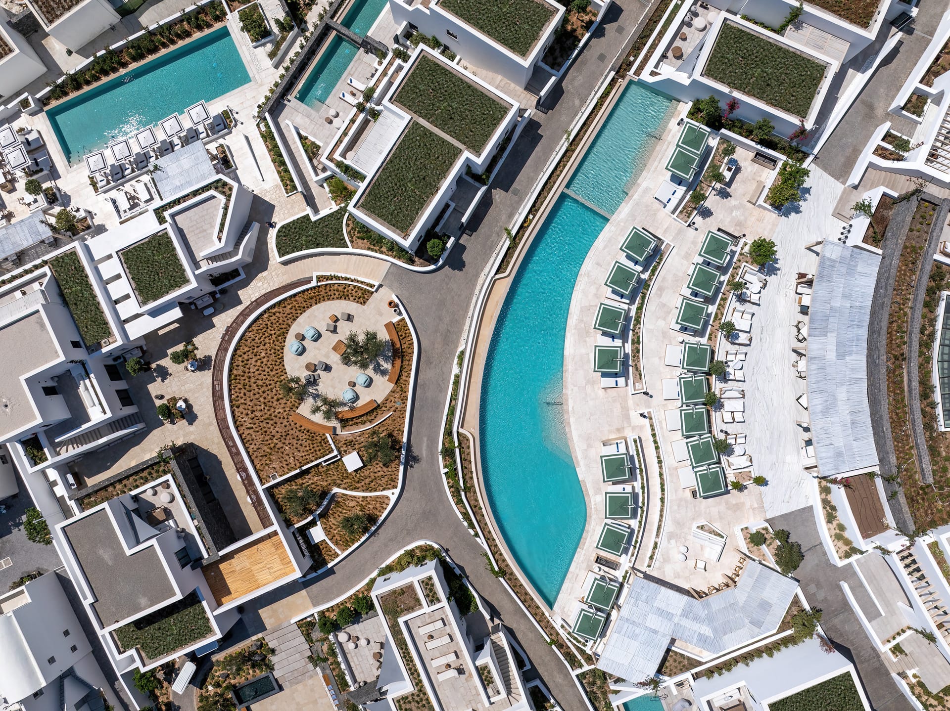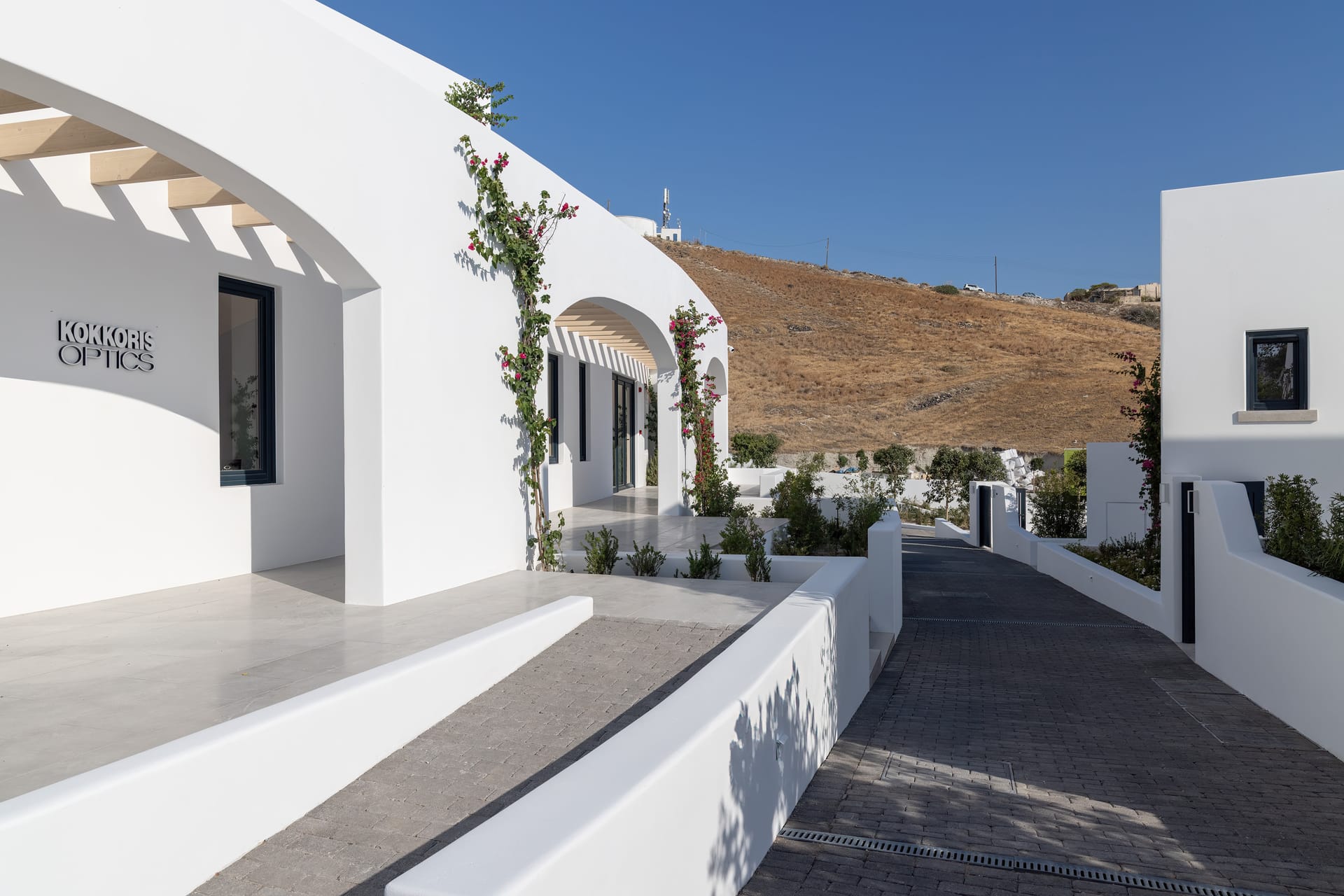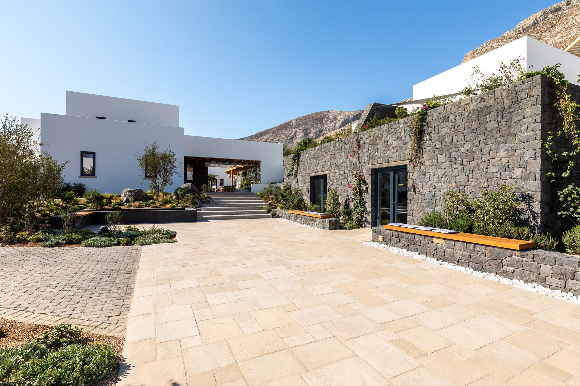 Extended over the foothills of Thira Mountain, the site exudes a vibrant energy, an unparalleled privacy and breathtaking views