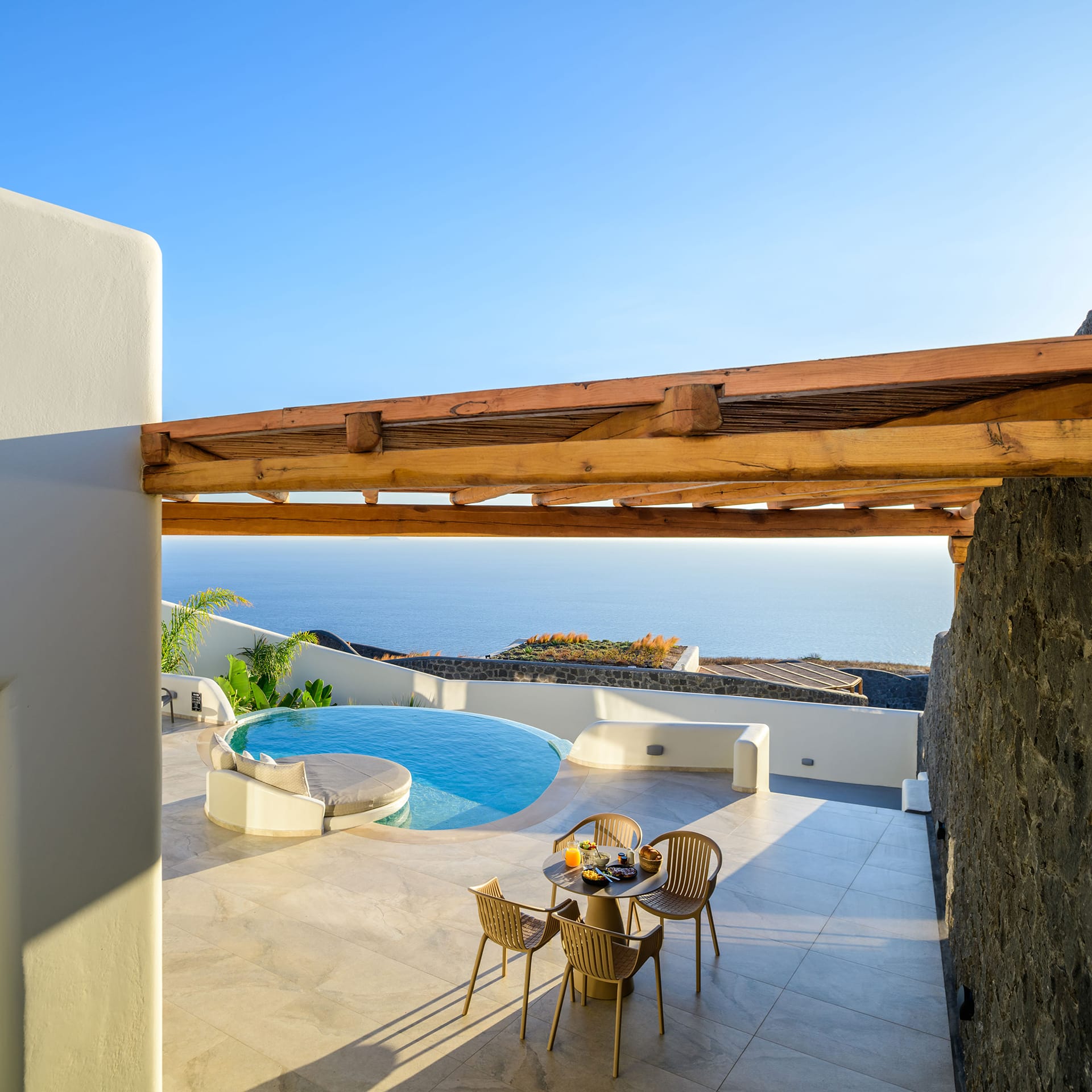Look no further for a healthy and sustainable vacation. Villa «Secret Path Luxury Villas» is located in Santorini Island. This villa is located in 7 km from the city center. You can take a walk and explore the neighbourhood area of the villa — Santorini Old Harbor and Athinios Port Santorini. Free Wi-Fi on the territory will help you to stay on-line. If you travel by car, you can park in a parking zone. Want to have an excursion? Consult the tour assistance desk of the villa. At the guests’ disposal, there’s also a concierge.