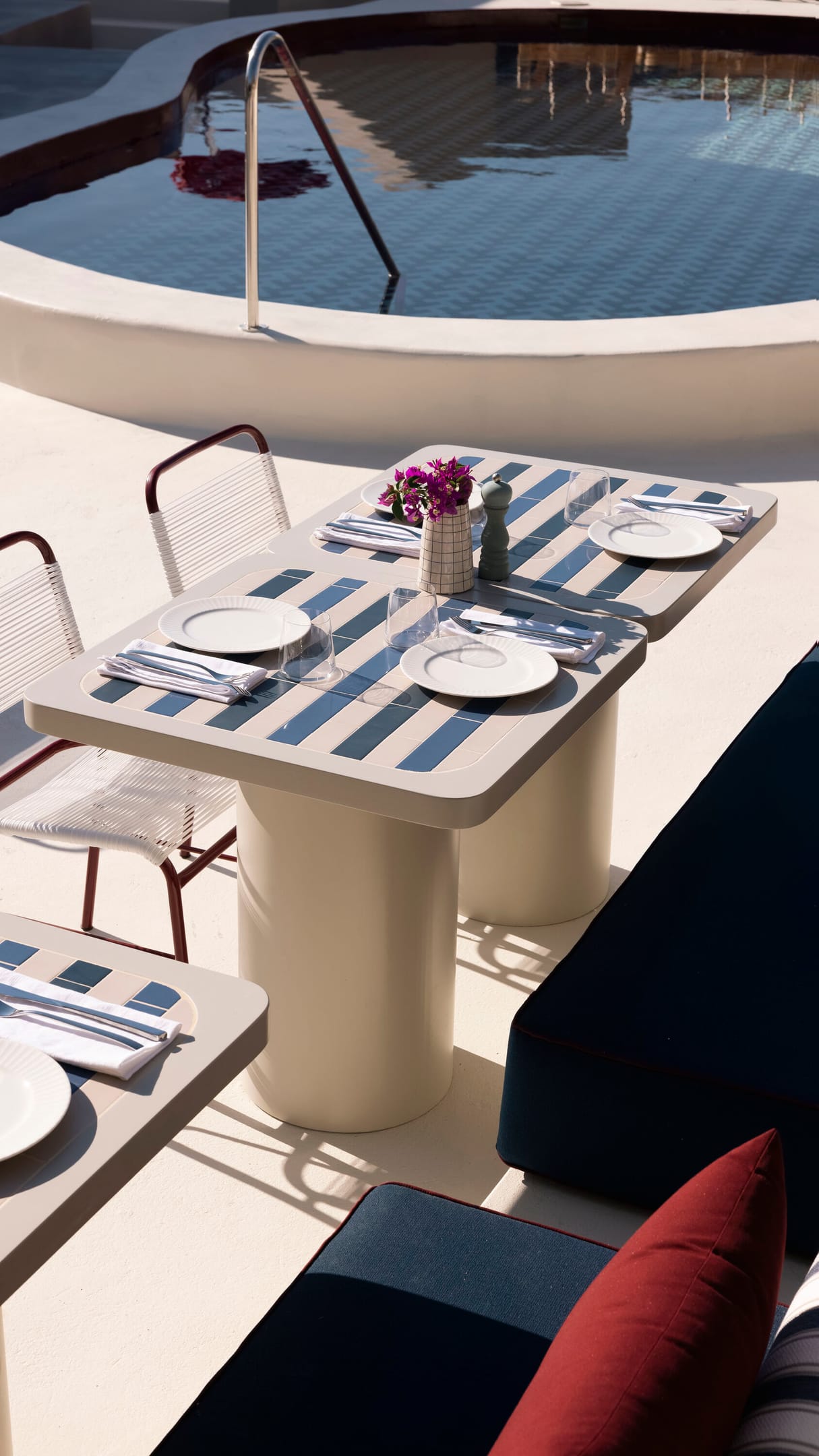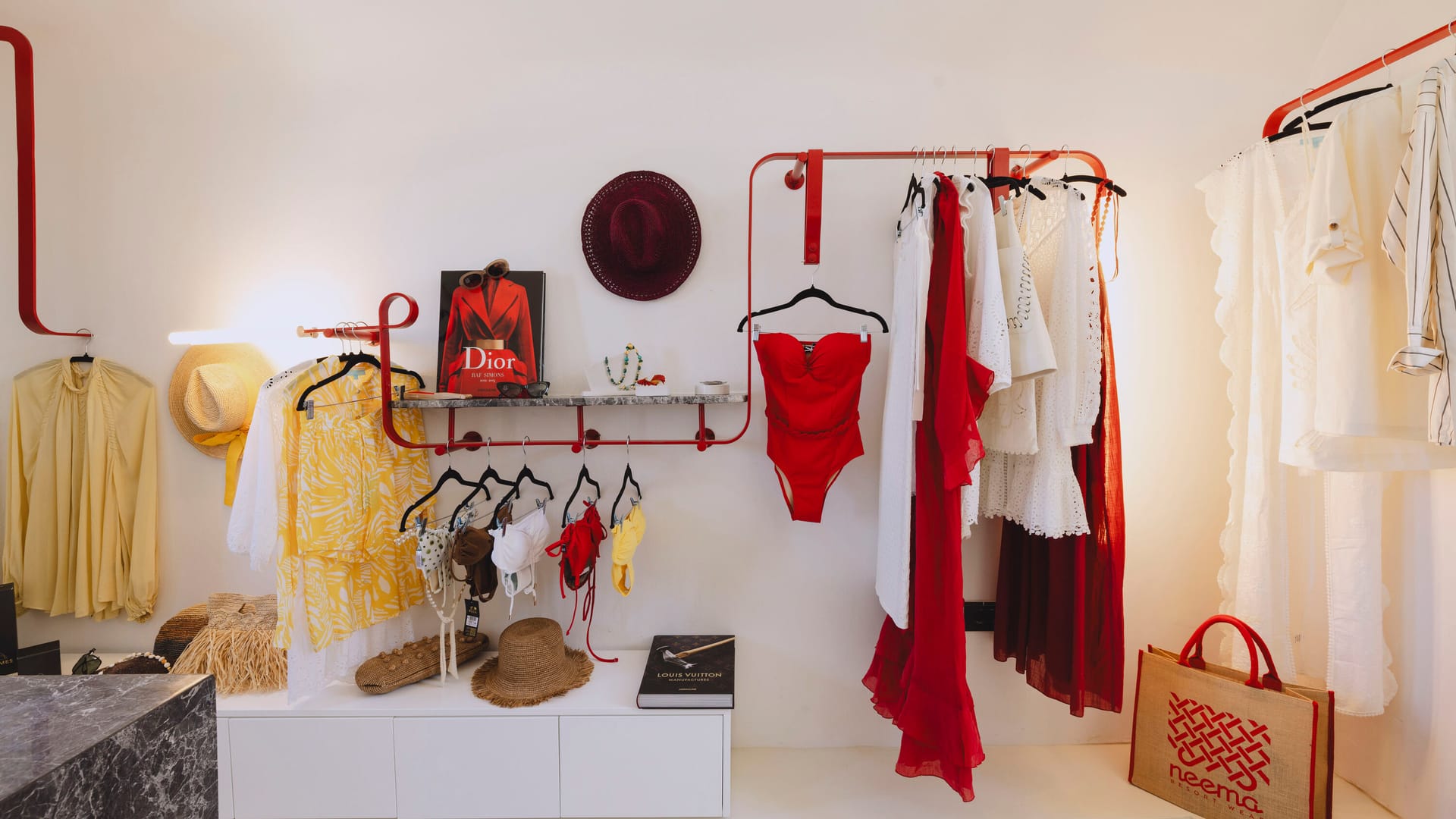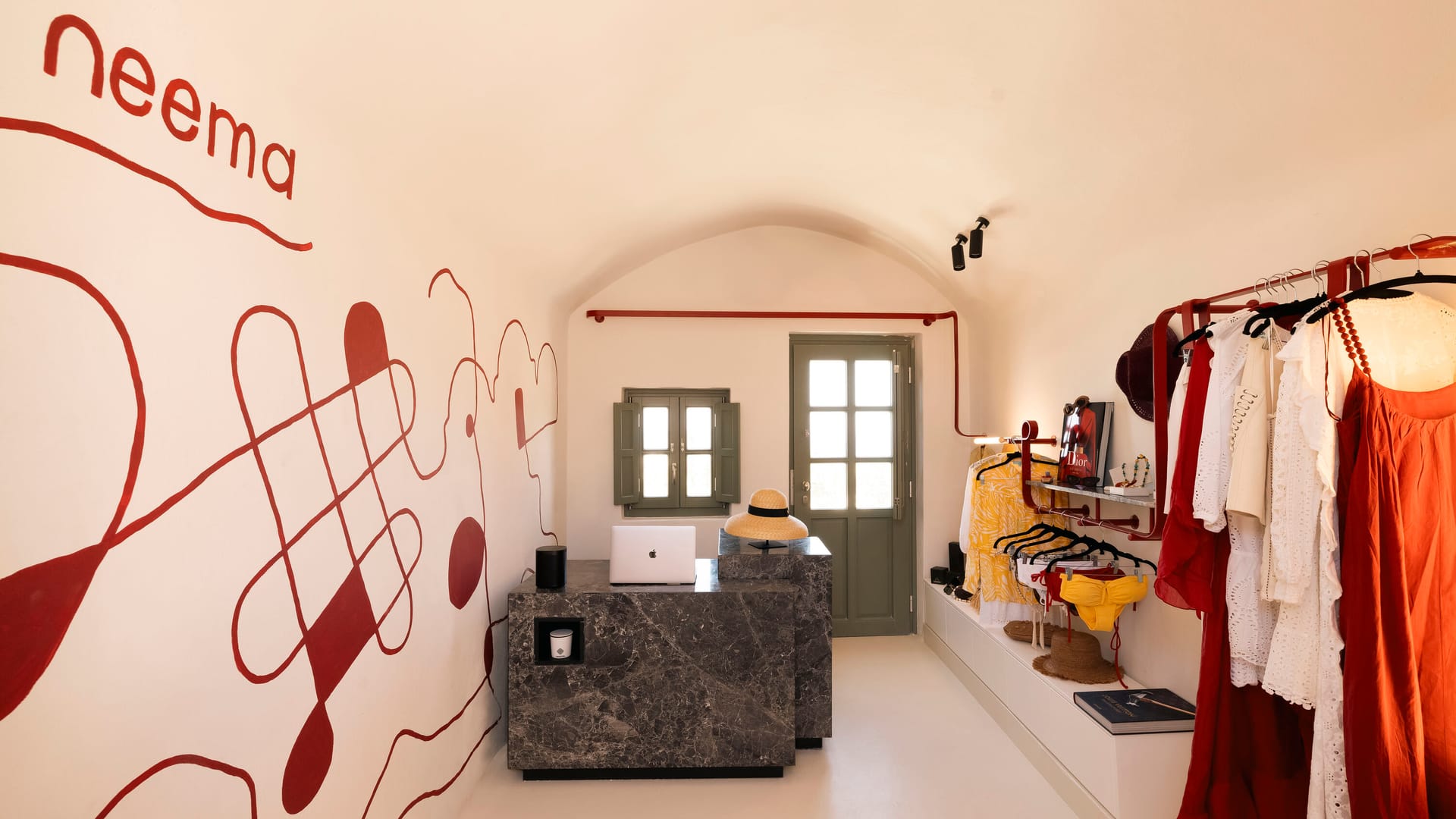 Neema Maison is an adults only (16+y.o) 16-key boutique property in Finikia, Santorini, just a 10-minute caldera walk from Oia. Part of the Domes “Finds” collection, it blends Cycladic architecture with a fashion-house concept: suites are styled as backstage dressing rooms, with curated details such as makeup chairs, mirrors, and draped textiles.