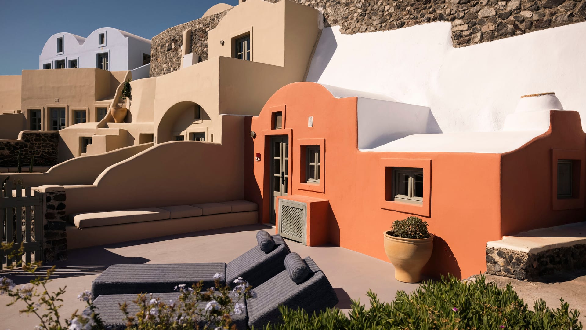 The car-free Finikia village provides direct access to walking paths, vineyards, Kanaves wine cellars, and sunset views without crowds. Targeted toward design-conscious travelers seeking low-volume, high-style accommodation with location-based experiences and story-driven stays.