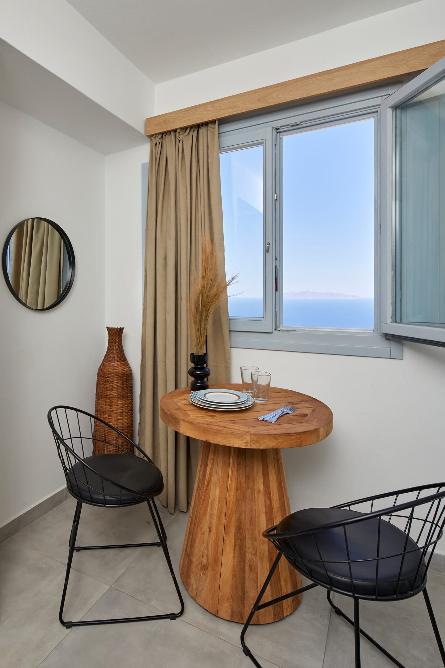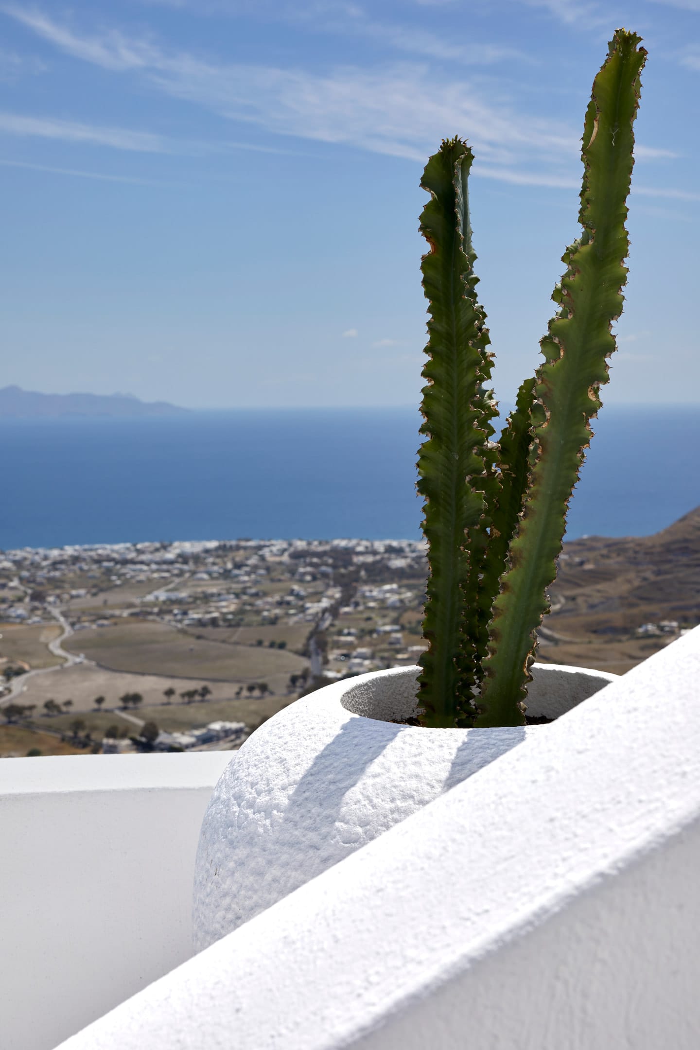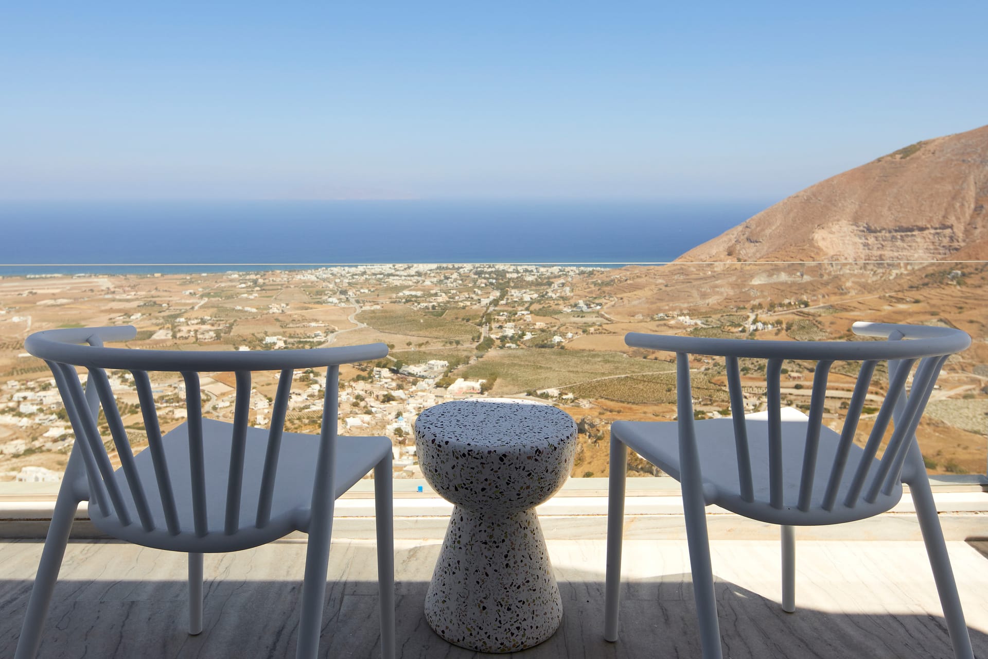 Located in the highest point of Santorini, in Pyrgos Kallistis village with Kasteli castle, our villa possesses the significant privilege of both city and sea view.