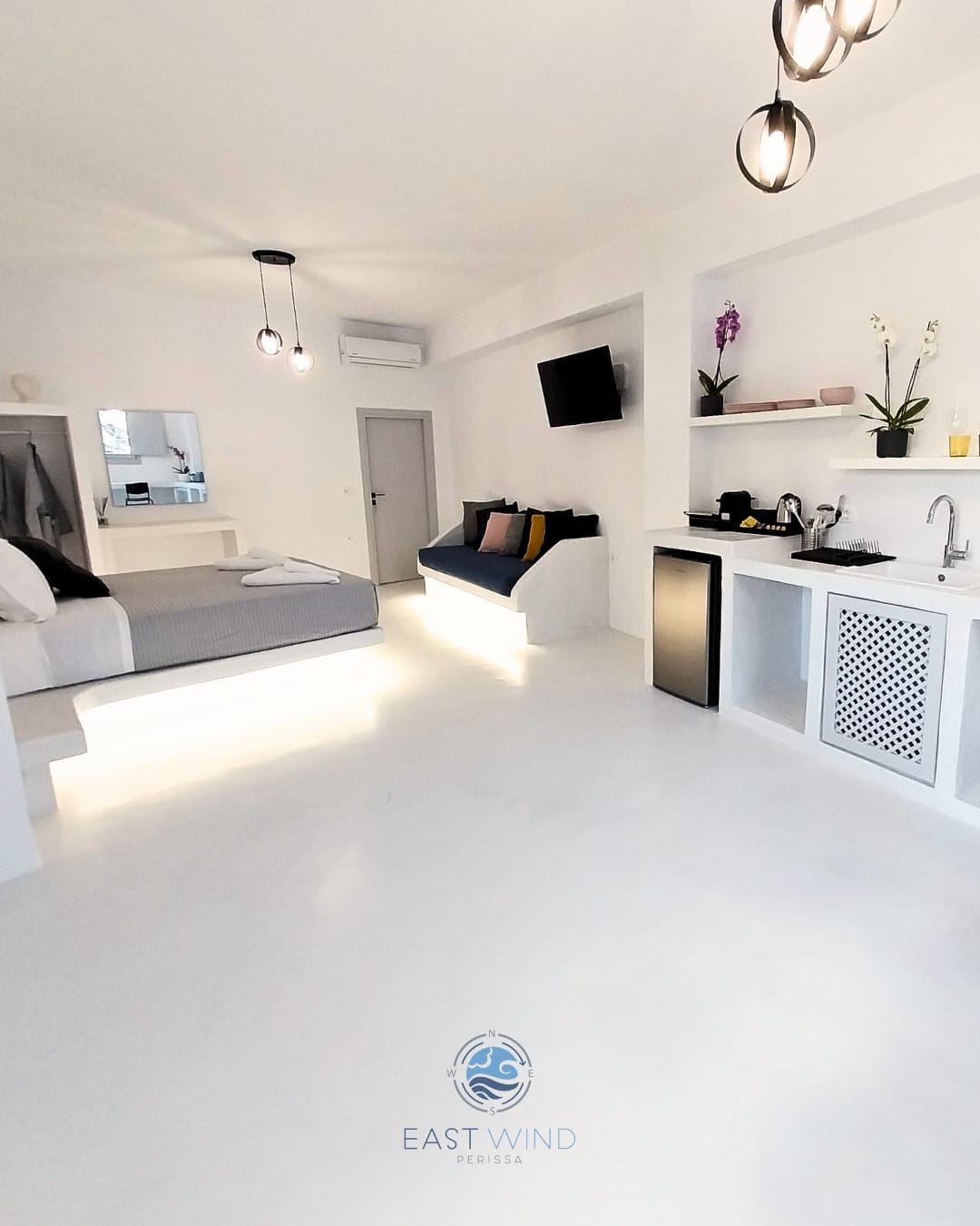 With a stay at East Wind Perissa in Santorini, you'll be steps from Perissa Beach and a 5-minute drive from Perivolos Beach. This hotel is 5.3 mi (8.5 km) from Santorini Caldera and 6.6 mi (10.6 km) from Athinios Port.