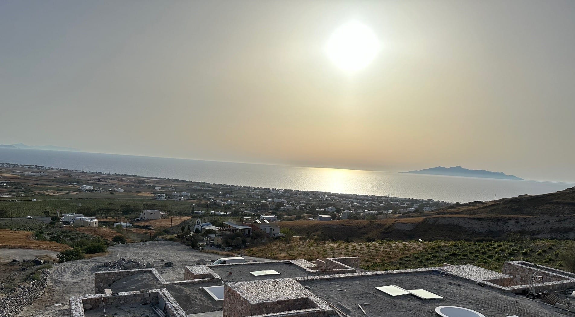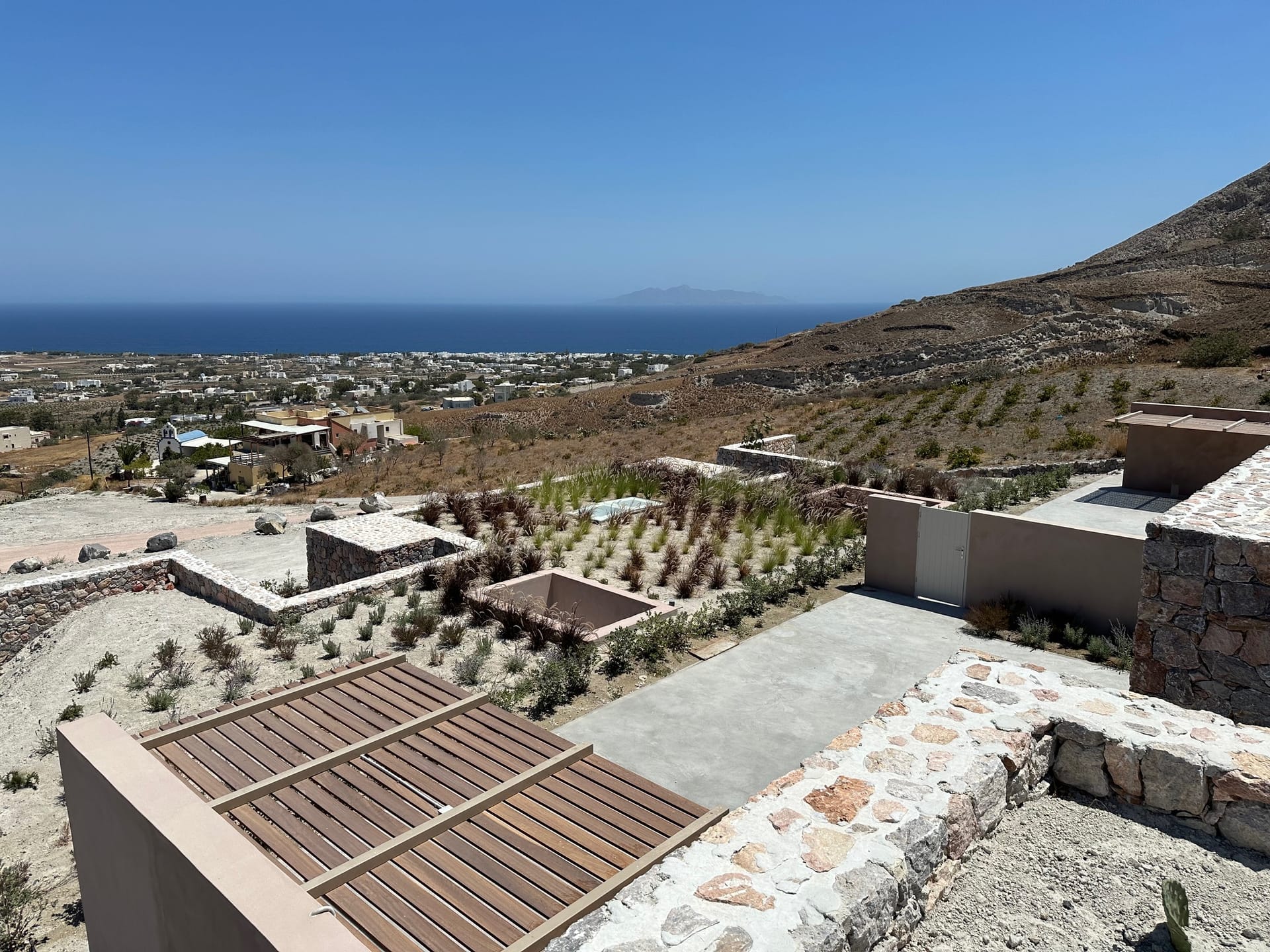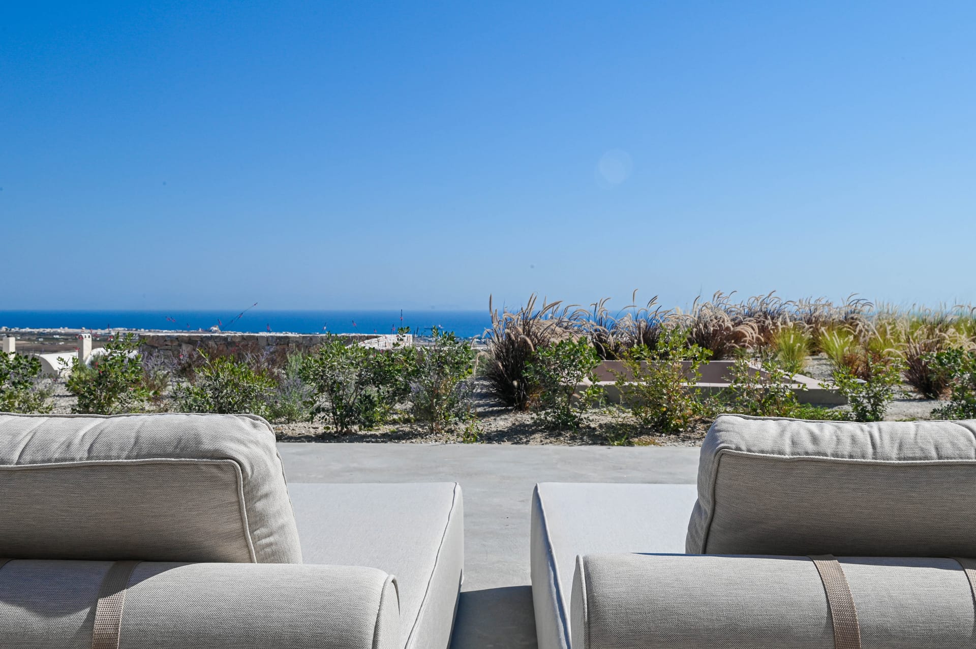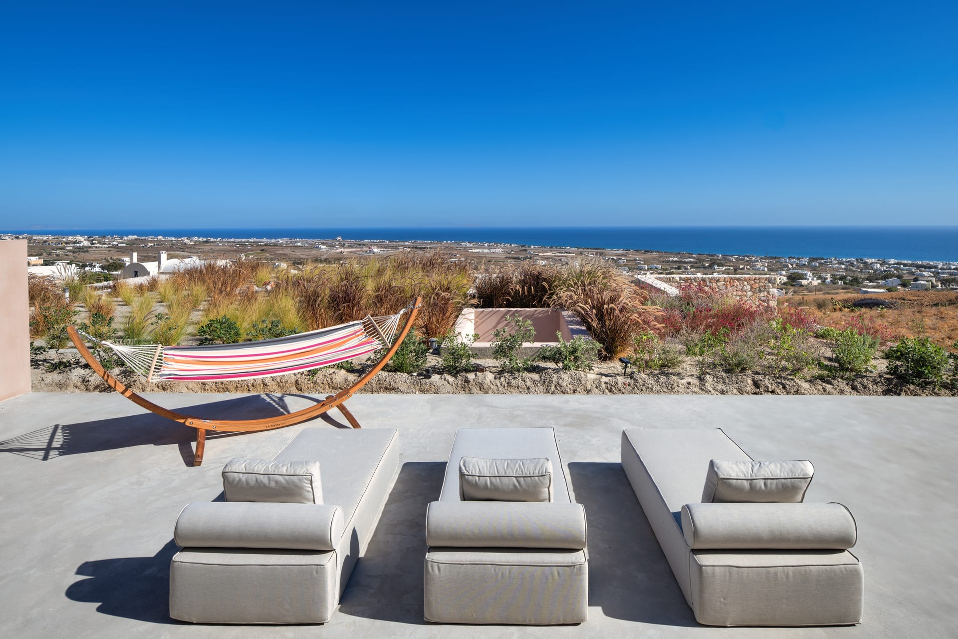 Spacious 100 sq. m. terraces with panoramic views of the sea, mountains, distant islands, and charming villages on hilltops or scattered across the plain.