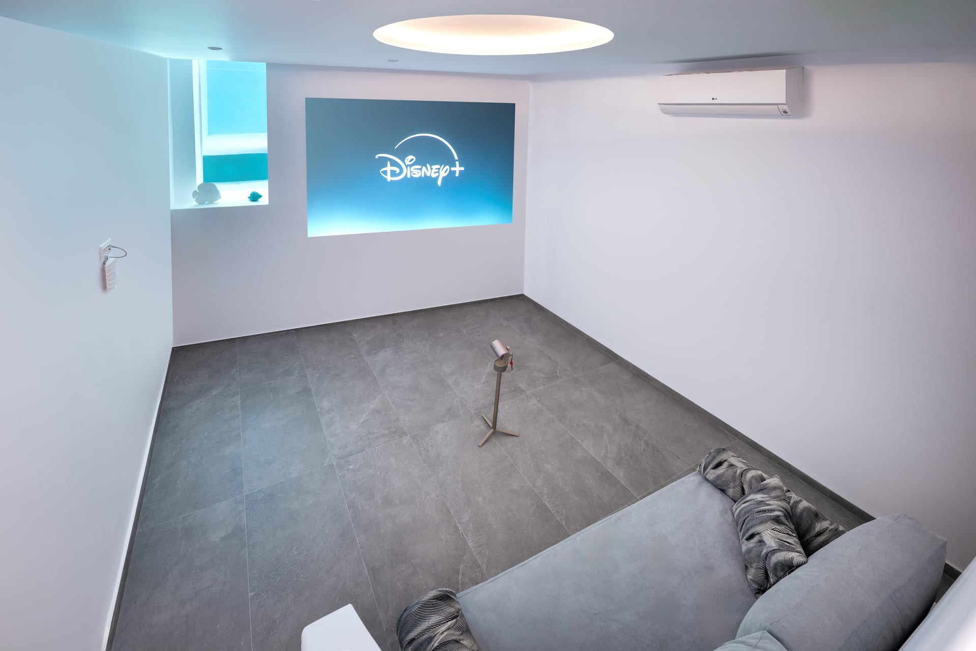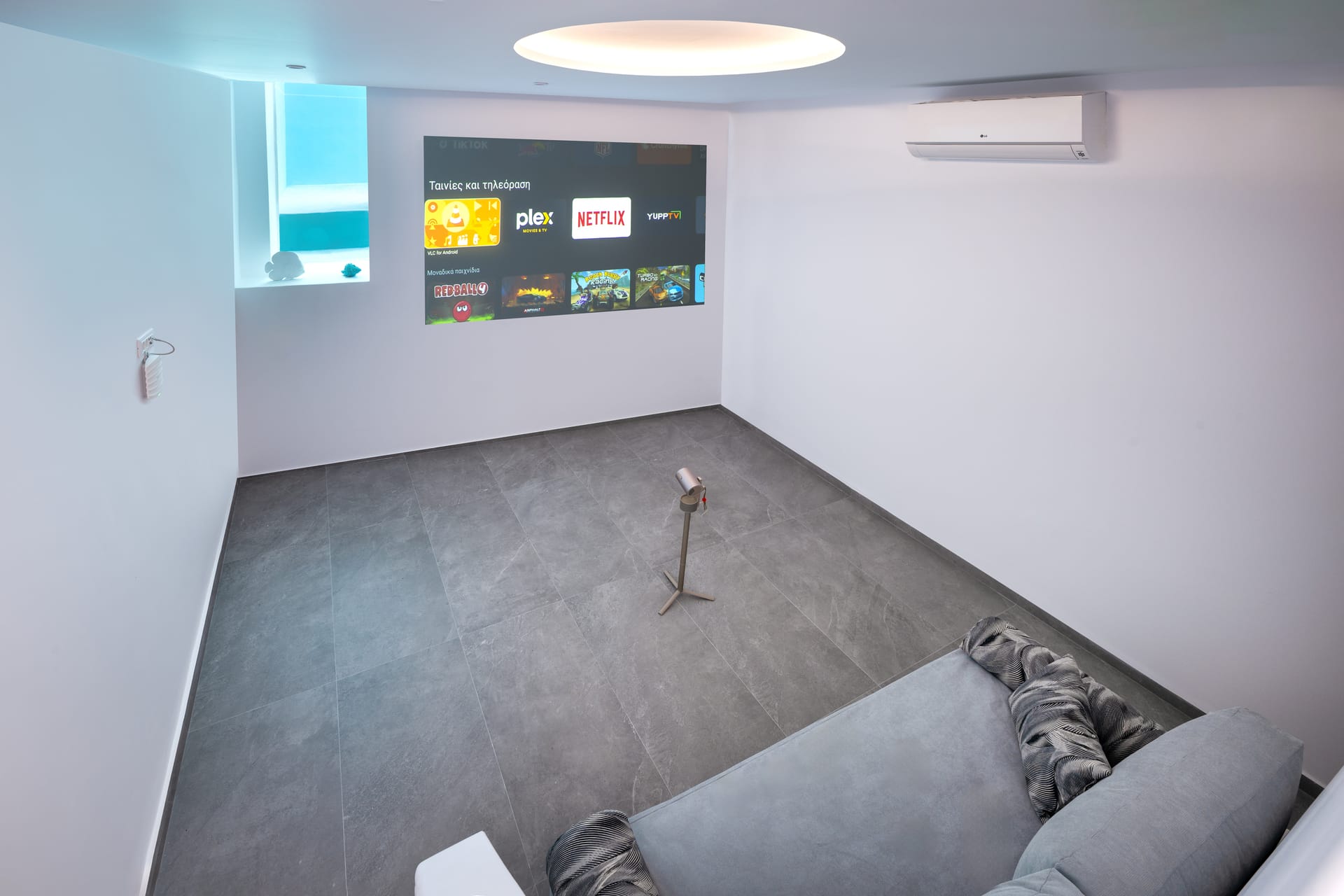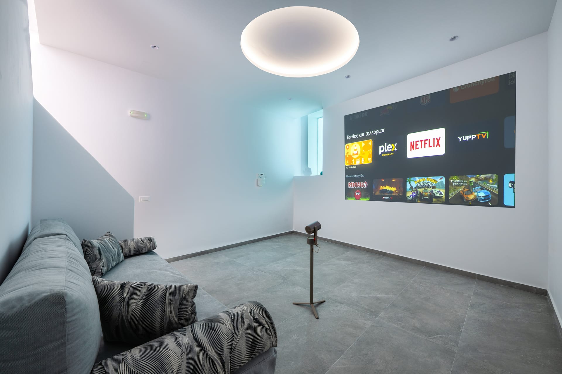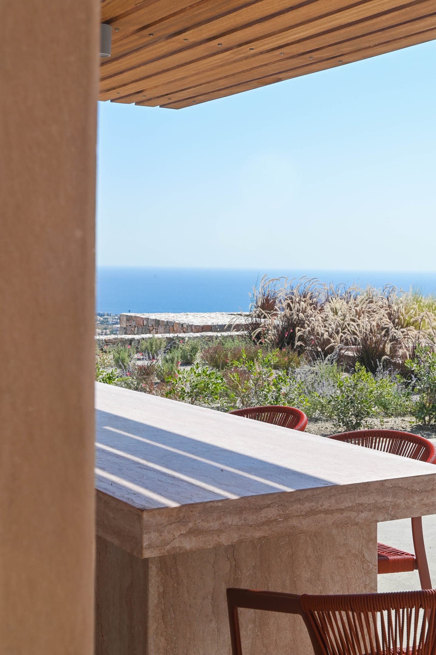 Spacious 100 sq. m. terraces with panoramic views of the sea, mountains, distant islands, and charming villages on hilltops or scattered across the plain.