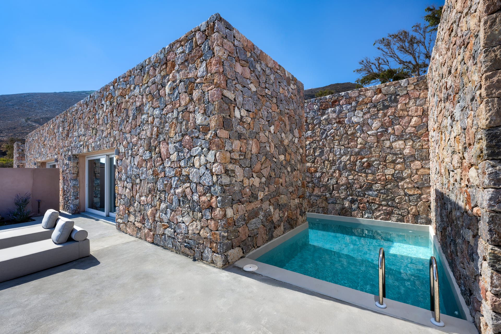 Crafted from locally sourced stone, they blend seamlessly with the natural surroundings. Inside, elegant interiors feature high-quality furnishings and calming décor.