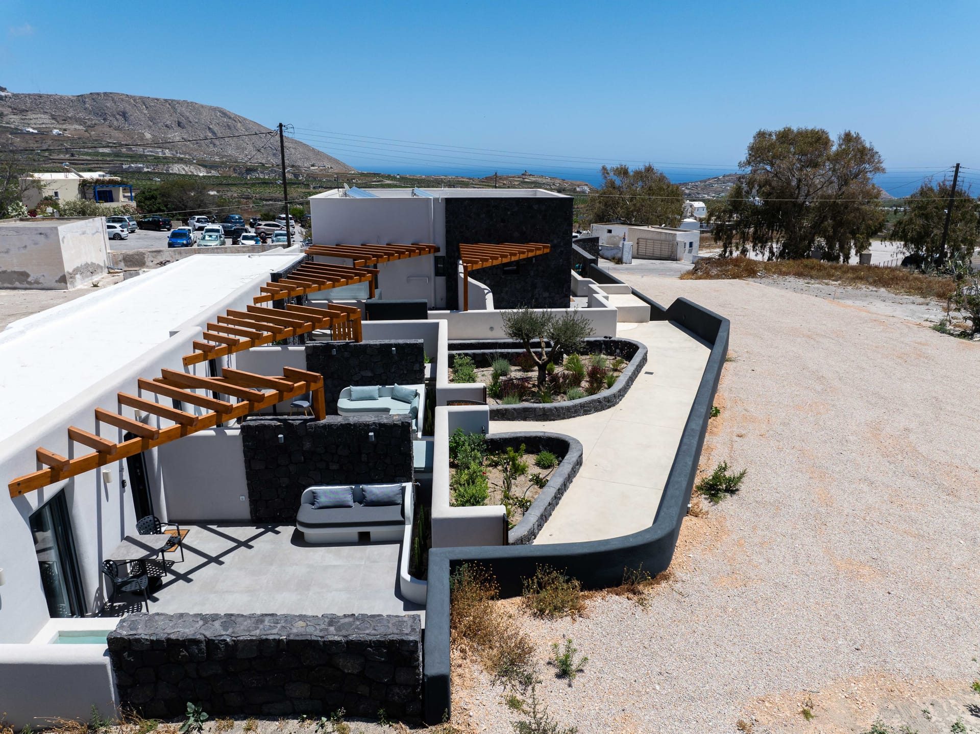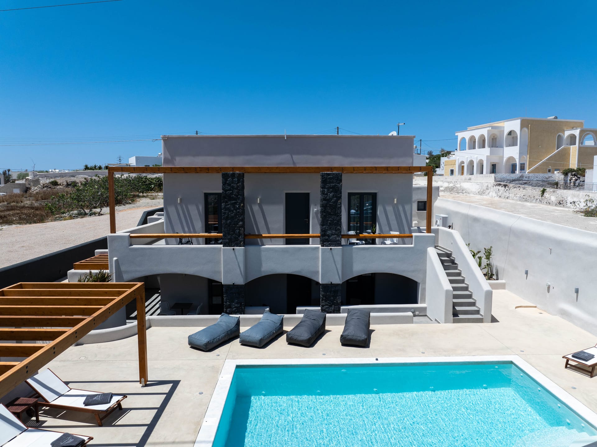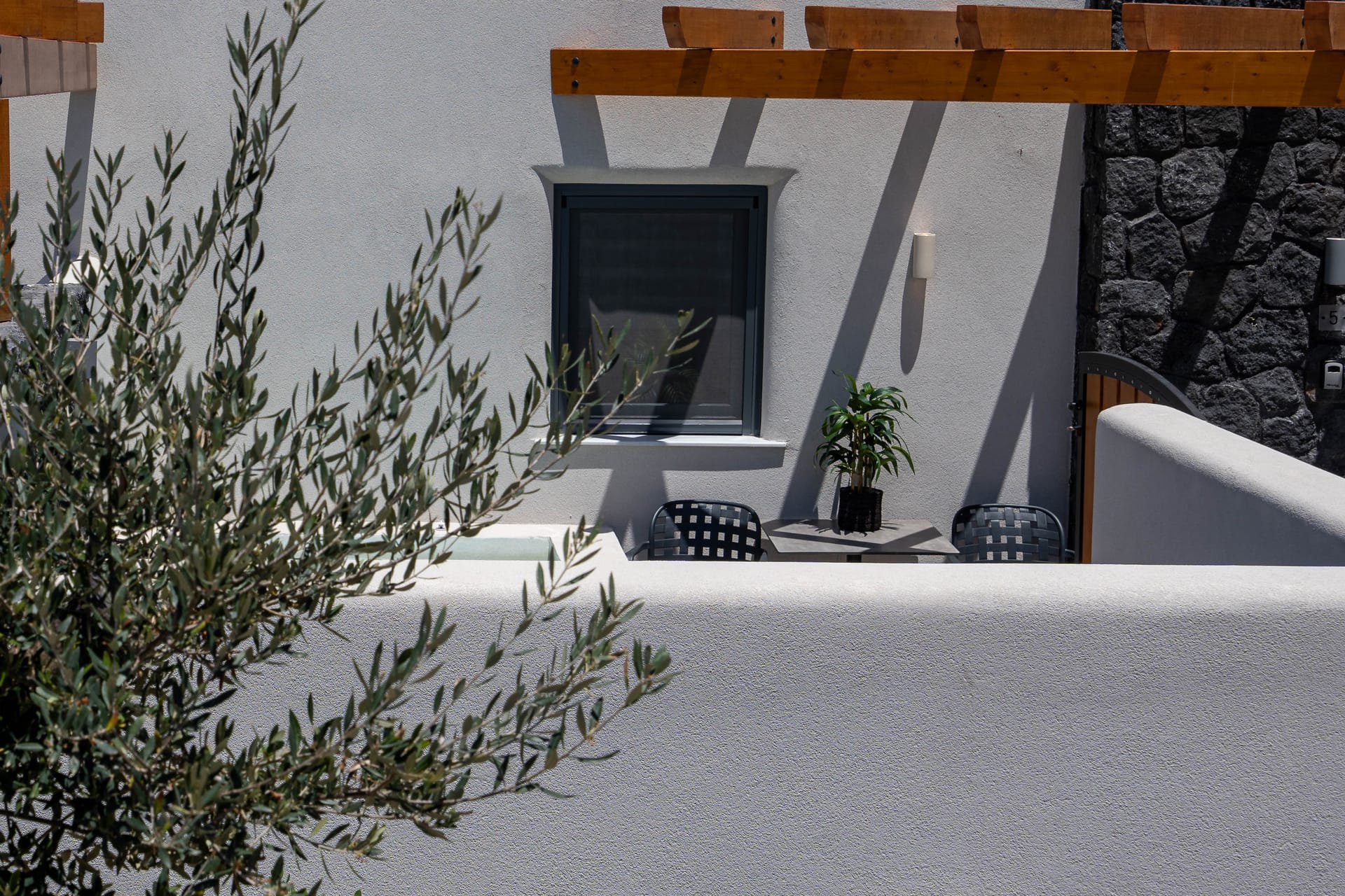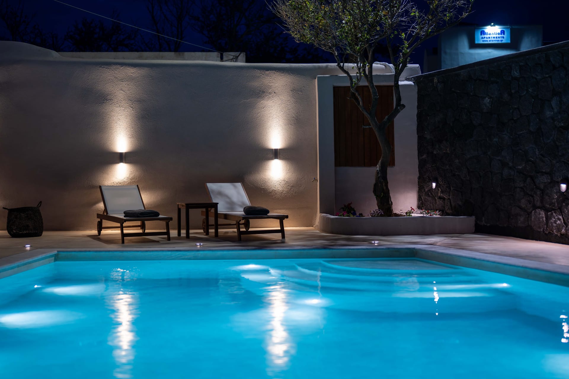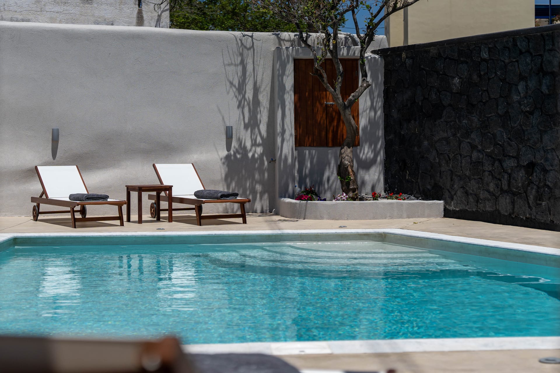 Each suite features a bedroom, dining area, kitchenette, living room, and a balcony with a private jacuzzi. The property also offers a shared pool.