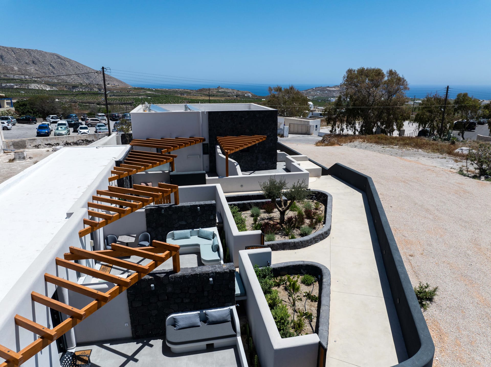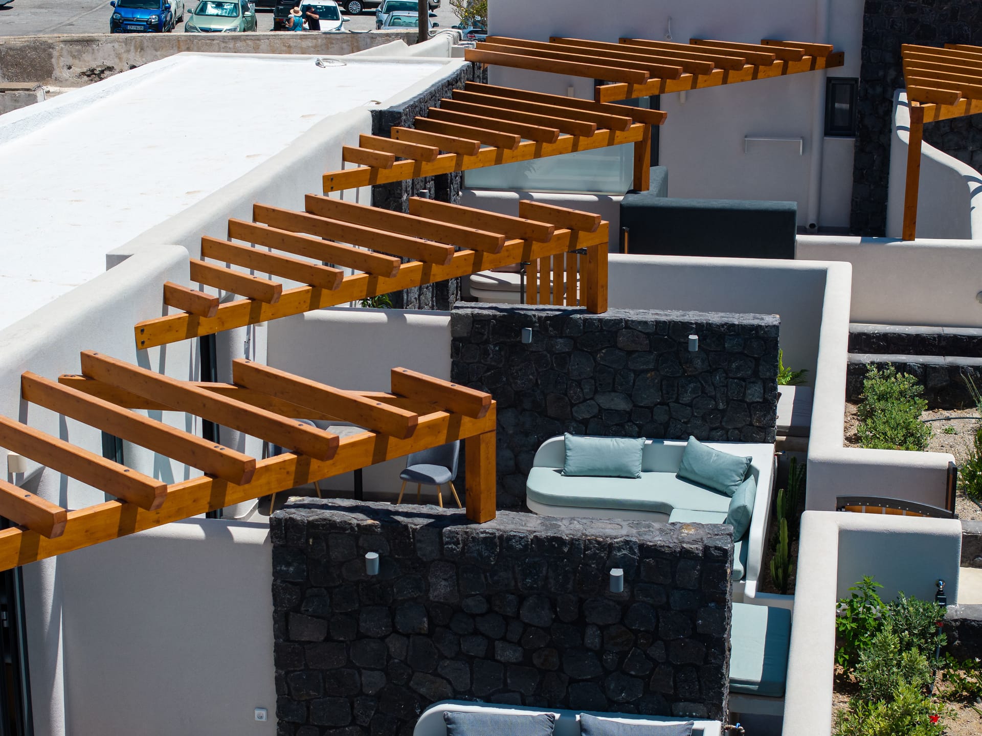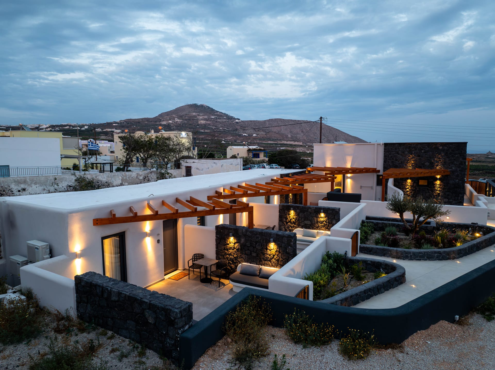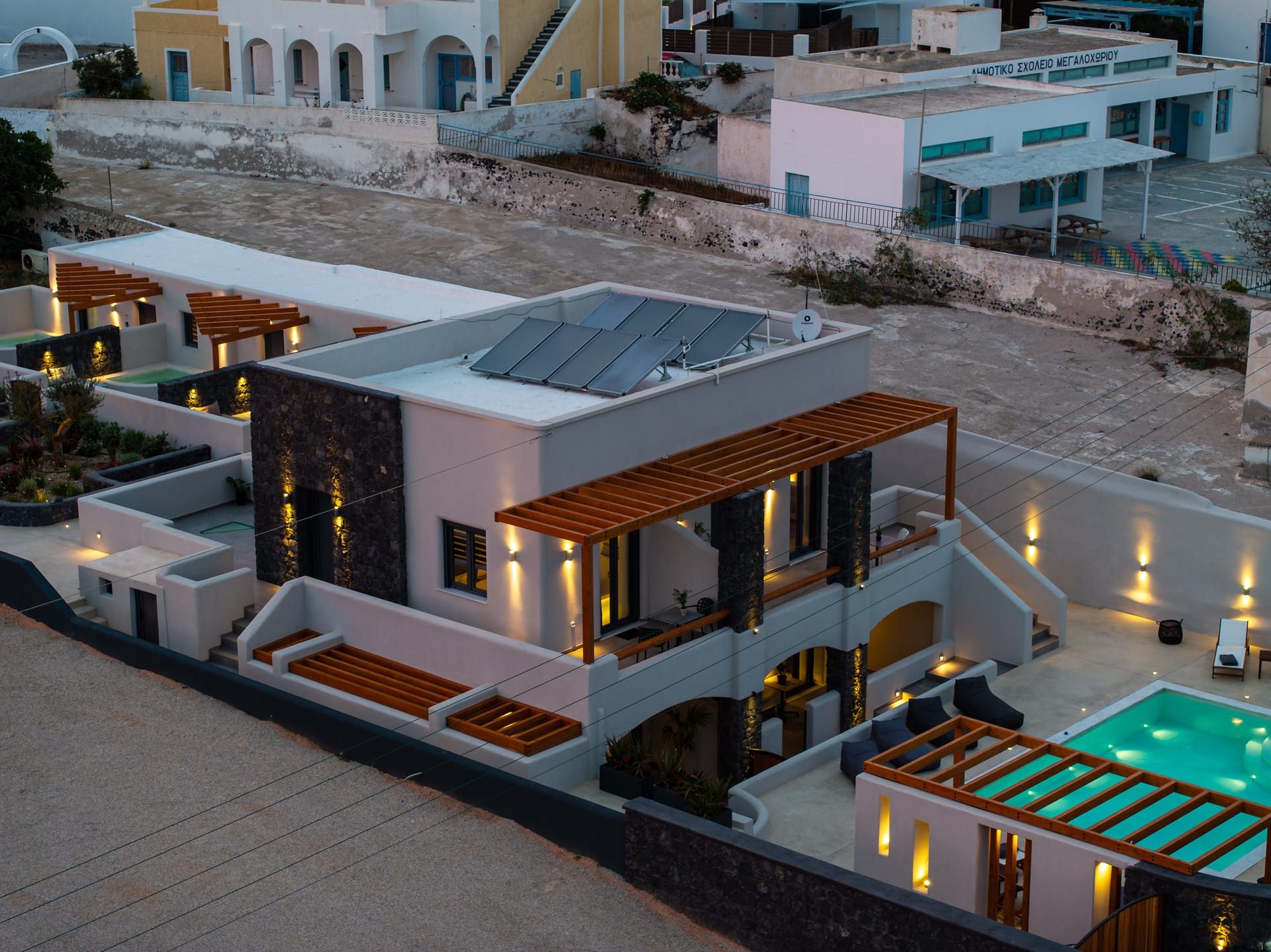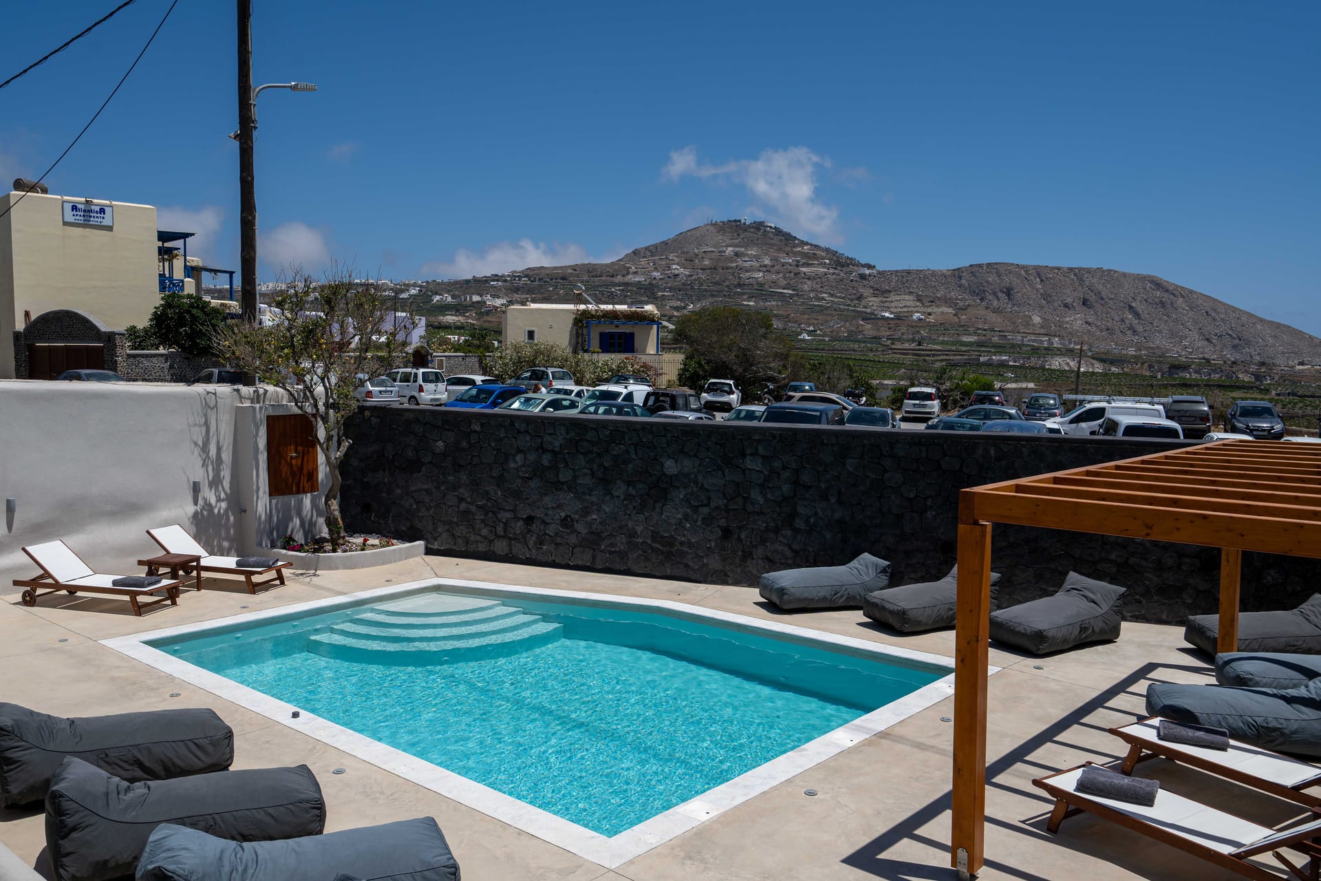 Each suite features a bedroom, dining area, kitchenette, living room, and a balcony with a private jacuzzi. The property also offers a shared pool.