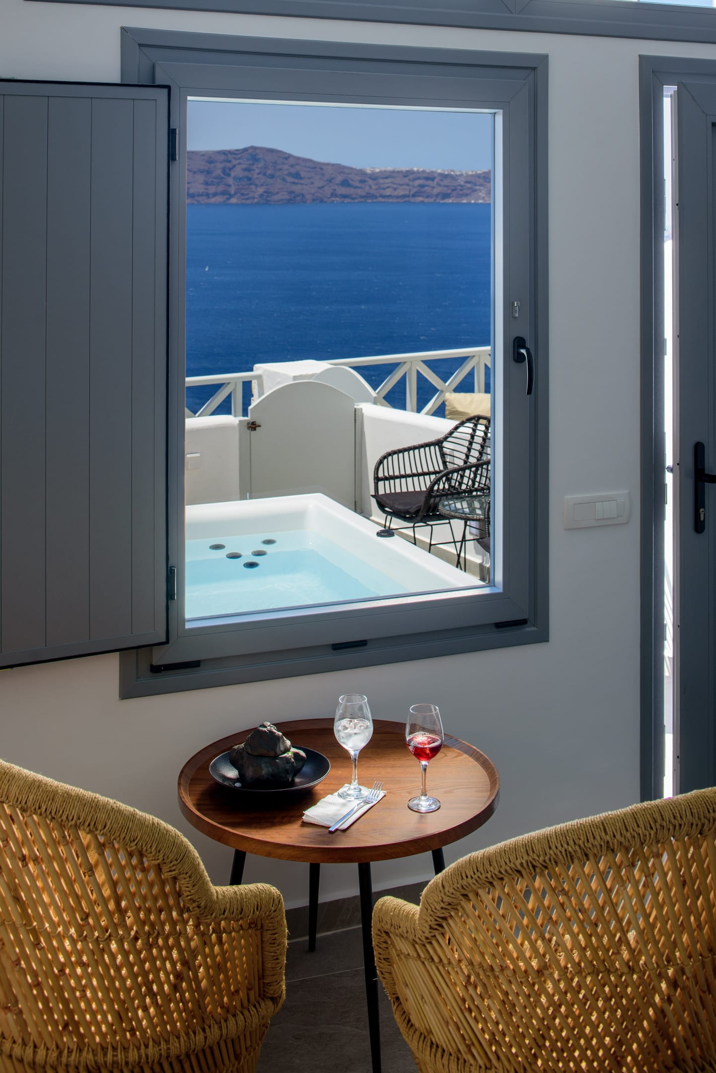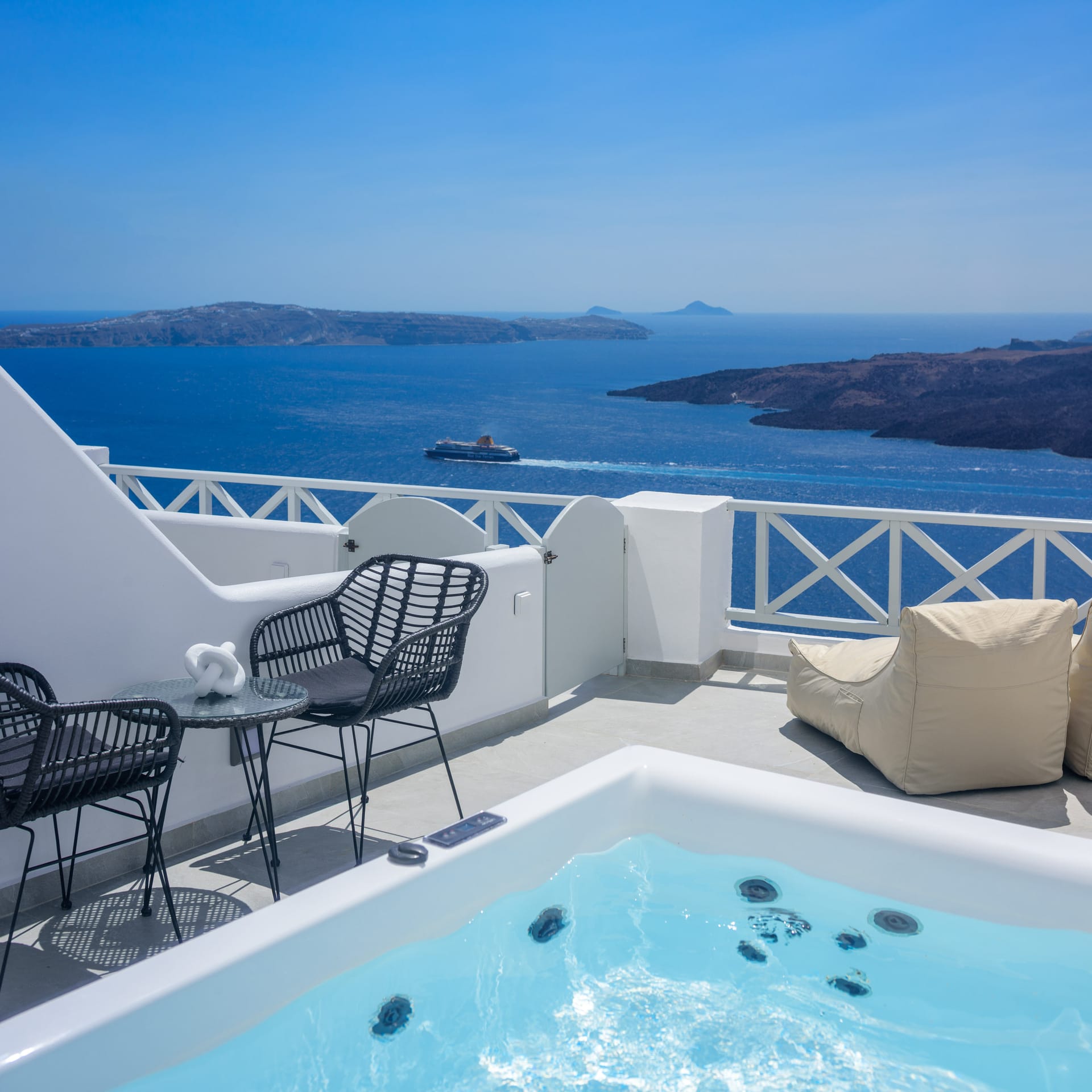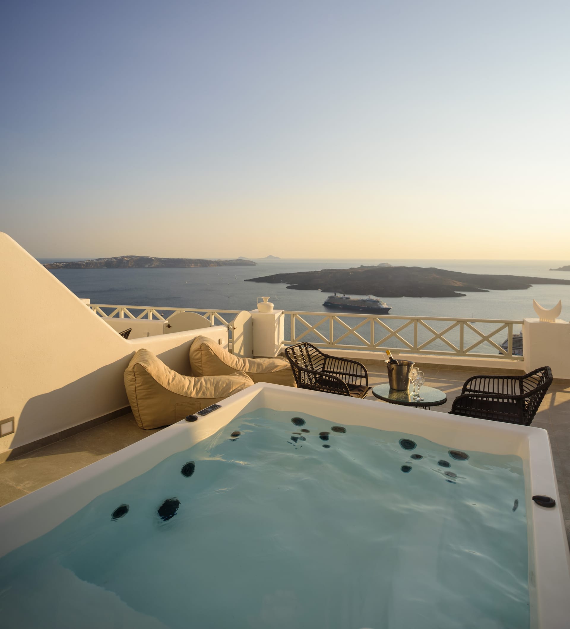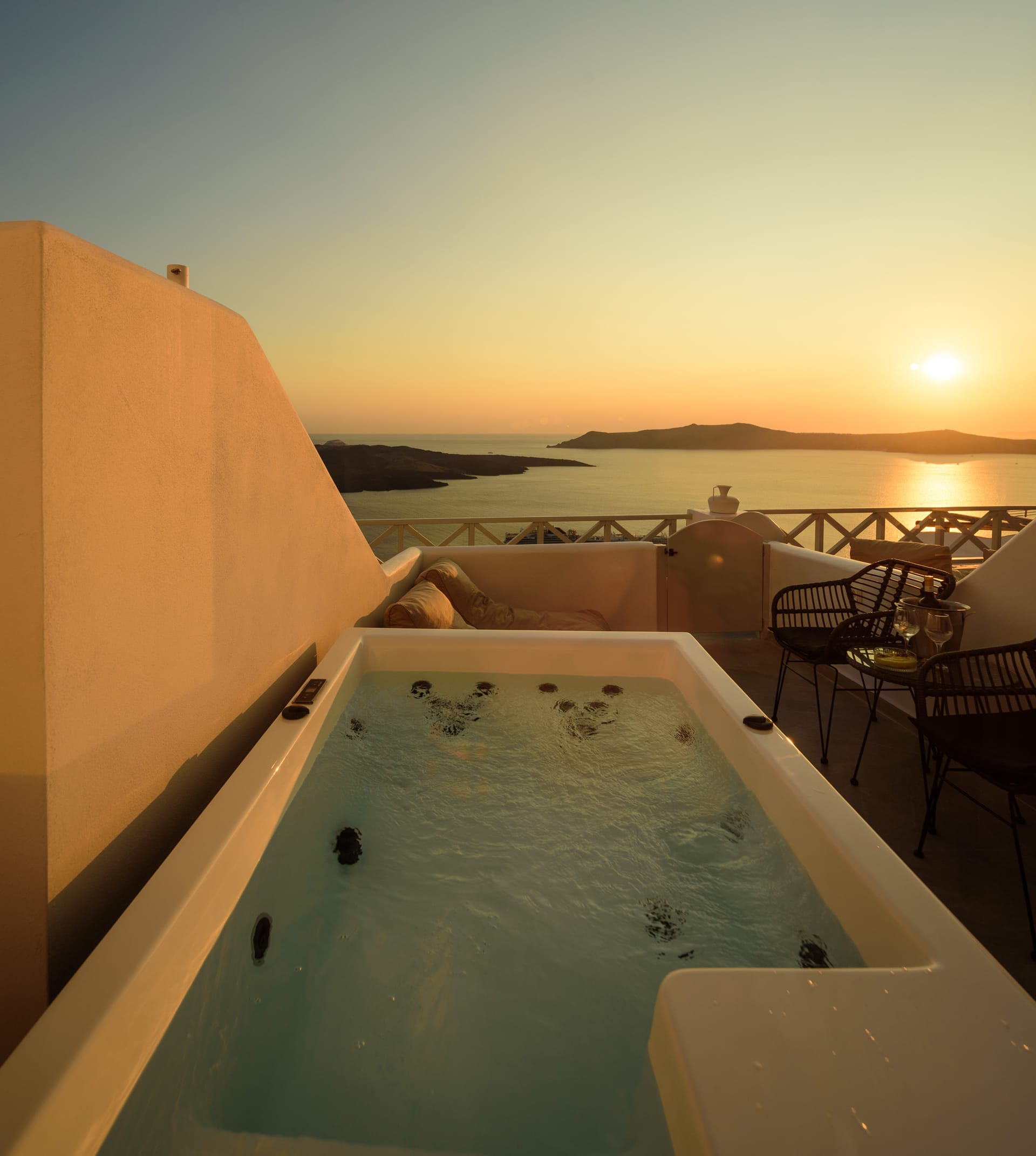 Elia Caldera Suites, located in Fira gld street with an amazing view to caldera. 3 rooms with an outdoor hot tub, sun terrace and view to caldera and the volcano.