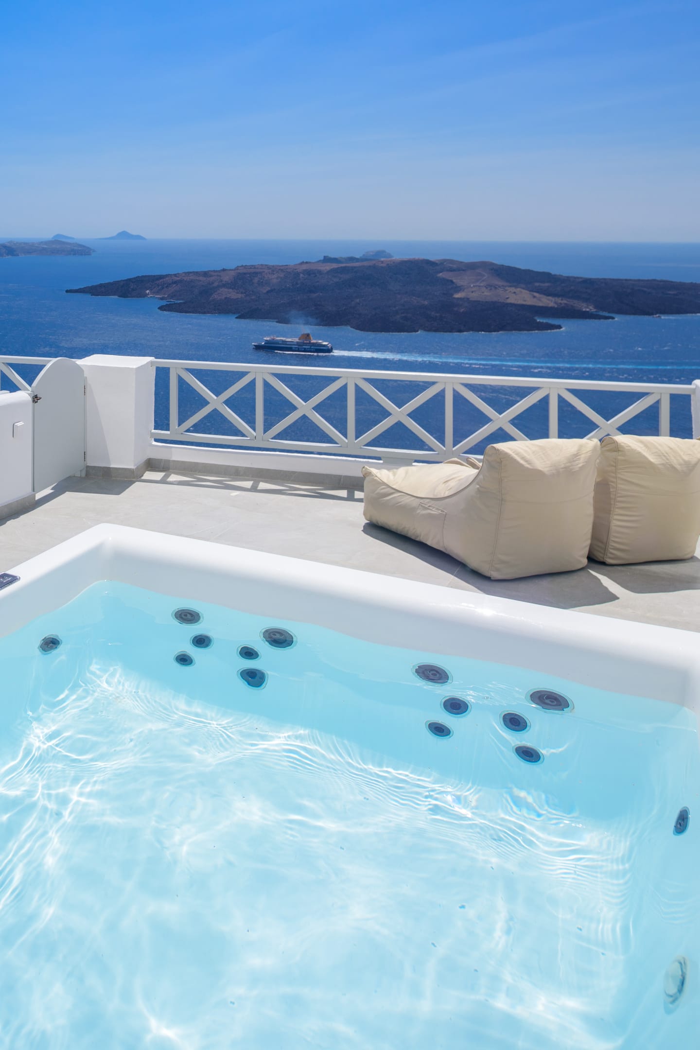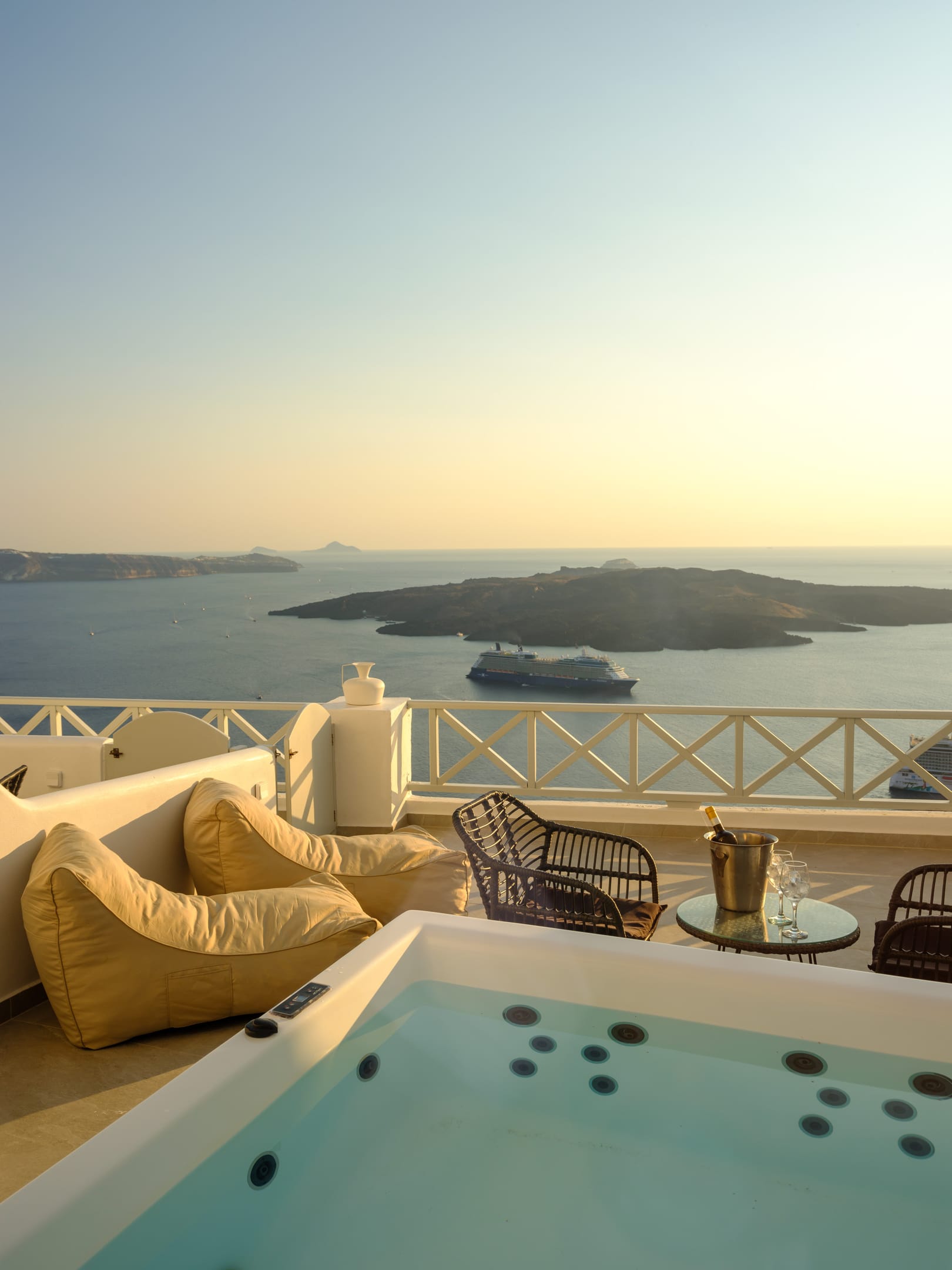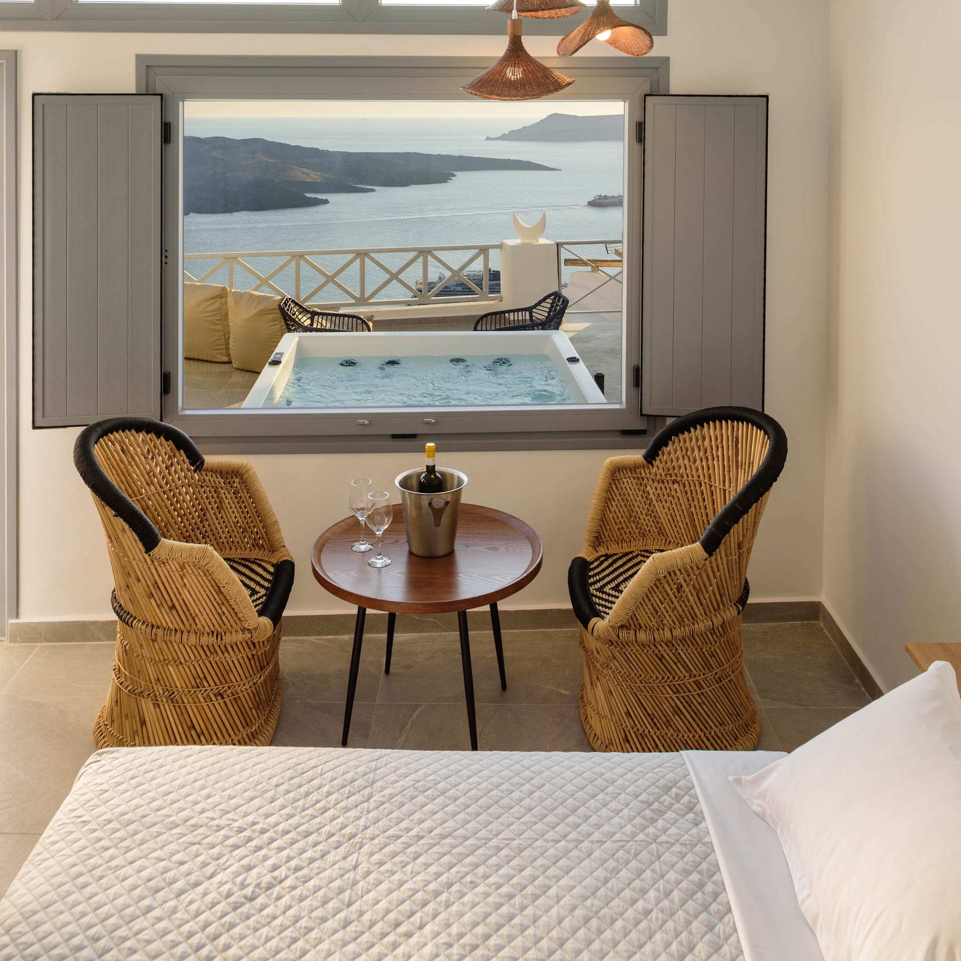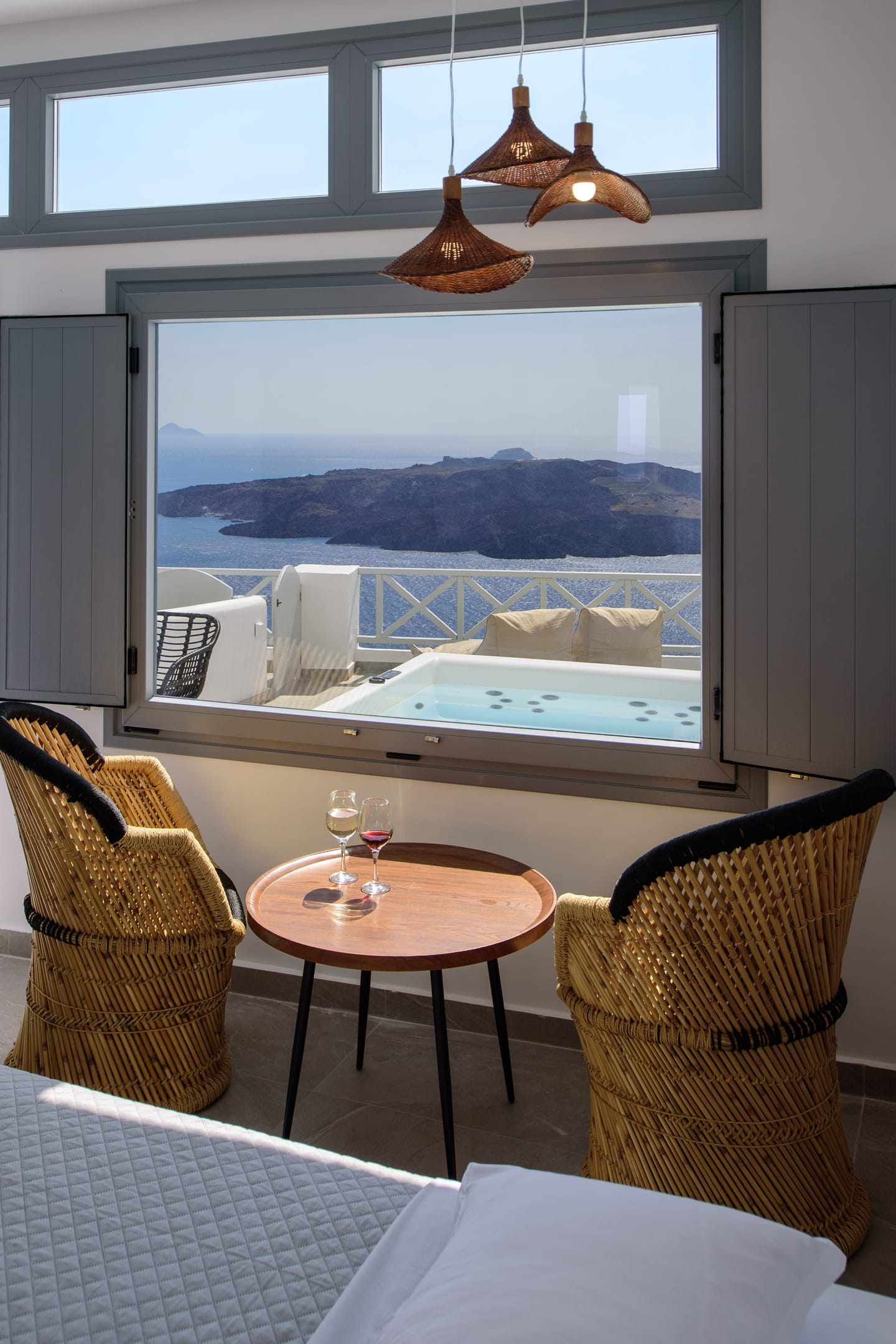 Elia Caldera Suites, located in Fira gld street with an amazing view to caldera. 3 rooms with an outdoor hot tub, sun terrace and view to caldera and the volcano.