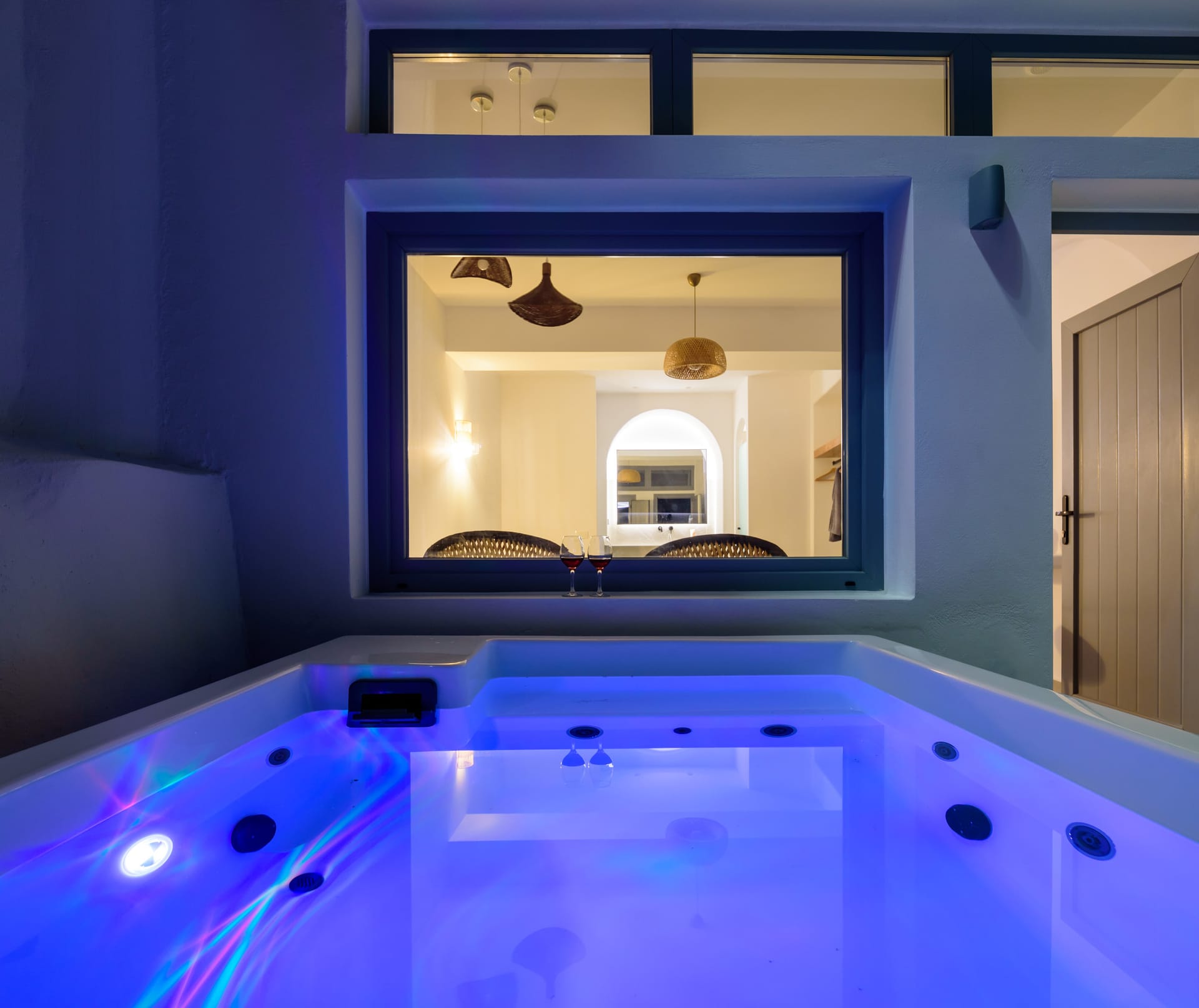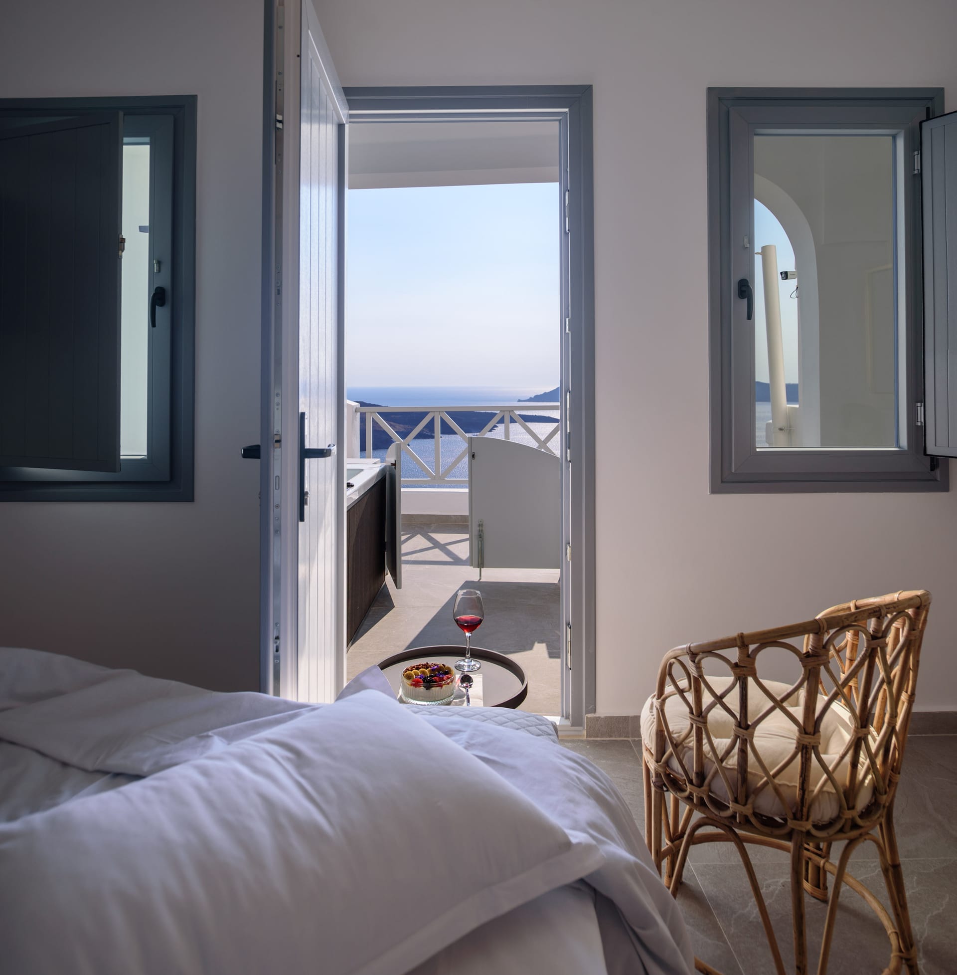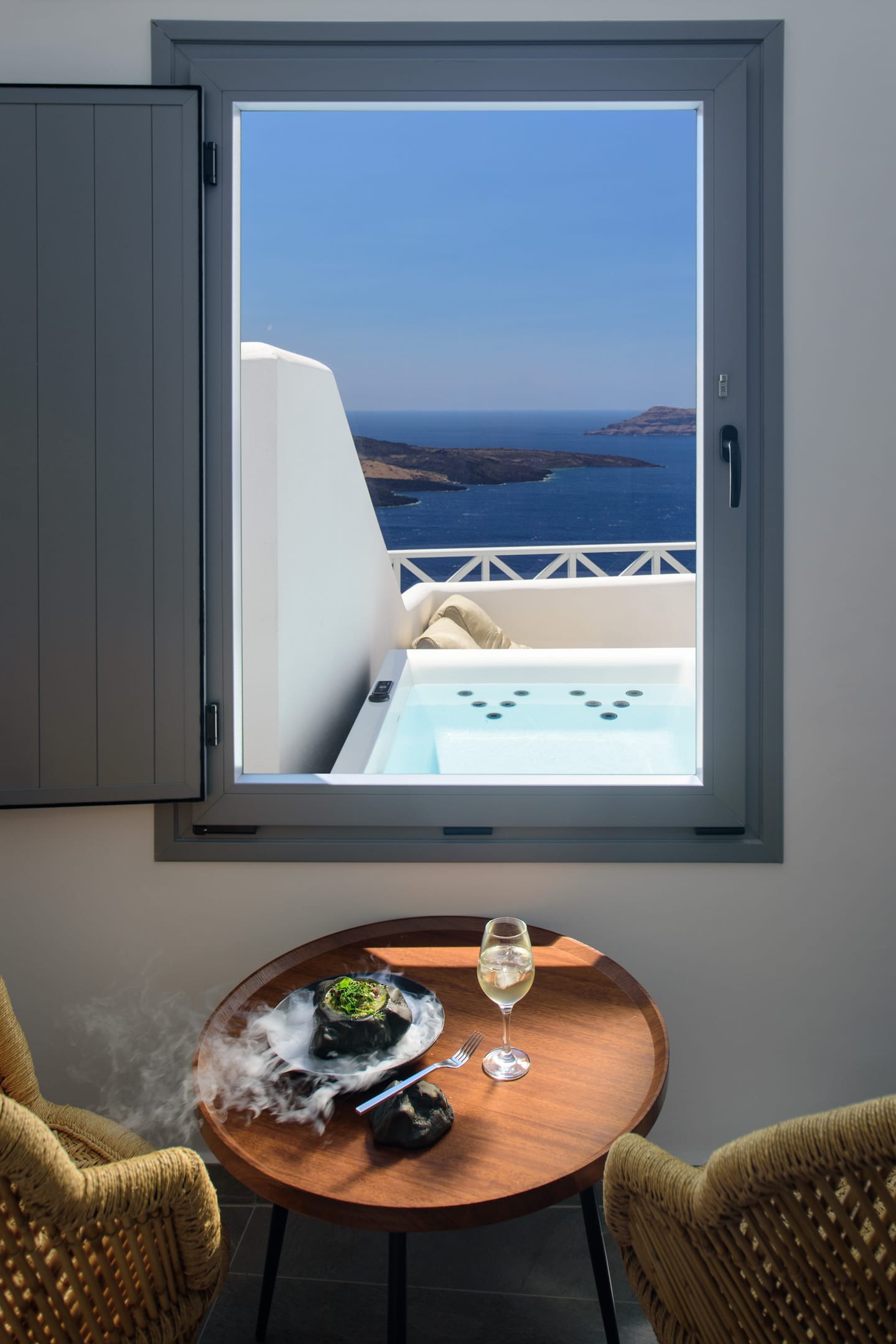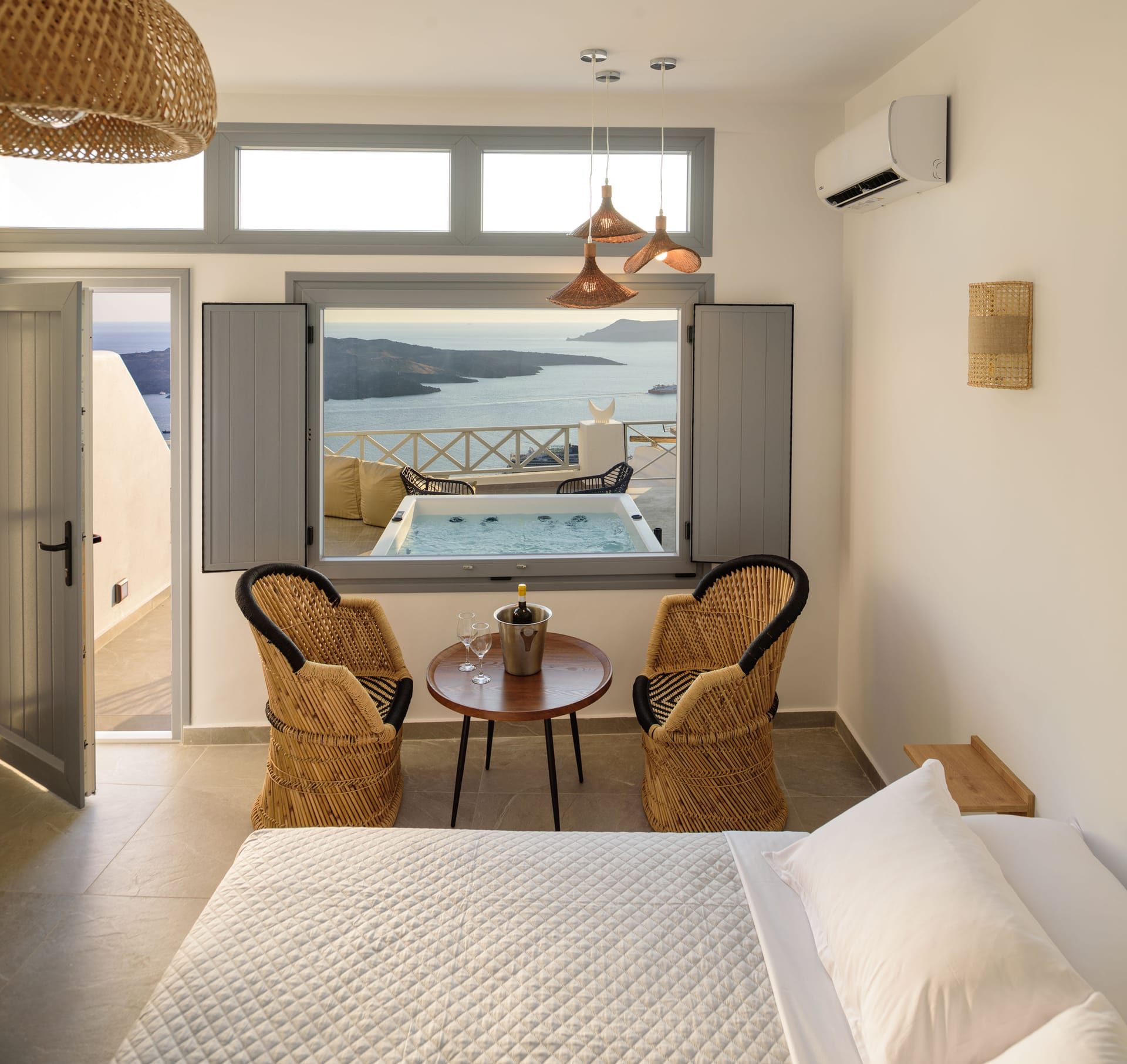 Elia Caldera Suites, located in Fira gld street with an amazing view to caldera. 3 rooms with an outdoor hot tub, sun terrace and view to caldera and the volcano.