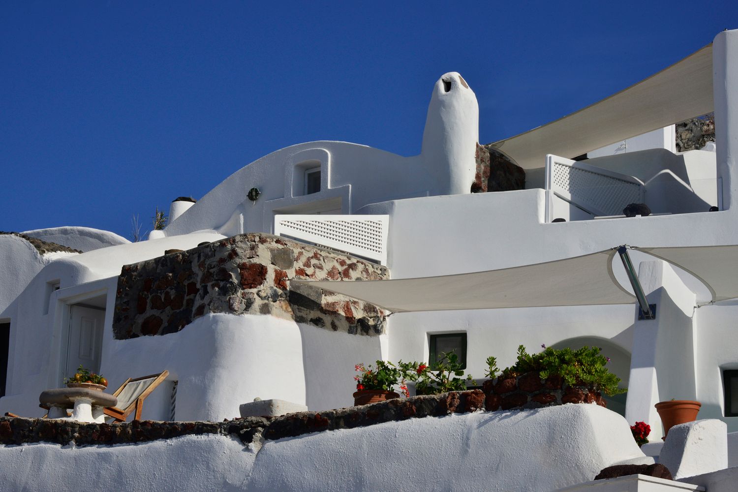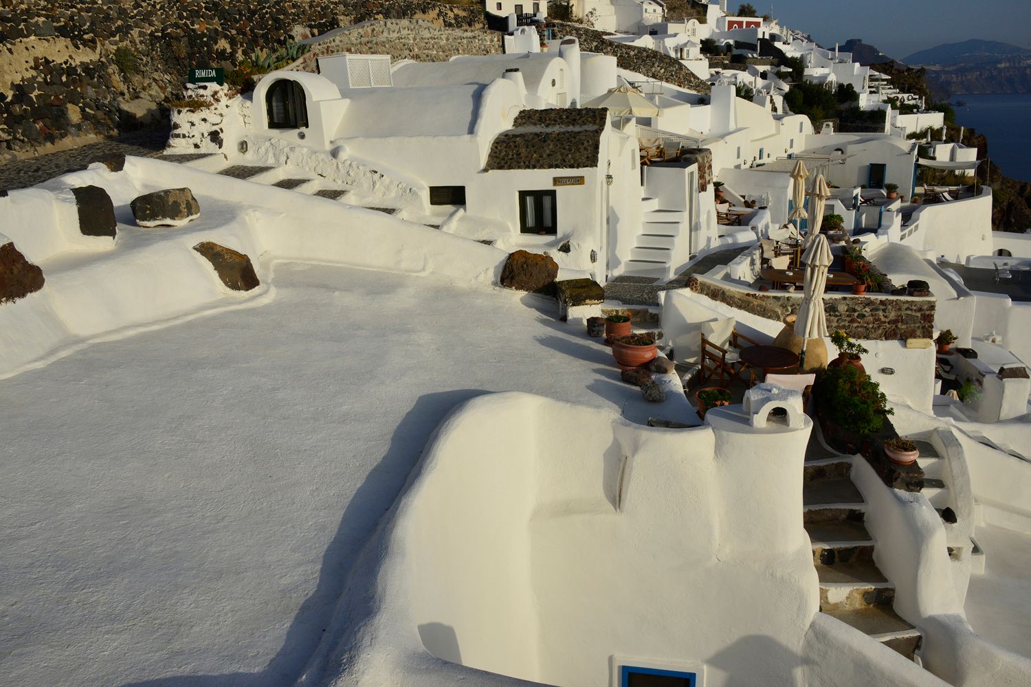 Rimida is located at the entrance of Oia village in the area of Perivolas, on the pedestrian street of Oia �Fira, and close to the central bus lane, that leads to the rest areas of the island. The area is protected by a special law from disturbing usage and it is only allowed for guests staying. Here visitors can enjoy absolute tranquility.The airport of Santorini is at a distance of 18 km, while the central port is 30 minutes away. Rimida is a complex of 9 old independent cave houses, that were built more than 200 years ago. In the last century, certain areas were wine cellars (CANAVES) which were fully renovated to the strict criteria of local materials and colors, with total respect to the architecture and aesthetics of the landscape, continuing to blend perfectly with the surrounding environment, in order to welcome and accommodate wonderful guests.The whole complex is oriented to the unique, endless and spectacular majestic Caldera, with uninterrupted views to the volcano and the infinite blue of the Aegean sea. All villas feature private verandas, big and comfortable spaces inside out, combining the traditional cycladic decoration with modern touches, meeting the needs and requirements of all visitors. Alongside with the white color which is accompanied with the generosity of the Greek nature, we will make sure that you will enjoy and experience unique moments, as your dream will become true and it will make your life full.