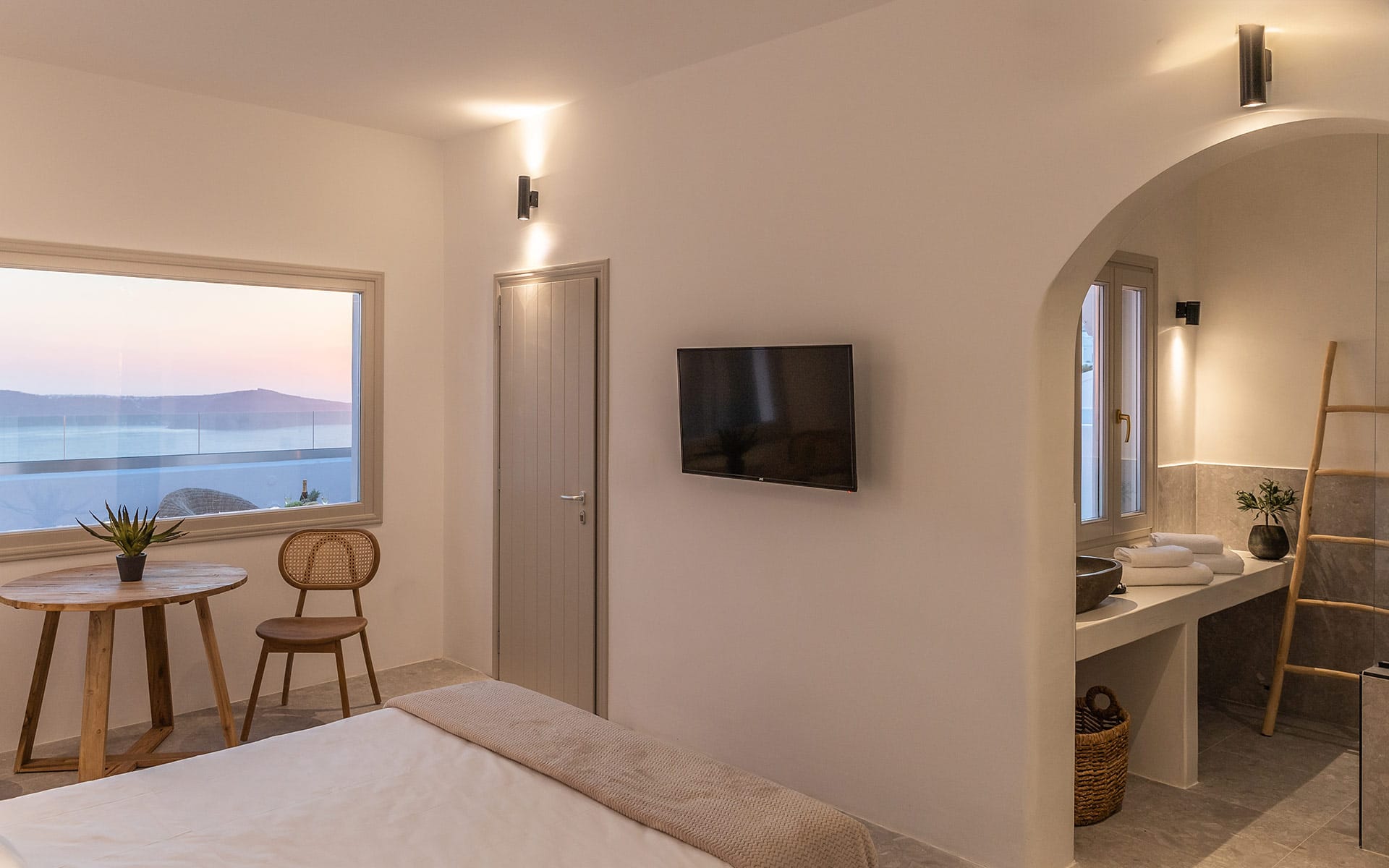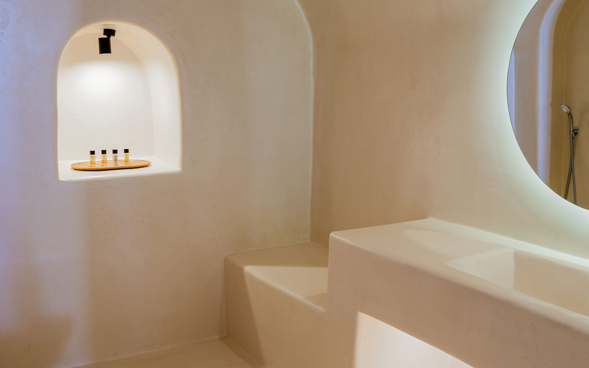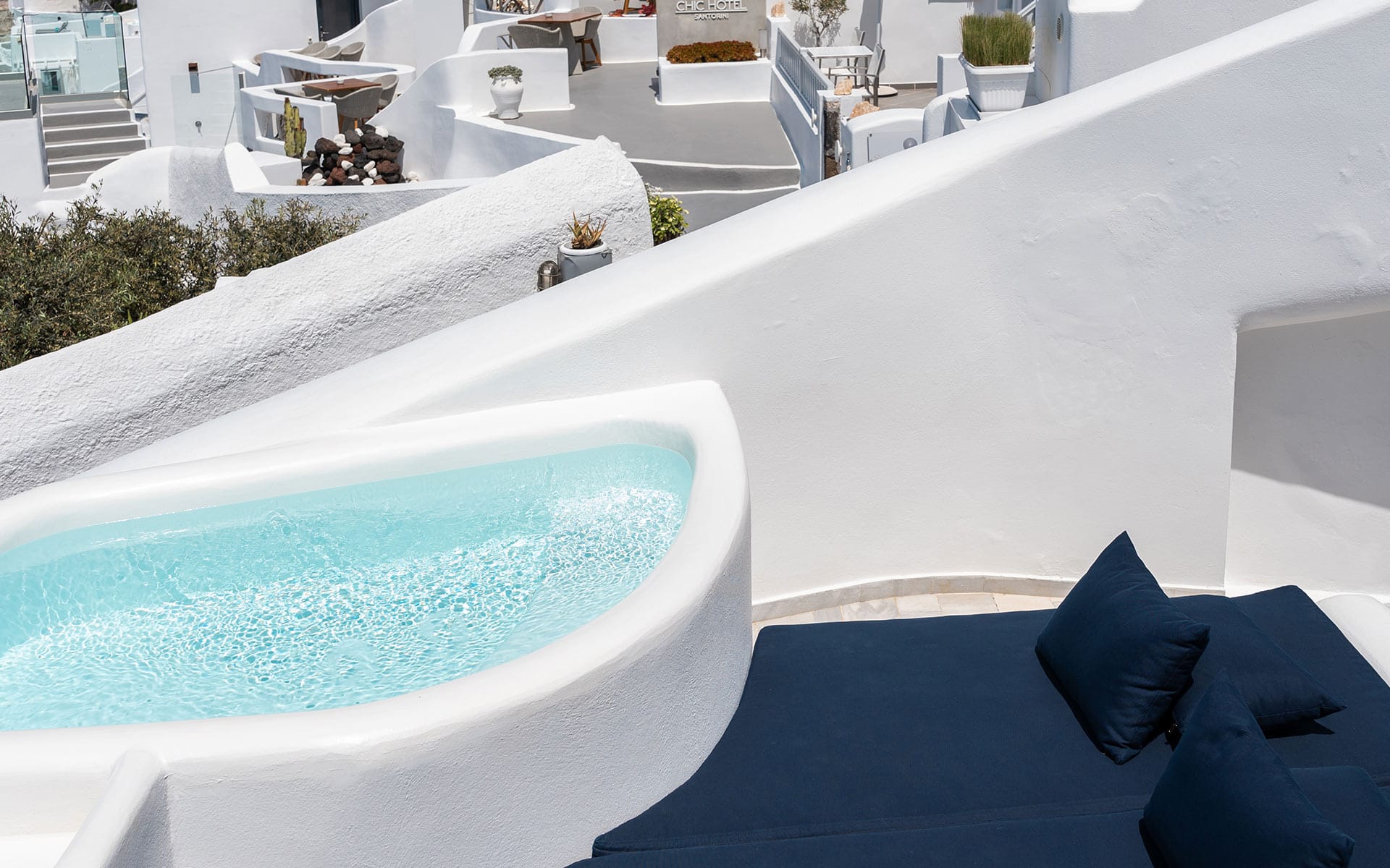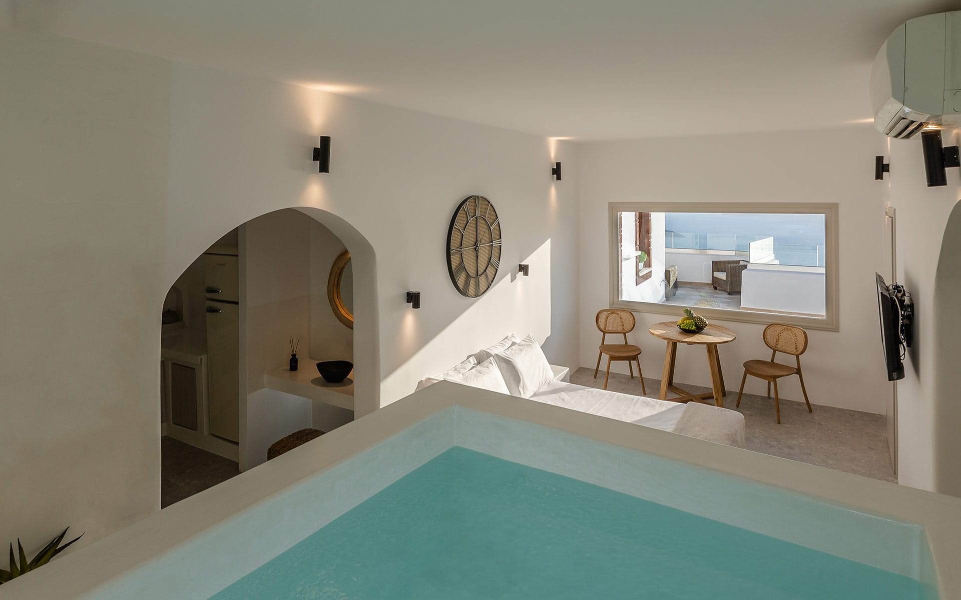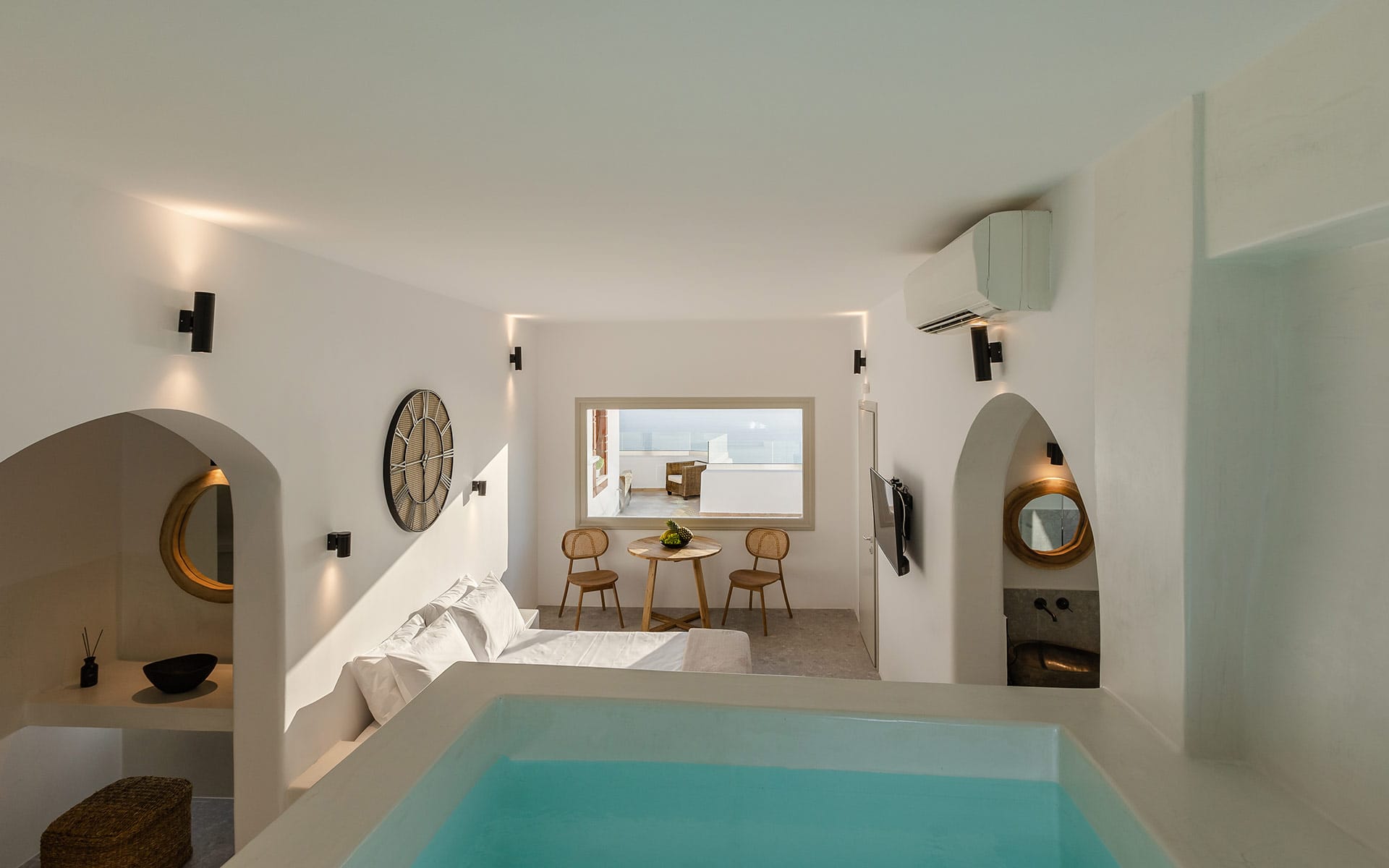 The Mirabo Suite, the Junior Suite and the Cave Studio are the three types of accommodation, three different approaches to real Santorinian yet modern hospitality.