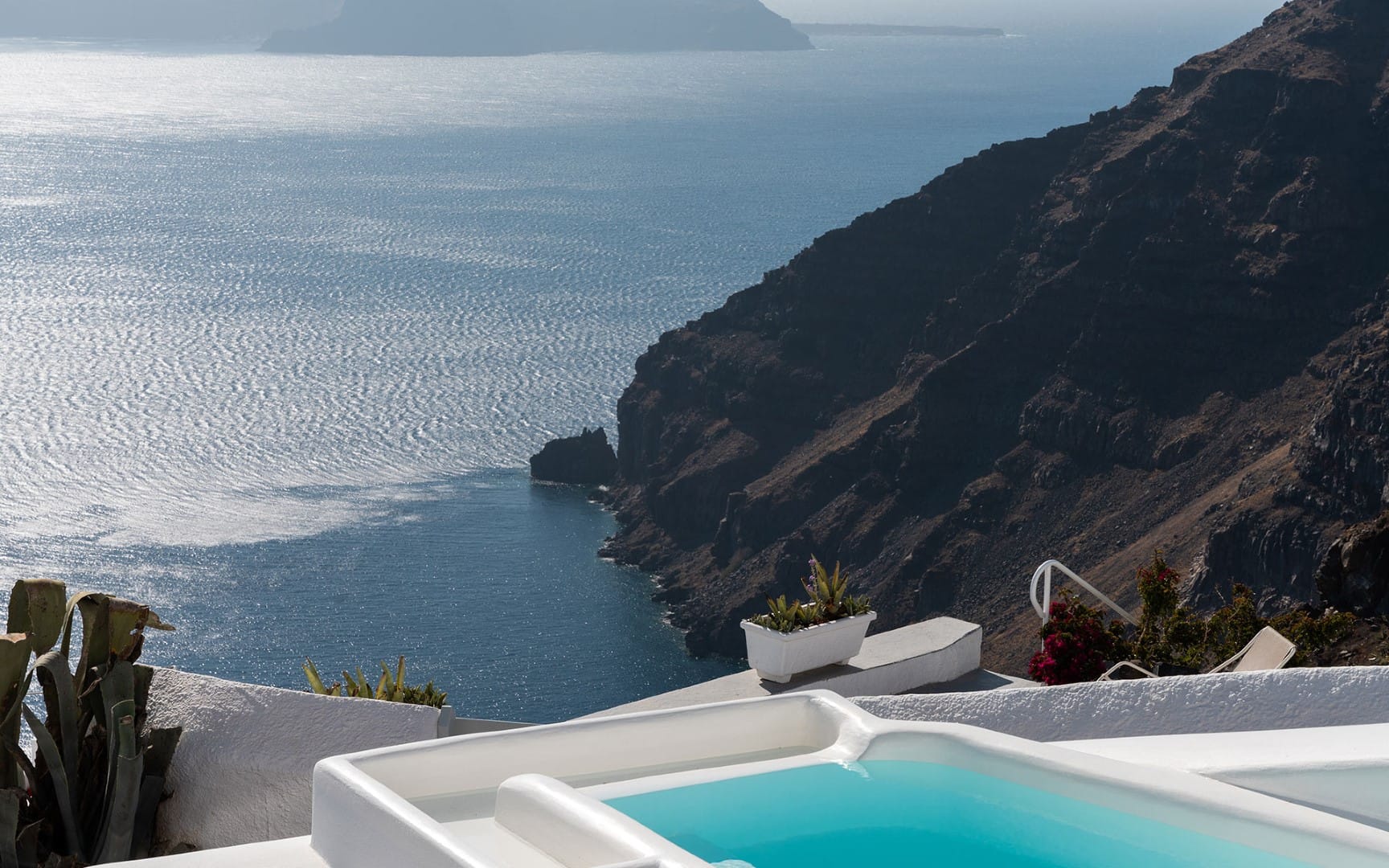 Mirabo Villa combines the simple and charming architecture of Santorini with traditional yet elegant decoration,ideal for a romantic and relaxing vacation experience. The breath-taking caldera and sunset views can be enjoyed from the rooms, the outdoor- shared by all three units jacuzzi and the property’s private marble terrace completes with style the Mirabo Villa experience!
