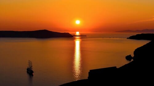 Perched on the caldera’s edge with sweeping views of the Aegean Sea, the world famous sunset and
