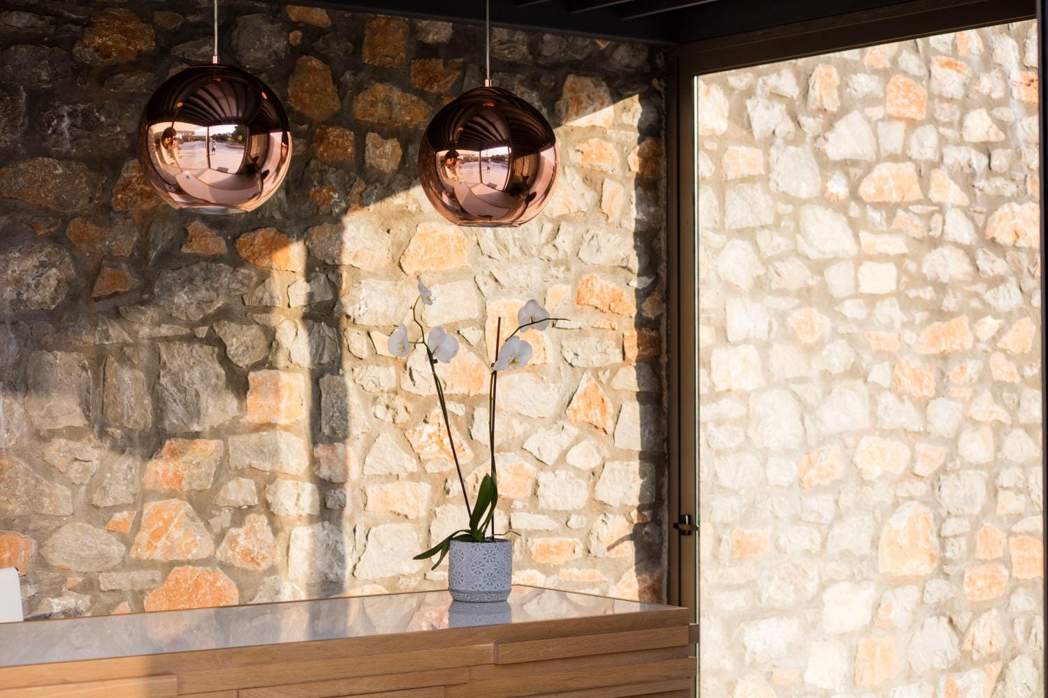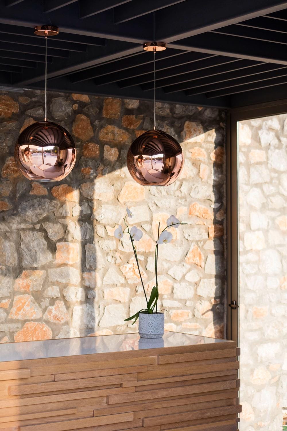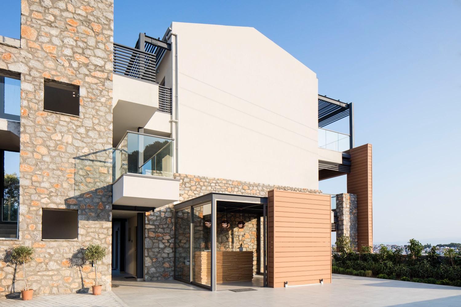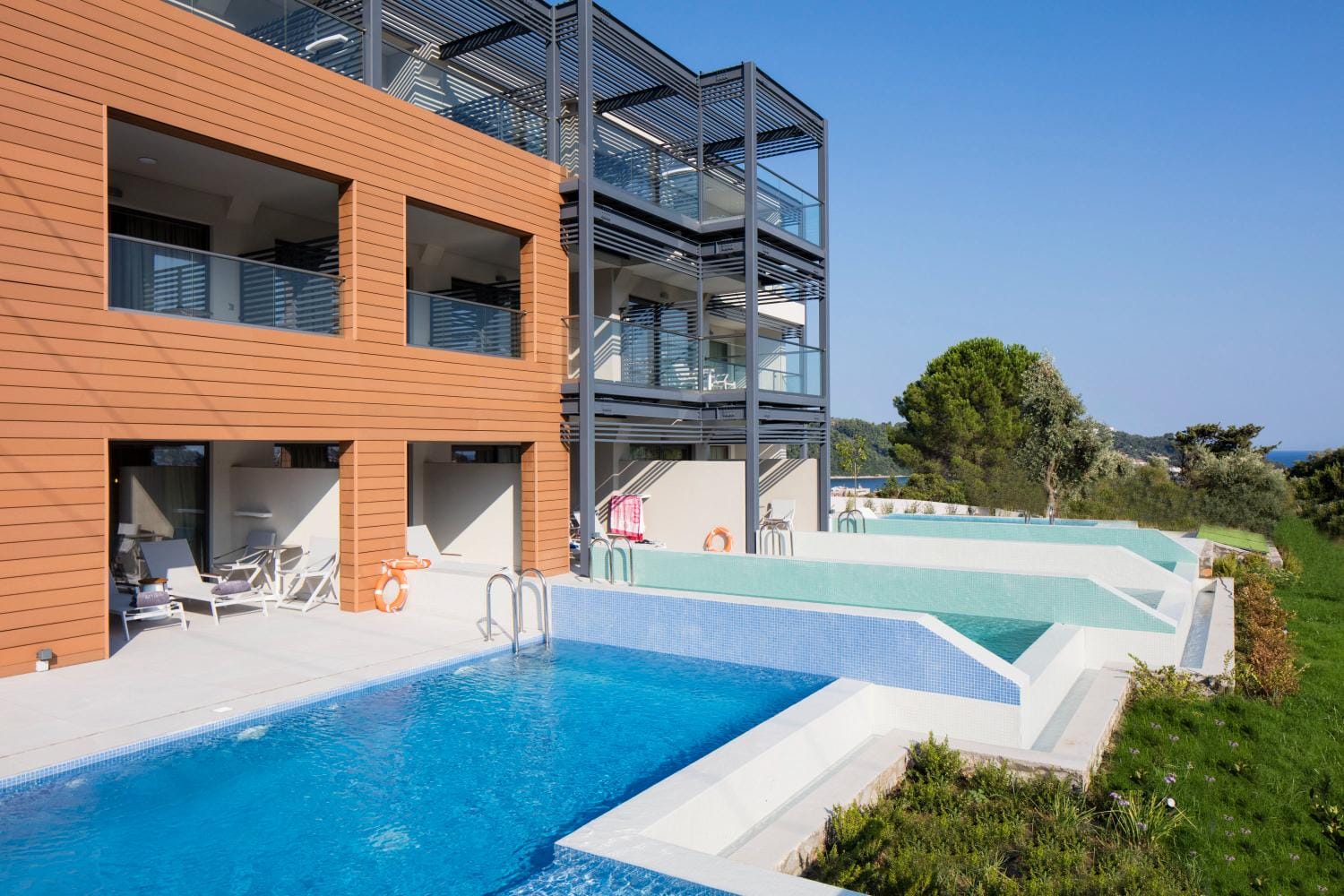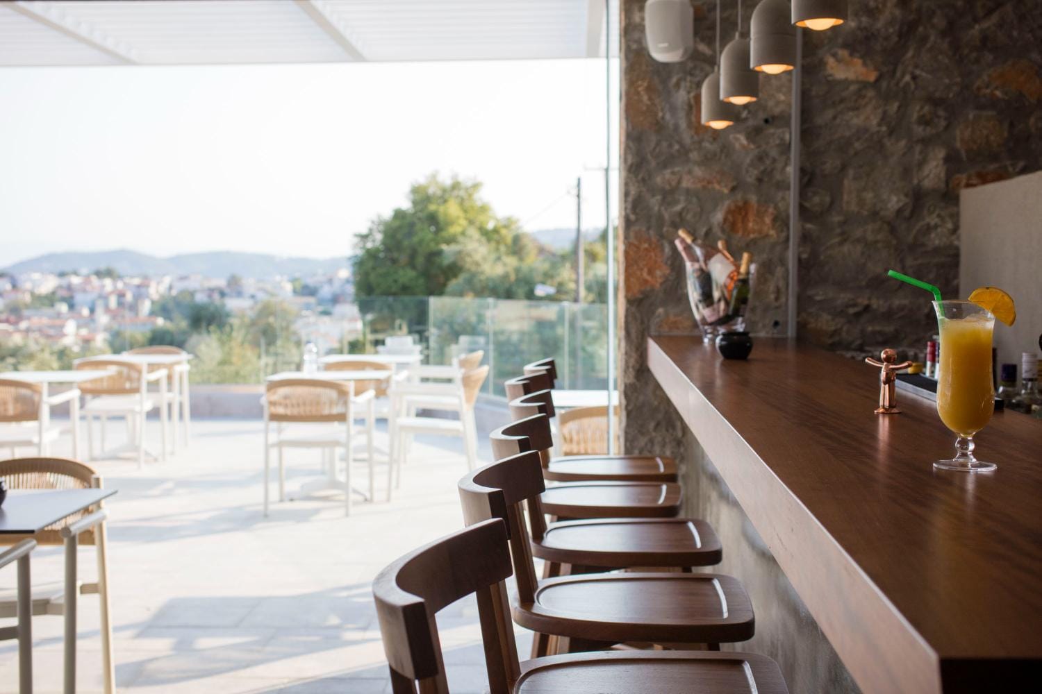 Overlooking the town of Skiathos and the Aegean sea from an elevated mount area, this brand new luxury hotel offers upscale accommodation with a free parking, surrounded by a serene lush green landscape. Amira Hotel architecture follows a minimal design boosted by the fusion of the elements of earth and water, creating an atmosphere of an unpretentious, natural opulence. The embracing warmth of wood and stone and the revitalizing coolness of the pool, calibrate your senses to their natural balance, welcoming you to experience a unique stay in graceful Skiathos.
