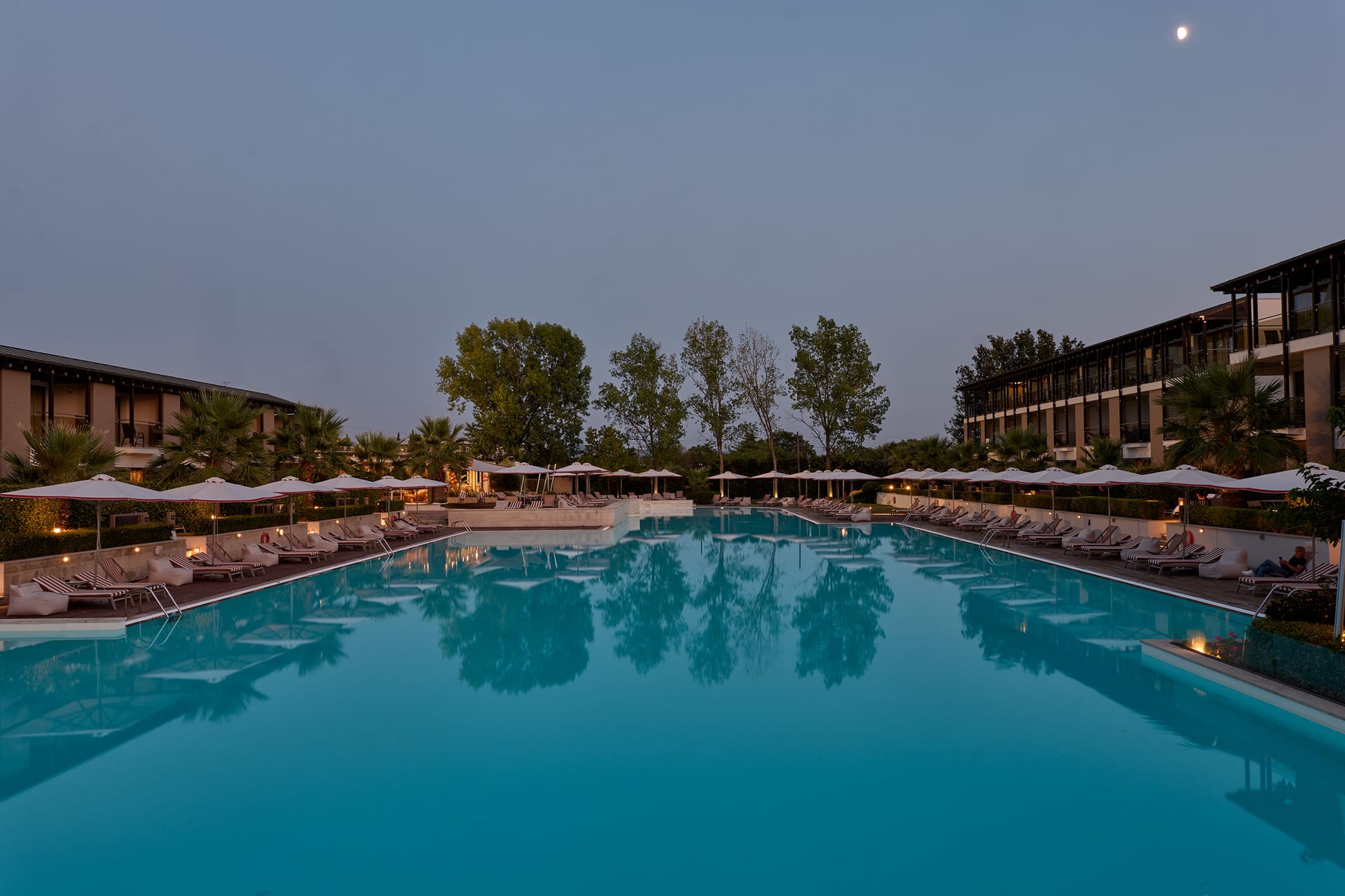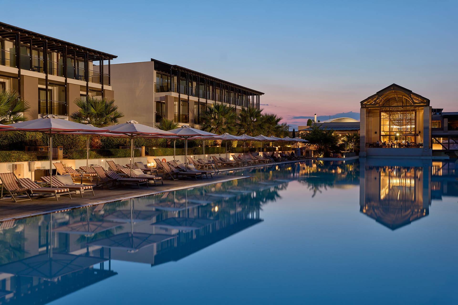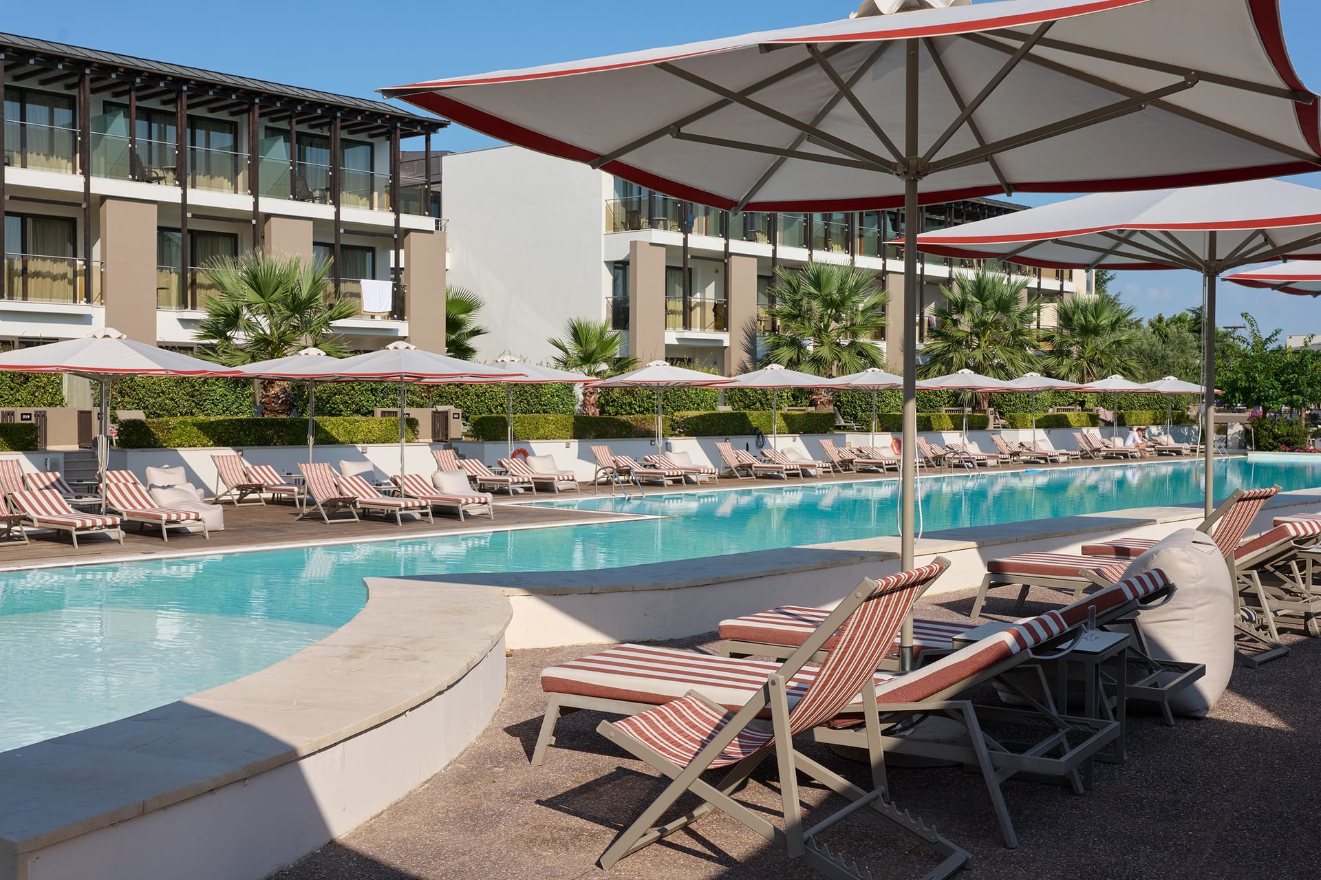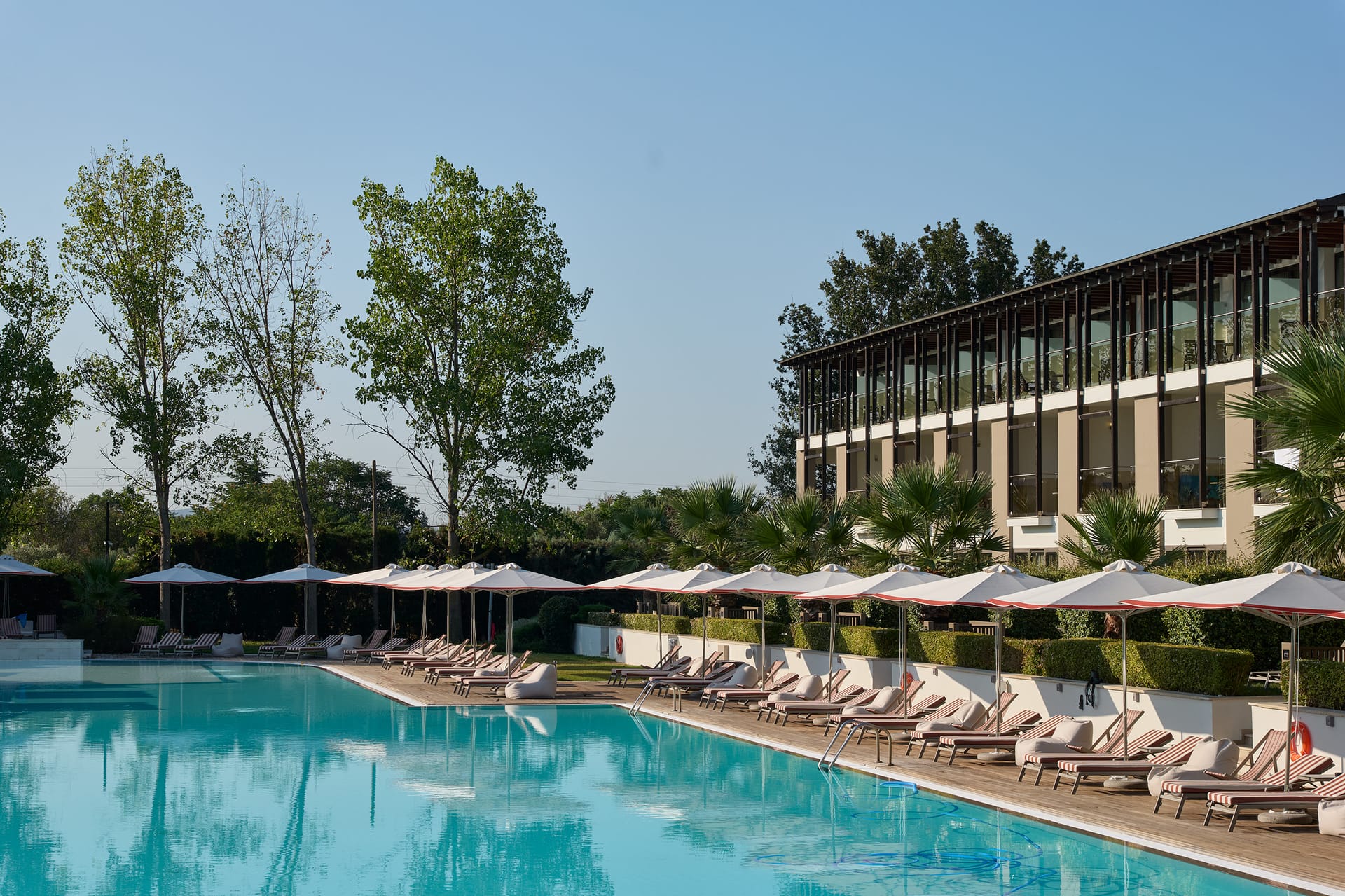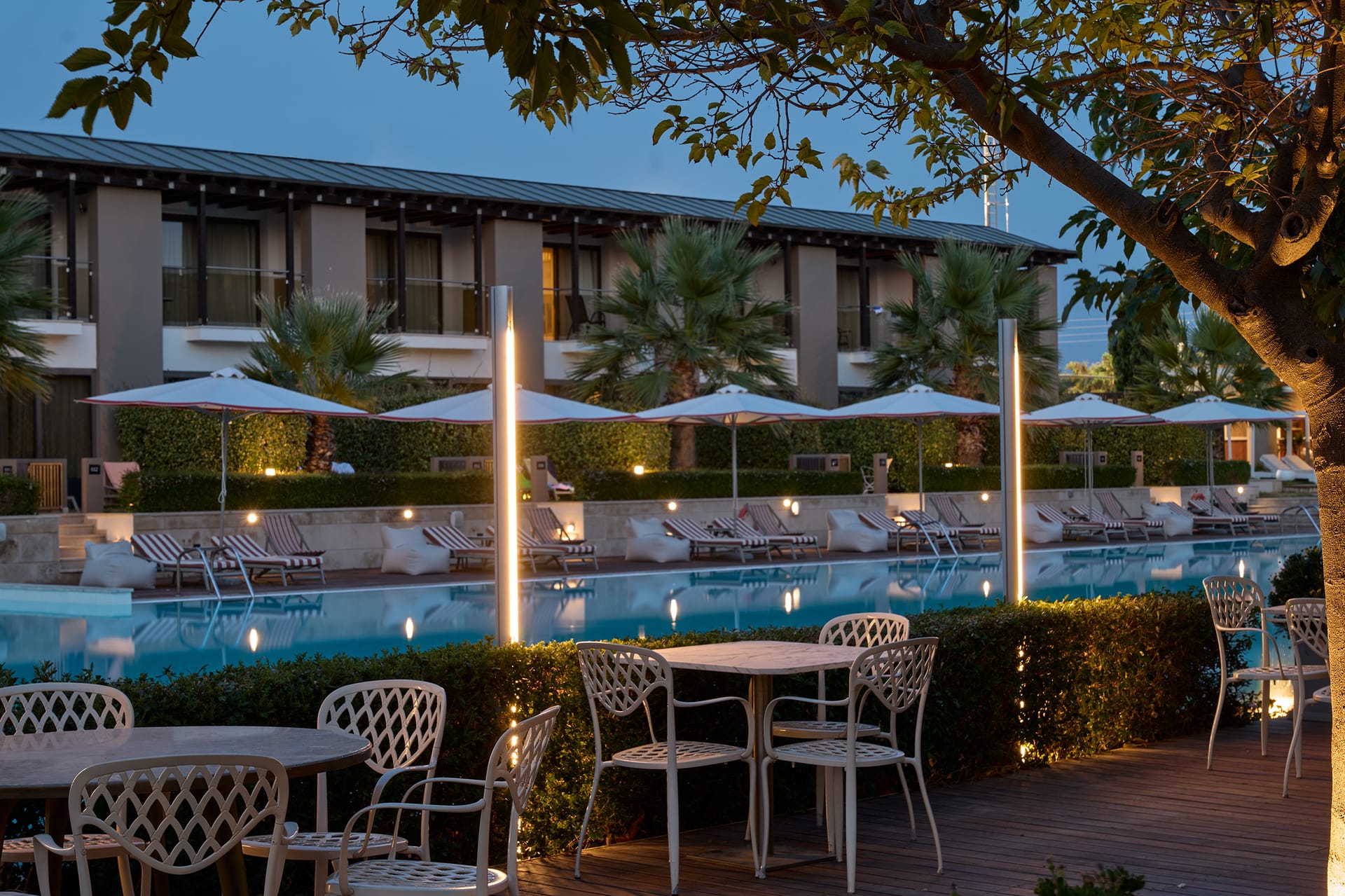 September Hotel is a luxurious 5-star boutique city resort located in Thessaloniki, just 3 km from the International Airport and a 20-minute drive from the city center. With its distinctive architecture and modern design, the hotel offers 99 opulent rooms and suites, elegantly furnished by world-renowned designers. Ideal for both business and leisure travelers, September Hotel features state-of-the-art conference facilities, a fully equipped fitness center, a luxurious spa, and two professional tennis courts. Guests can also indulge in a unique dining experience at the hotel’s restaurant and bar, which boasts stunning views of the garden and pool, creating the perfect setting for relaxation and escape from the urban environment.