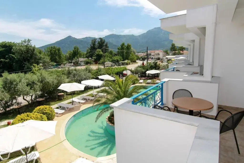 Location: This hotel is located in the heart of Chrysi Ammoudia/Golden Beach. Facilities: To ensure guests a comfortable and relaxing stay, the hotel provides various services and facilities, including a safe, a car hire service, medical assistance and room service. Wireless internet access is provided in public areas. A garden provides extra space for rest and relaxation in the open air. Guests arriving by car can park their vehicles in the car park for no extra charge. Rooms: Air conditioning ensures that rooms maintain comfortable temperatures. A balcony or terrace is among the standard features of some rooms. Some rooms feature a kitchenette, a safe and WiFi (no extra charge). A hairdryer is provided in the bathrooms. Family rooms are available for parents with children. Sports/Entertainment: The outdoor pool complex provides invigorating refreshment. A hot tub invites guests to soothe their muscles (no extra charge), and a poolside snack bar will take care of any hungry bellies. A short break or an entire afternoon on the sun terrace, which features sun loungers and parasols, is time well spent. Guests can take part in a comprehensive water sports programme, which includes canoeing and diving, with water skiing, paddle boating and sailing available for a fee. Copyright GIATA 2004 - 2025. Multilingual, powered by www.giata.com for client no. 125352 Meals: There is a bar on the premises. A fortifying breakfast is served daily.