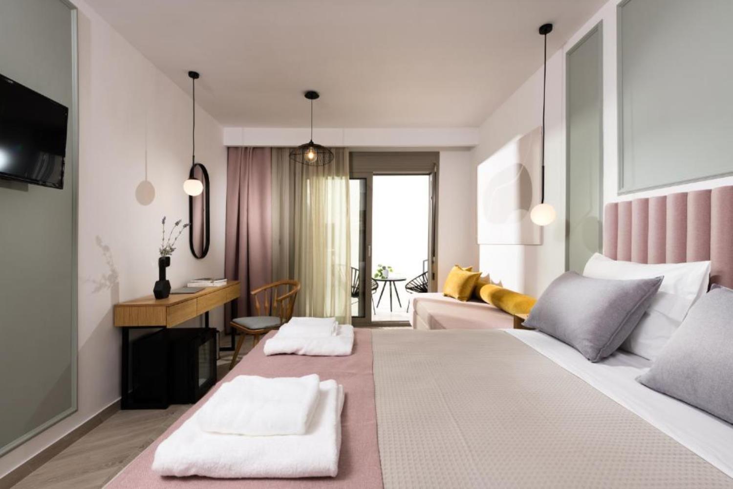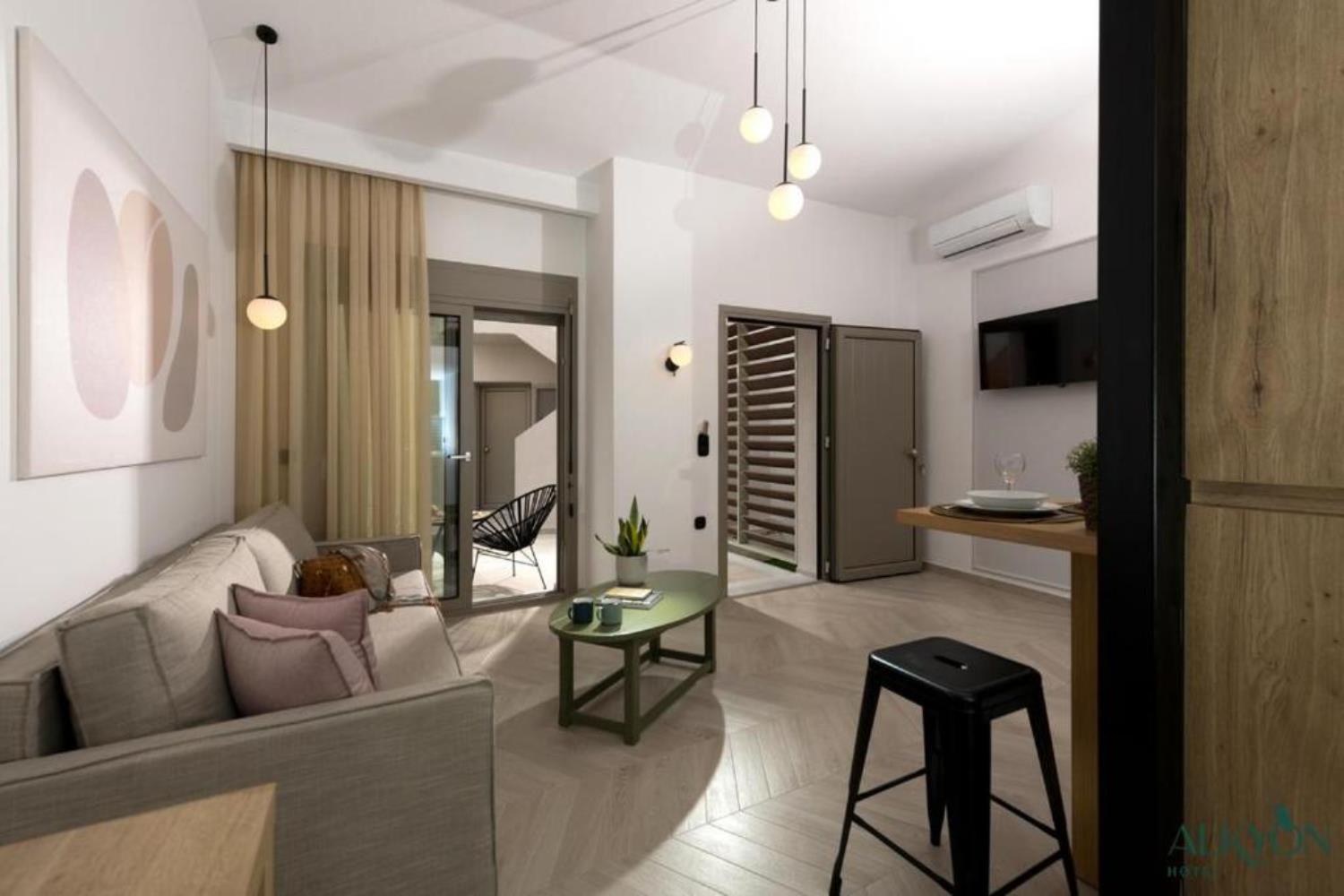 Alkyon Hotel is situated in Limenas, infront of the marina and the renovated part consists of 3 double rooms sea view and 3 double rooms garden view. All the shops, tavernas, cafeteria are next to the hotel. All rooms provide air condition, plasma TV, refrigerator, shower, hair dryer and balcony. The breakfast is served, exactly next to the hotel Alkyon, in the family business patisserie ”Stamatis”.
