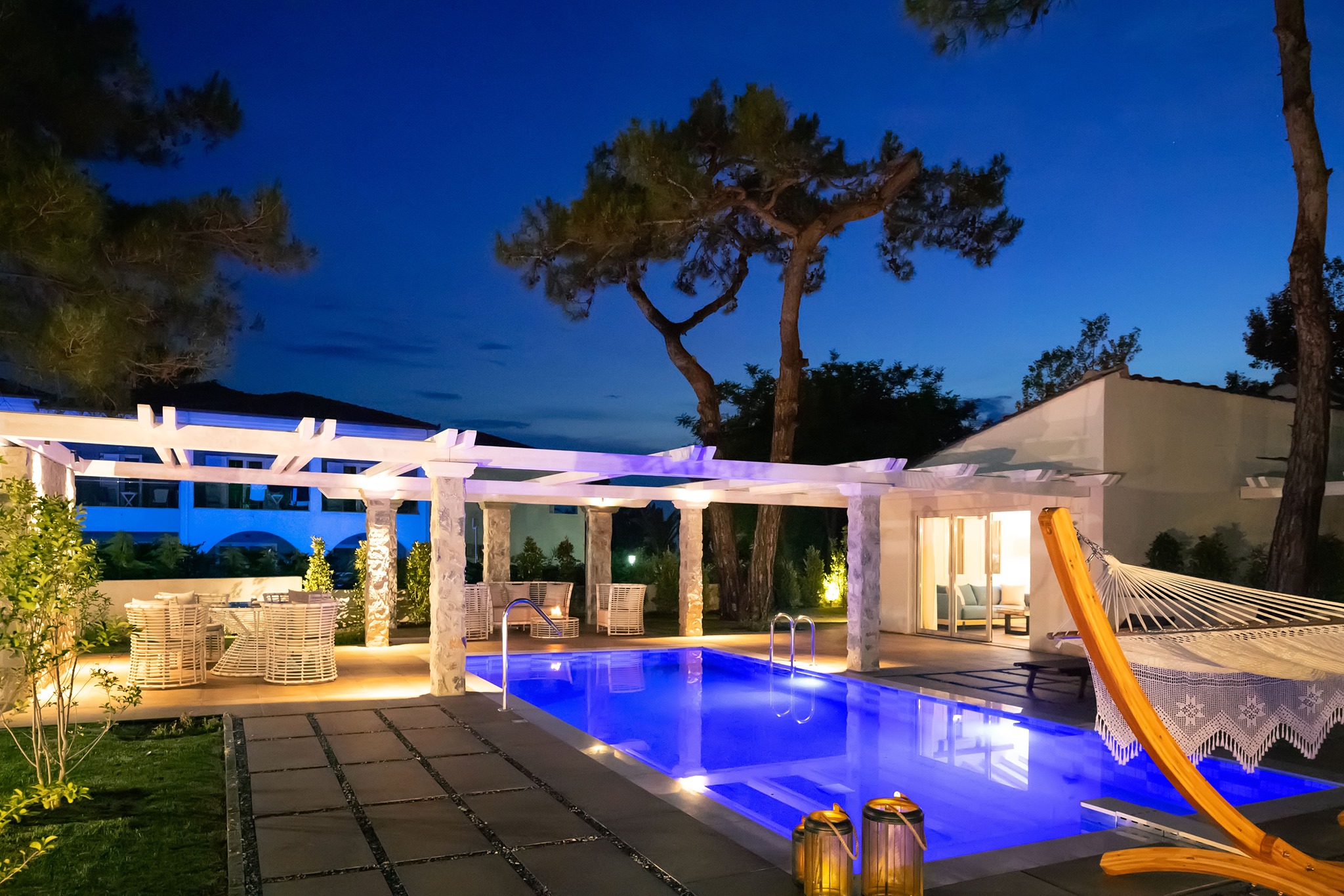 On the beautiful island of Thassos, near the village of Potos, a small heaven awaits you in a picturesque place with an emerald pure sea, multicolored sunsets and an amazing view to the Aegean Sea. Surrounded by 500 acres of lush gardens with roses and palm trees, the resort offers the ambience of a small village with an intimate atmosphere.