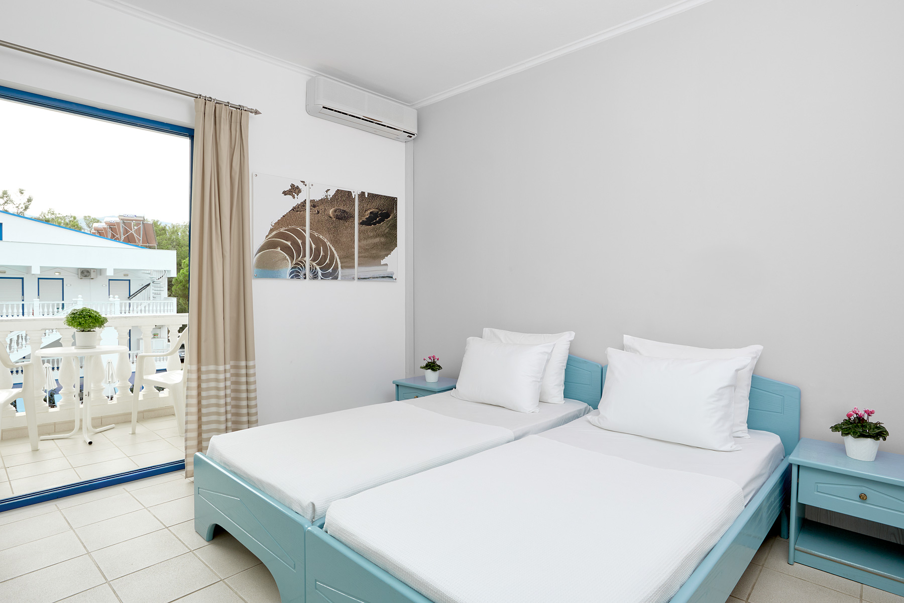 Including a furnished balcony overlooking the pool or the gardens, the air-conditioned rooms and apartments at Kazaviti Hotel include a satellite TV and a minibar.