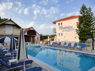 Location: This hotel is set in a quiet and central spot in the famous resort of Laganas. The beach is 1 km away while bars, pubs and local taverns are within a short walking distance. Zakynthos International Airport is about 6 km away. Facilities: 13 studios are available. The apartment hotel provides a safe and a currency exchange service. The grounds of the hotel feature a playground and a lovely garden. Guests arriving by car can park their vehicles in the car park. Rooms: Rooms feature a kitchen and a bathroom. Air conditioning ensures comfortable temperatures. Some rooms have a balcony, which gives guests additional space for rest and relaxation. Guests are sure to get a good night's sleep in the double bed. Valuables can be securely stored in a safe. For self-catering guests, there is a well-equipped kitchenette with a refrigerator, stovetop, tea/coffee station and oven. An ironing set is provided for guests' convenience. A television with satellite/cable channels ensures additional comfort. Bathrooms are equipped with a shower and a bathtub. Sports/Entertainment: The sports and entertainment facilities at the hotel ensure that guests have plenty of activities to choose from during their stay. The outdoor pool complex includes a children's swimming area and is ideal for working out or just relaxing. Comfortable sun loungers are available on the terrace. The pool bar serves a selection of refreshing drinks. Copyright GIATA 2004 - 2025. Multilingual, powered by www.giata.com for client no. 125352 Meals: Dining facilities include a café and a bar. Guests can indulge their palates at the restaurant (smoking area, air conditioning and high chairs). A delicious breakfast is an excellent reason to rise and shine. At lunch and dinner, guests can order dishes à la carte or choose a set menu. The apartment hotel also offers snacks. Payment: The hotel accepts the following credit cards: American Express, VISA, Diners Club and MasterCard.