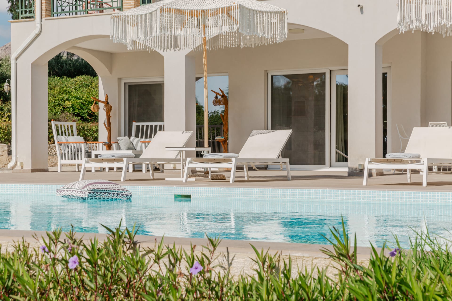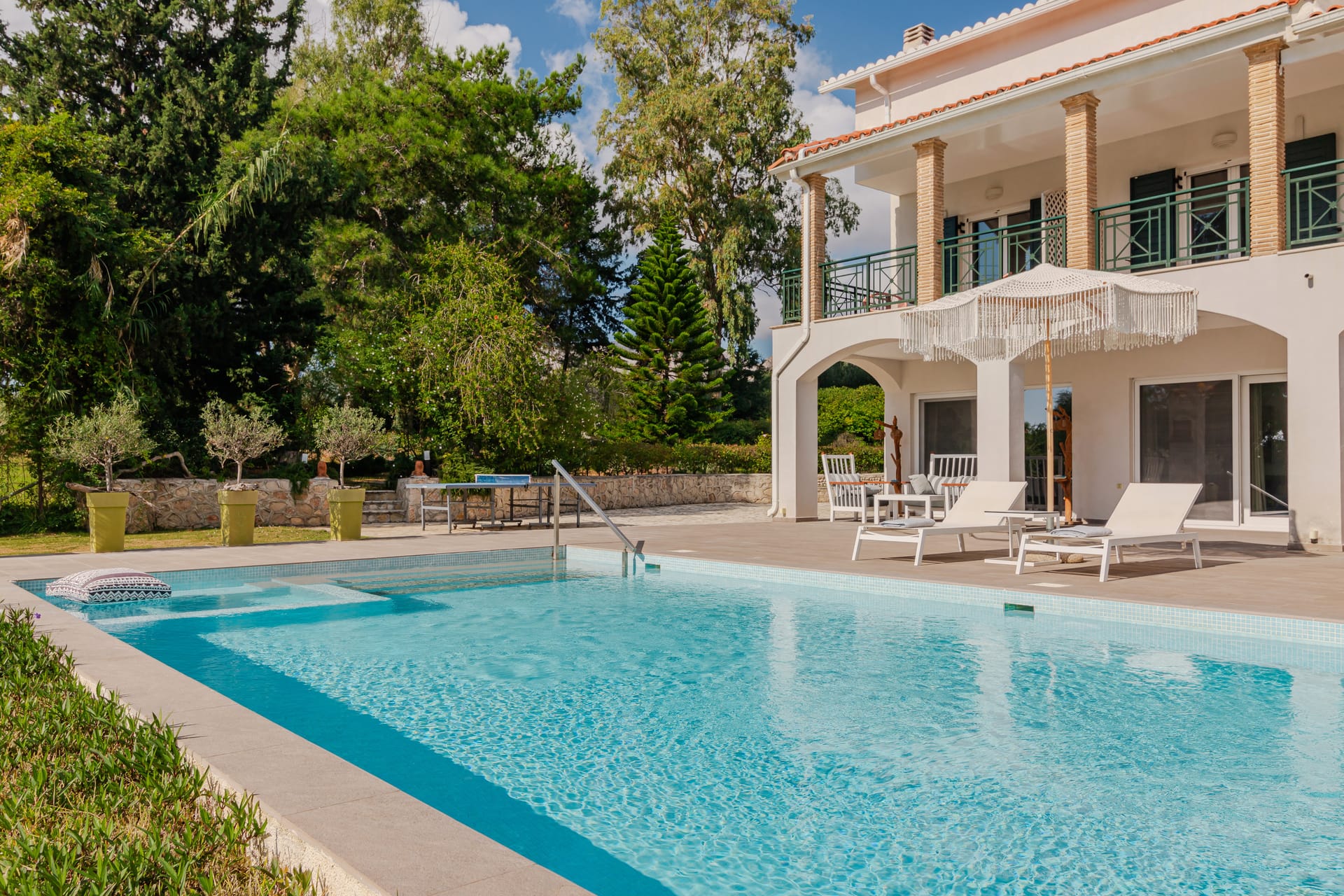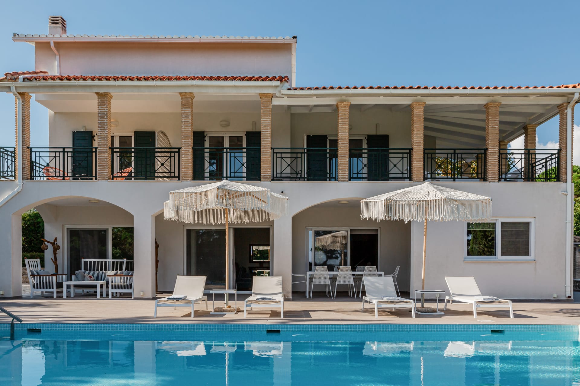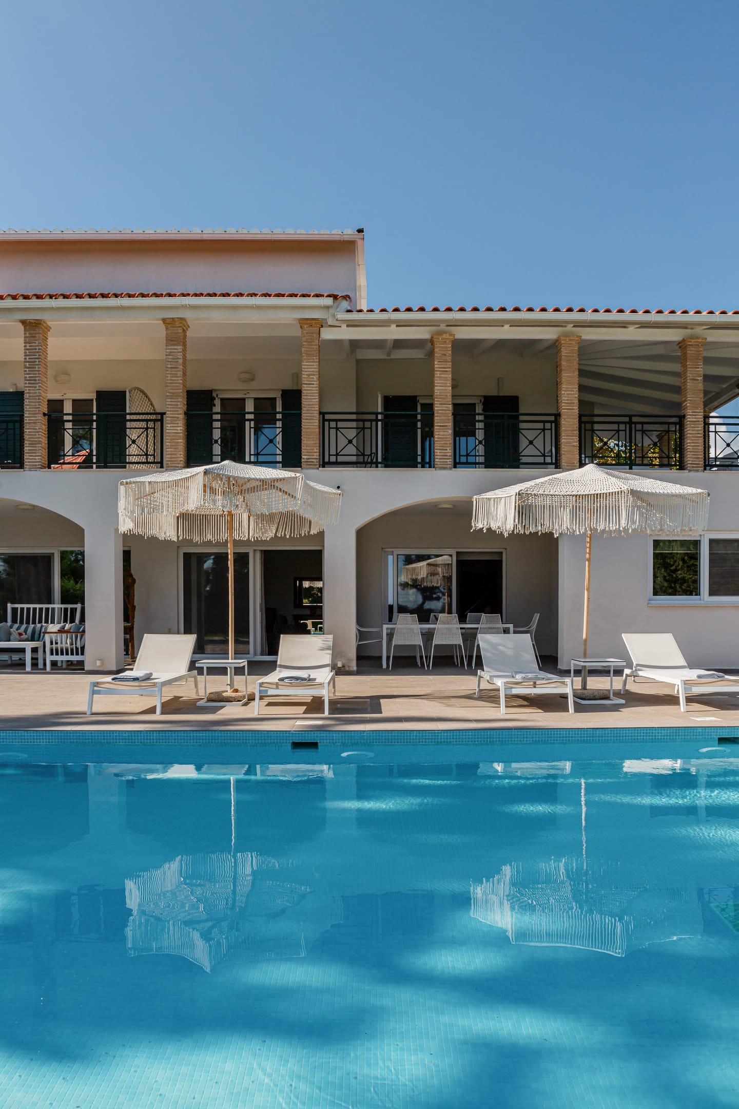 In a quiet location of Agios Sostis, Zakynthos, just a few meters away from a secluded beach, Rivazzurra is a private pool villa of supreme luxury and absolute privacy. The 50 sq.m. swimming pool, which is surrounded by umbrellas and sunbeds, has a jacuzzi function, an eco-cleaning system, a shallow end for children and night lighting. We offer any luxurious amenity you may desire, such as on-demand meal arrangements, private chef services, wonderful sports activities, dining in top-class restaurants, and countless more, coupled with the sublime experience of living in Rivazzurra Villa.