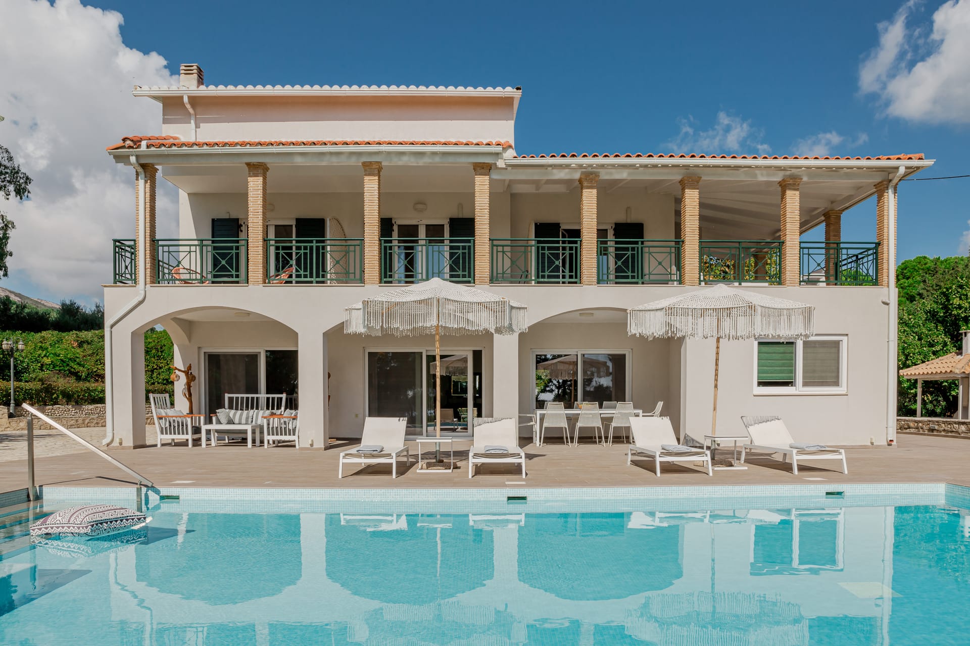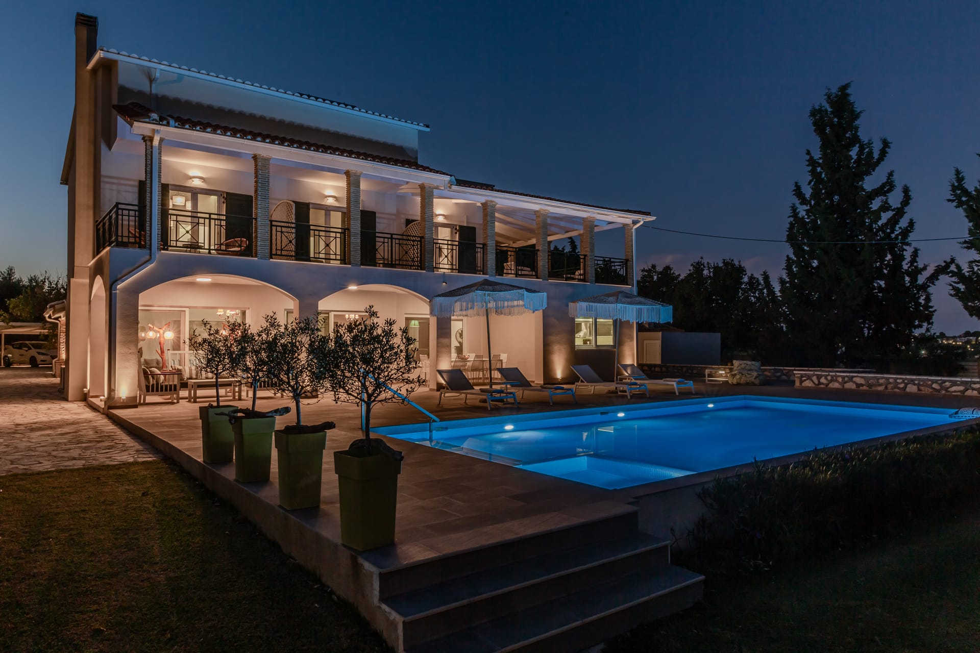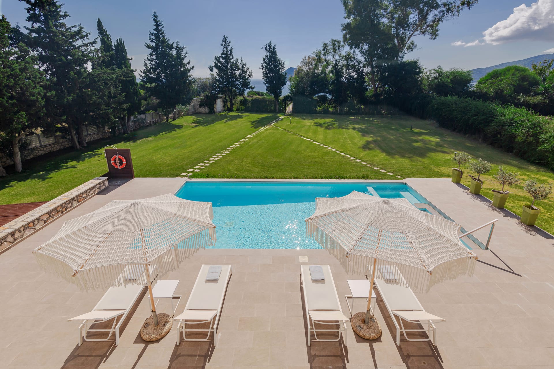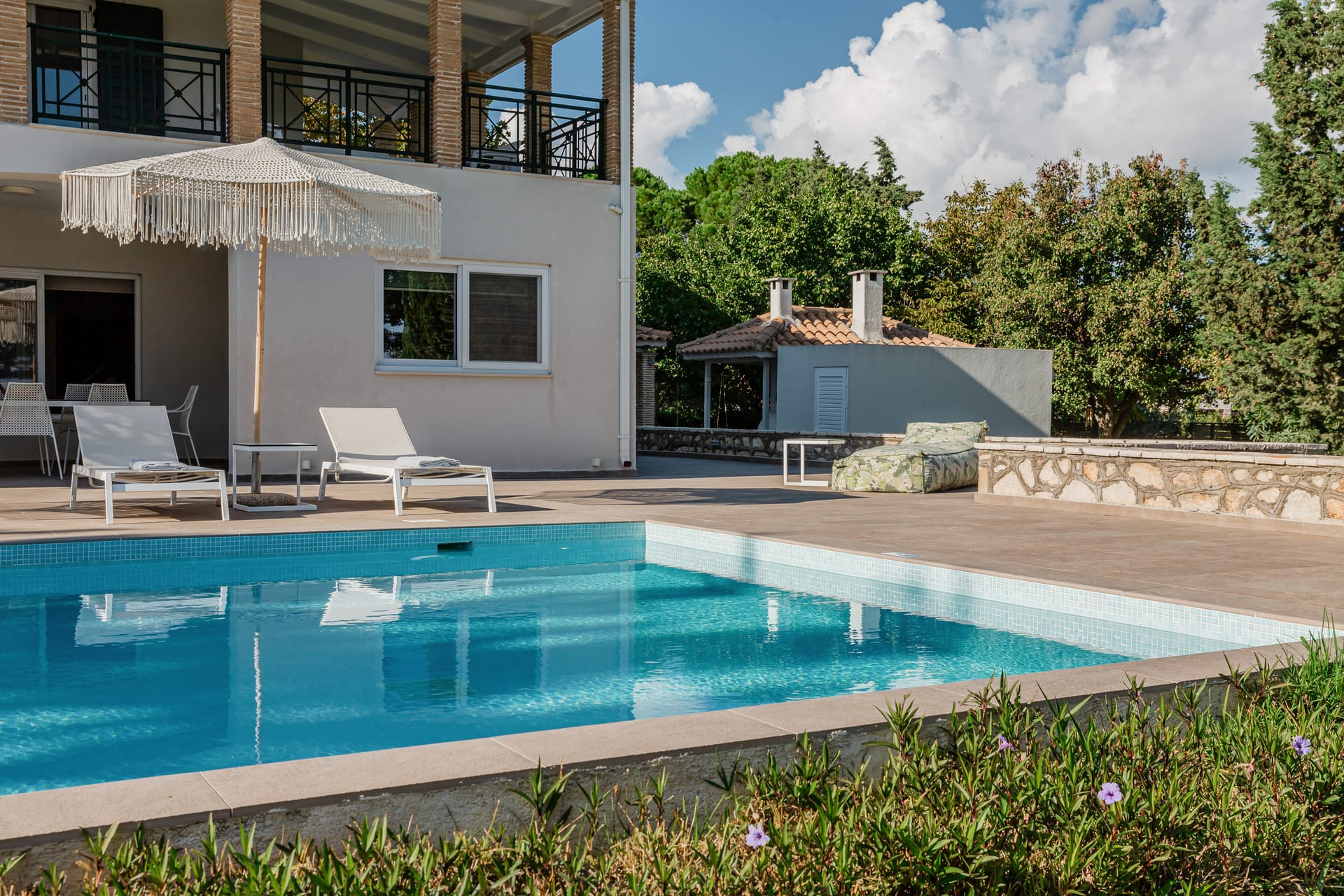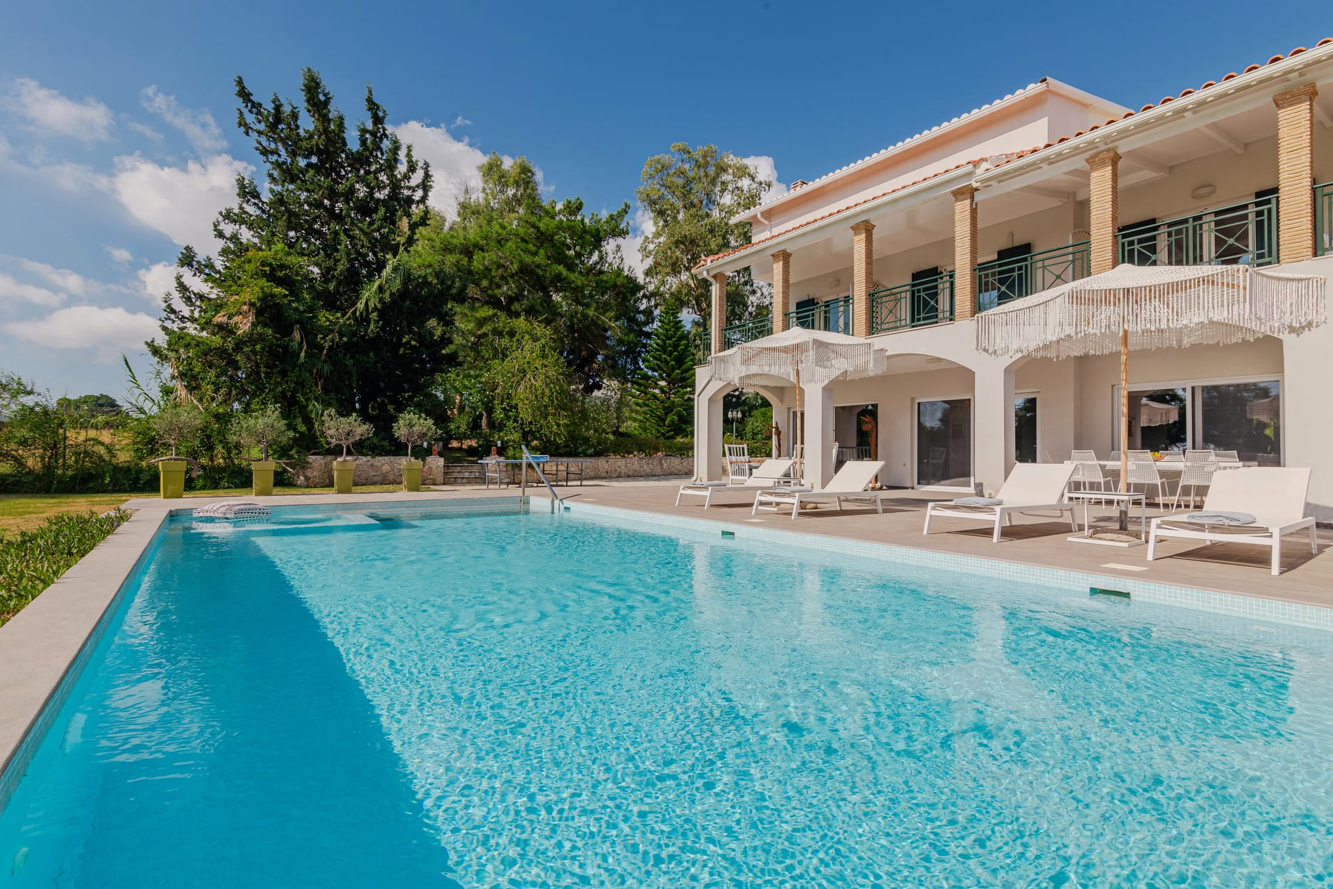 In a quiet location of Agios Sostis, Zakynthos, just a few meters away from a secluded beach, Rivazzurra is a private pool villa of supreme luxury and absolute privacy. The 50 sq.m. swimming pool, which is surrounded by umbrellas and sunbeds, has a jacuzzi function, an eco-cleaning system, a shallow end for children and night lighting. We offer any luxurious amenity you may desire, such as on-demand meal arrangements, private chef services, wonderful sports activities, dining in top-class restaurants, and countless more, coupled with the sublime experience of living in Rivazzurra Villa.