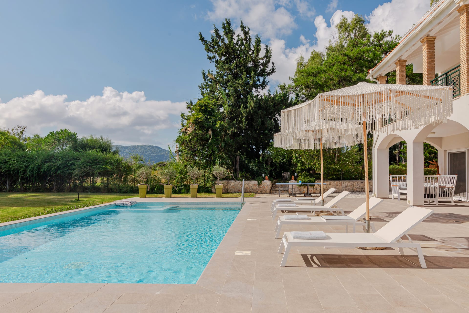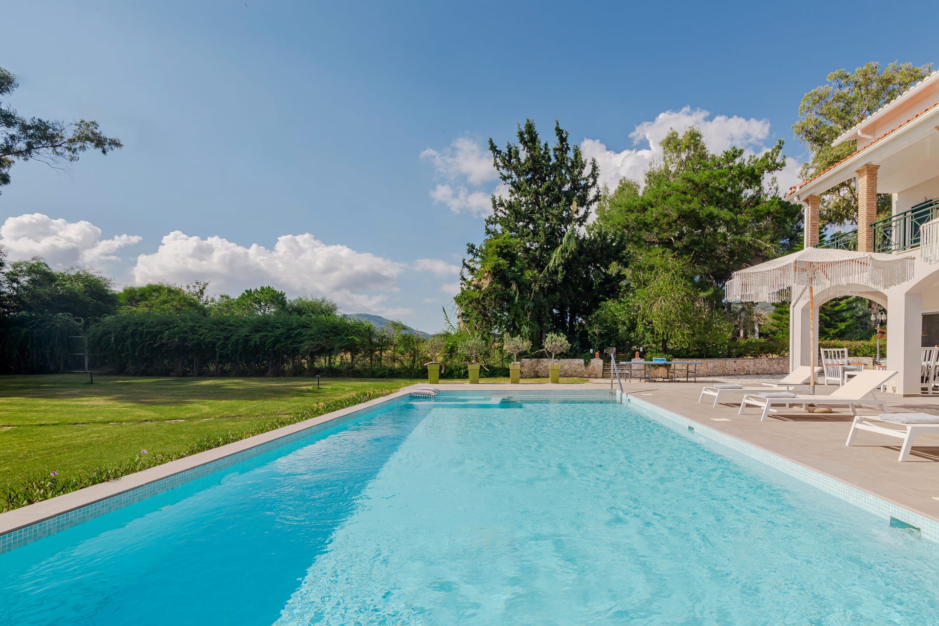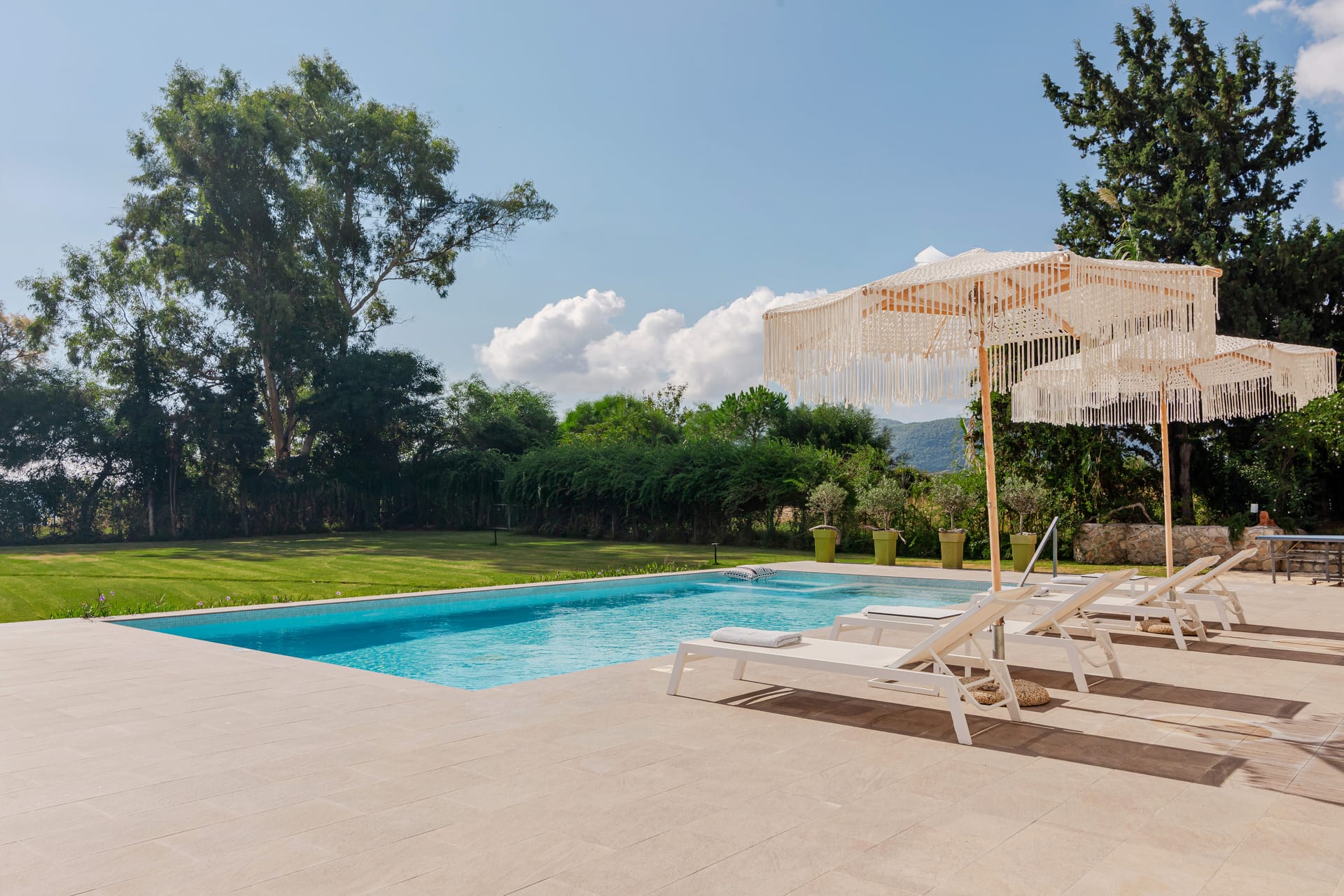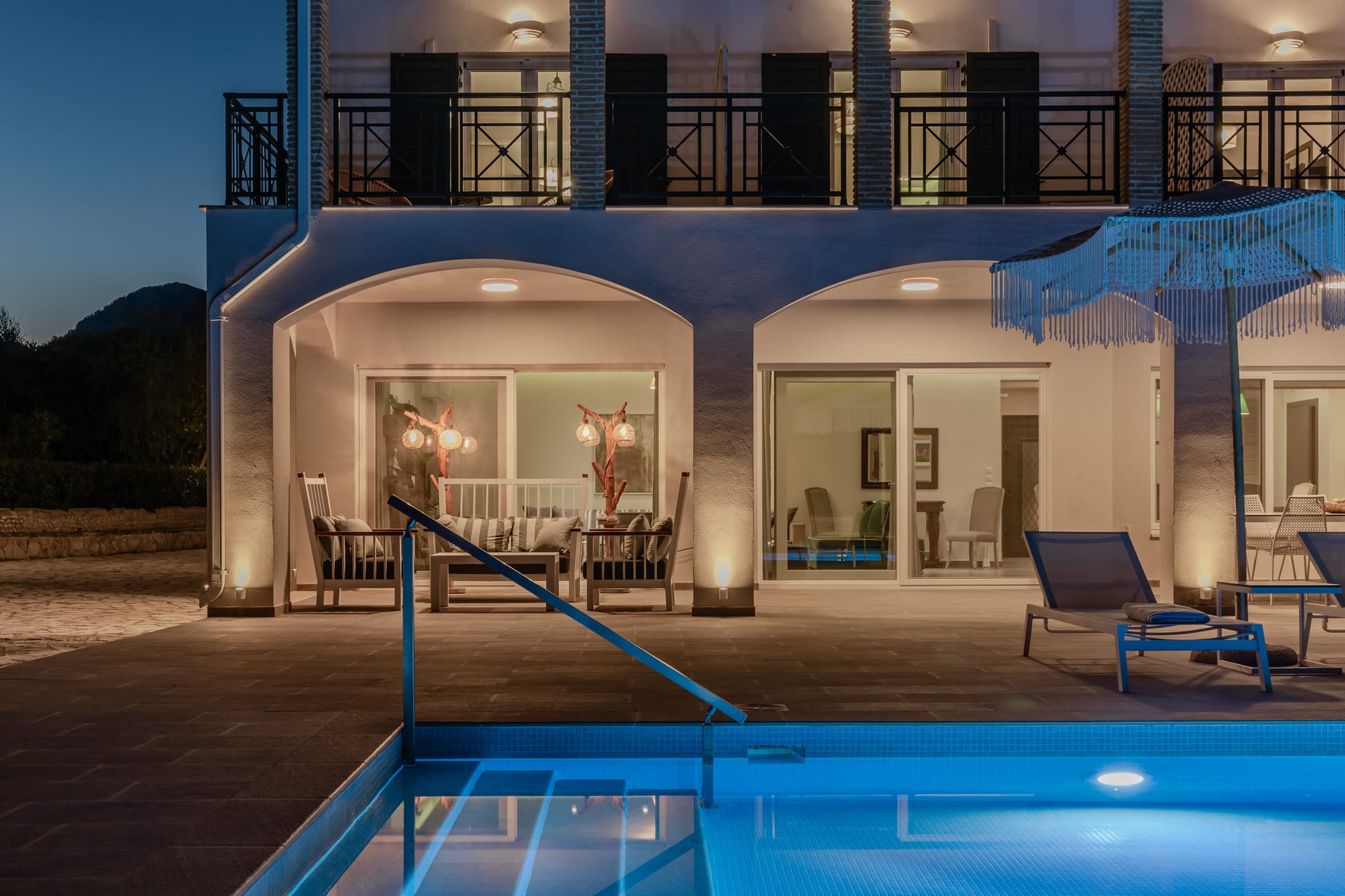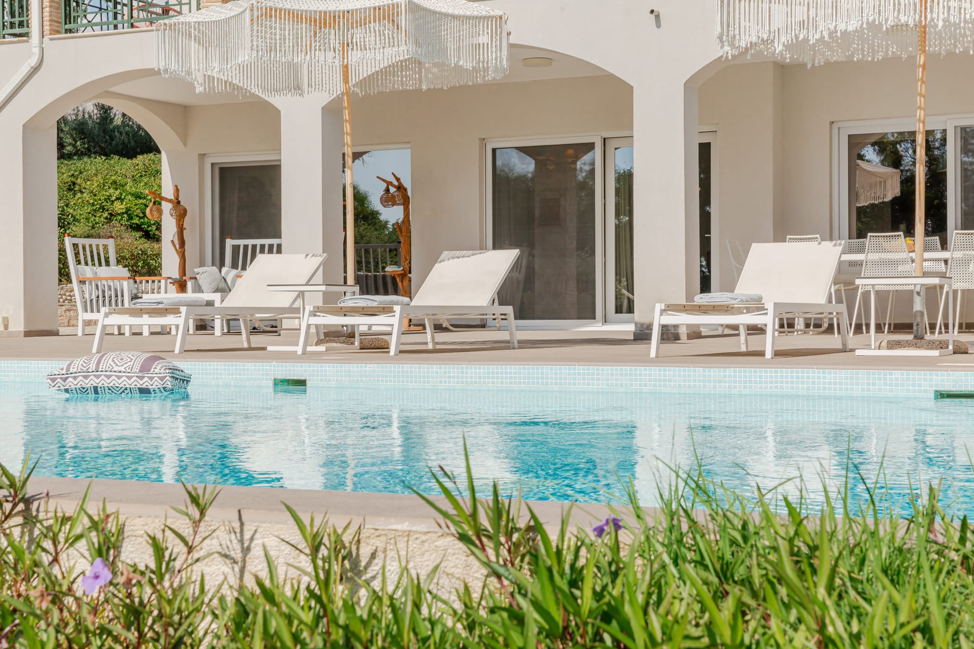 In a quiet location of Agios Sostis, Zakynthos, just a few meters away from a secluded beach, Rivazzurra is a private pool villa of supreme luxury and absolute privacy. The 50 sq.m. swimming pool, which is surrounded by umbrellas and sunbeds, has a jacuzzi function, an eco-cleaning system, a shallow end for children and night lighting. We offer any luxurious amenity you may desire, such as on-demand meal arrangements, private chef services, wonderful sports activities, dining in top-class restaurants, and countless more, coupled with the sublime experience of living in Rivazzurra Villa.