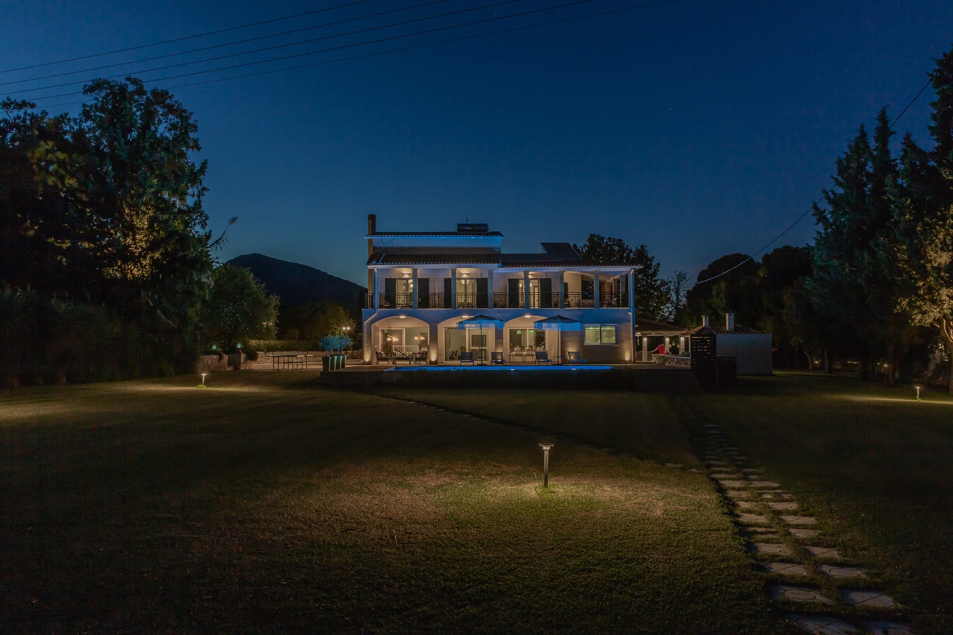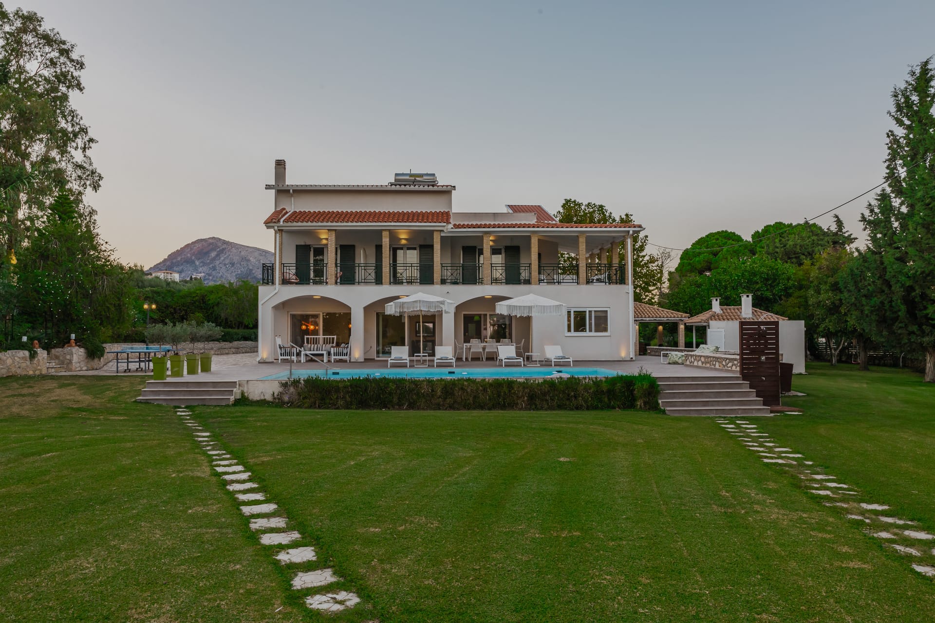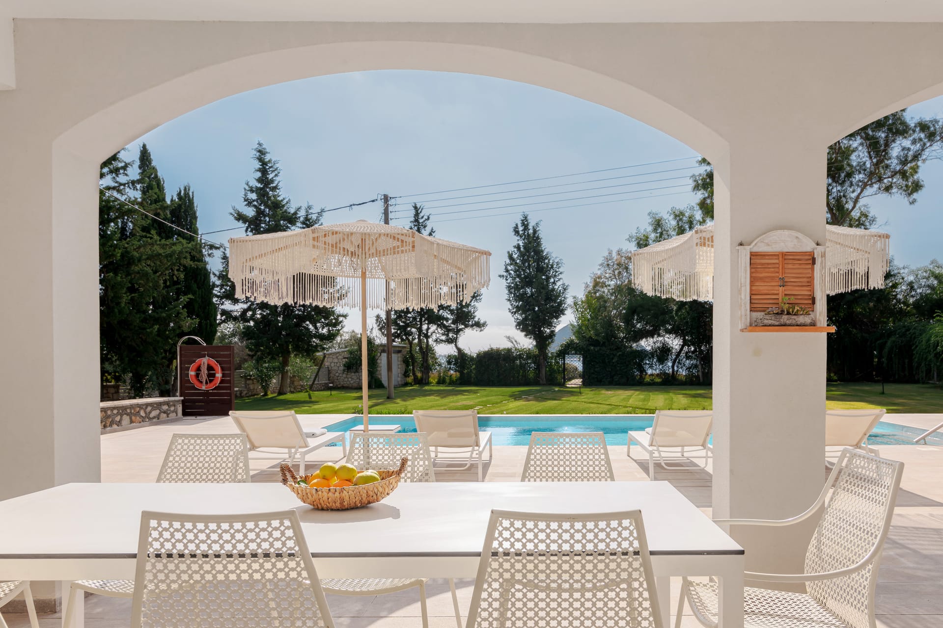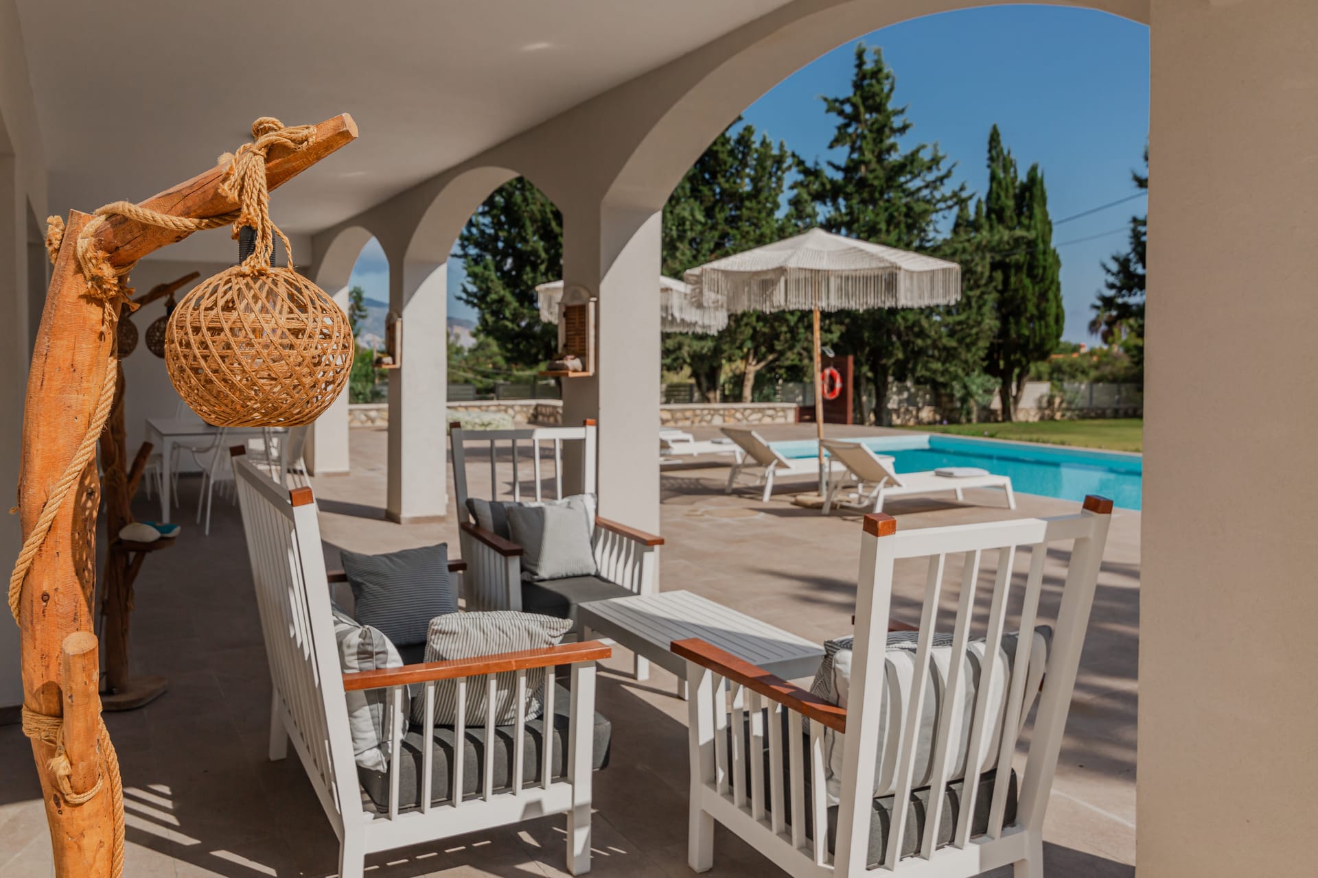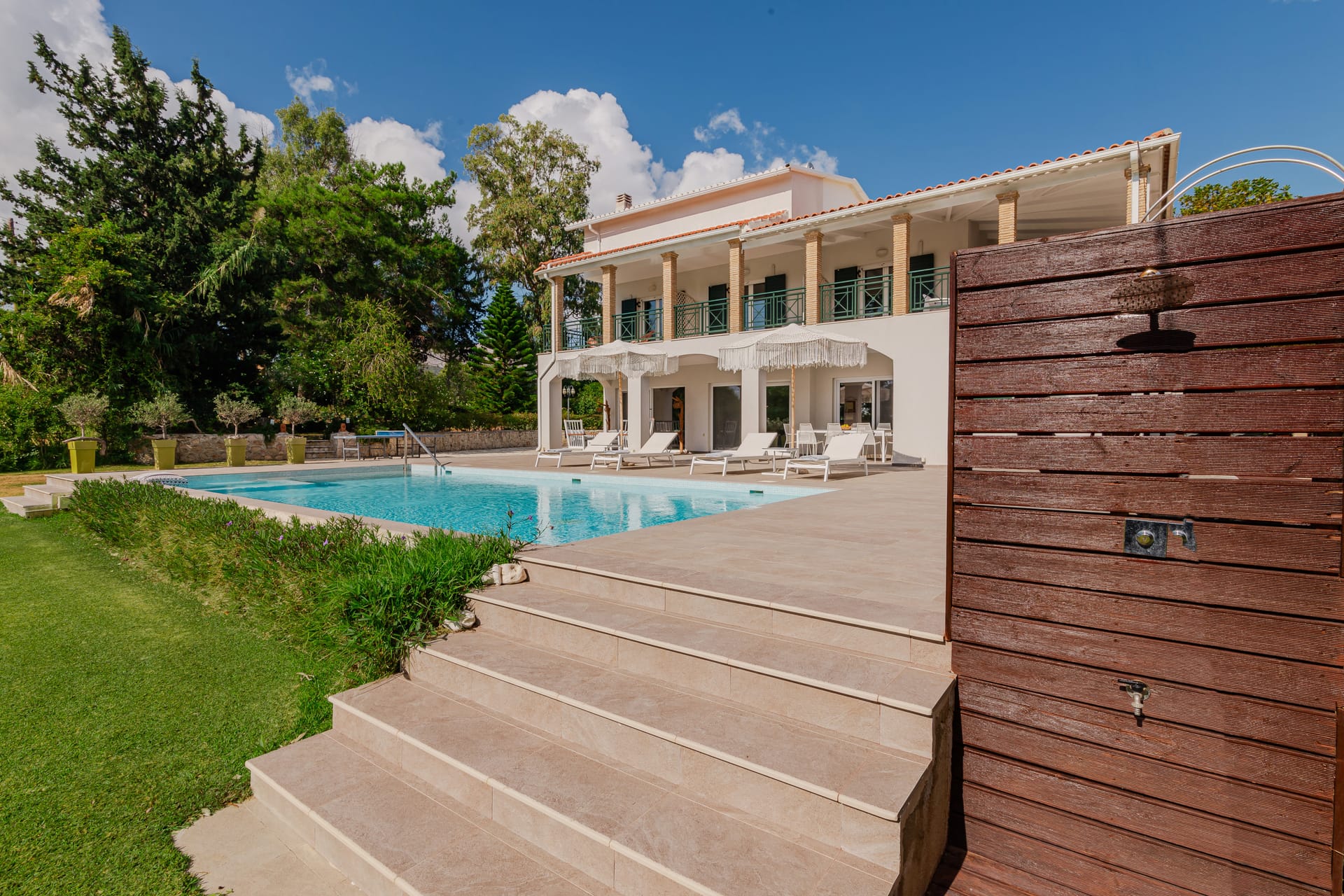 In a quiet location of Agios Sostis, Zakynthos, just a few meters away from a secluded beach, Rivazzurra is a private pool villa of supreme luxury and absolute privacy. The 50 sq.m. swimming pool, which is surrounded by umbrellas and sunbeds, has a jacuzzi function, an eco-cleaning system, a shallow end for children and night lighting. We offer any luxurious amenity you may desire, such as on-demand meal arrangements, private chef services, wonderful sports activities, dining in top-class restaurants, and countless more, coupled with the sublime experience of living in Rivazzurra Villa.