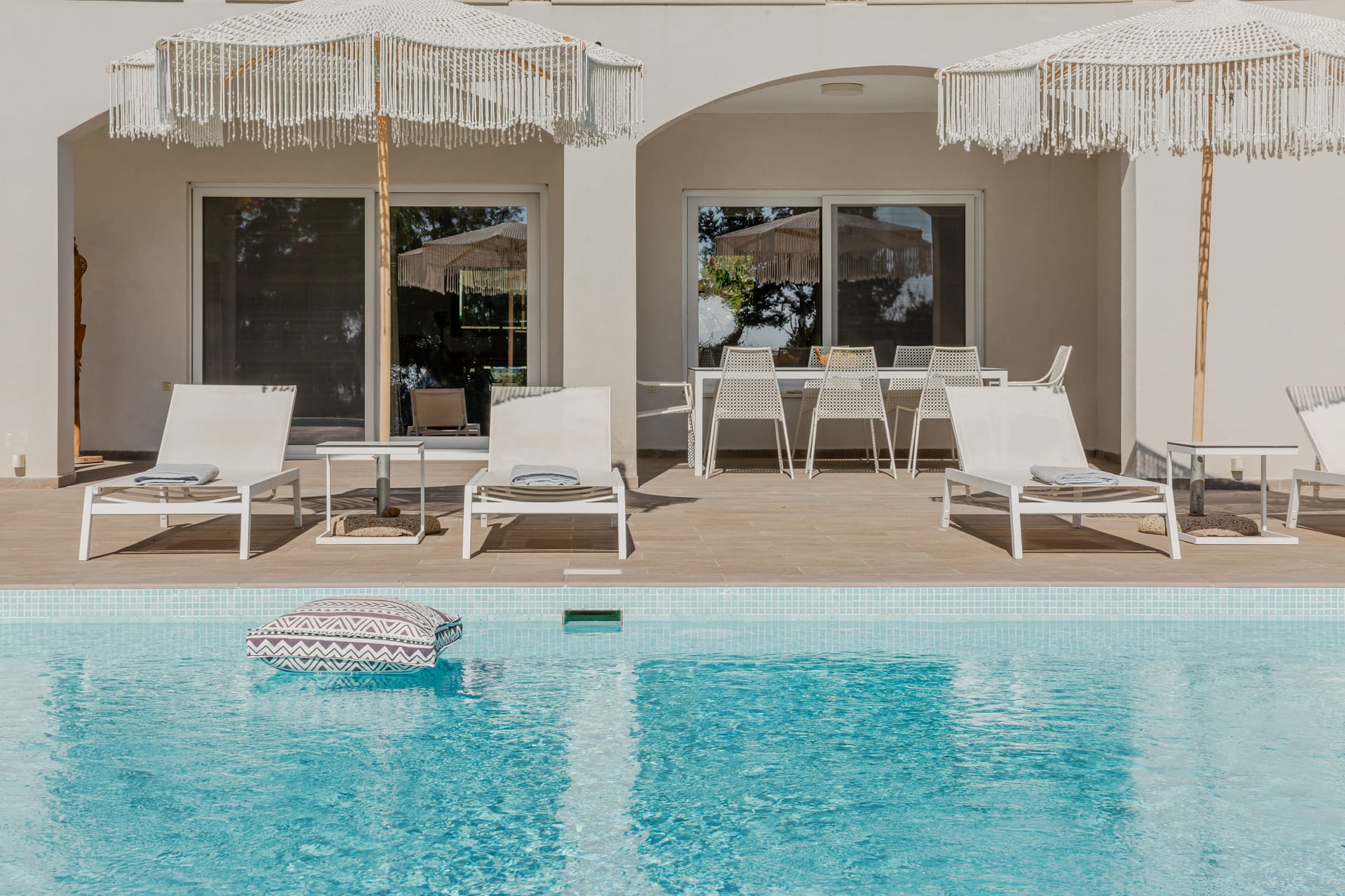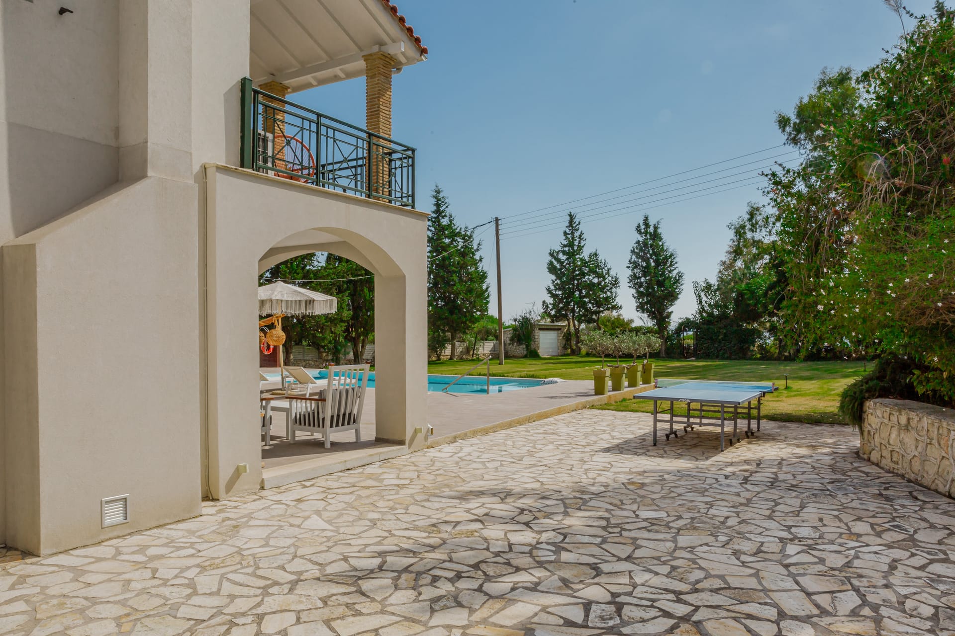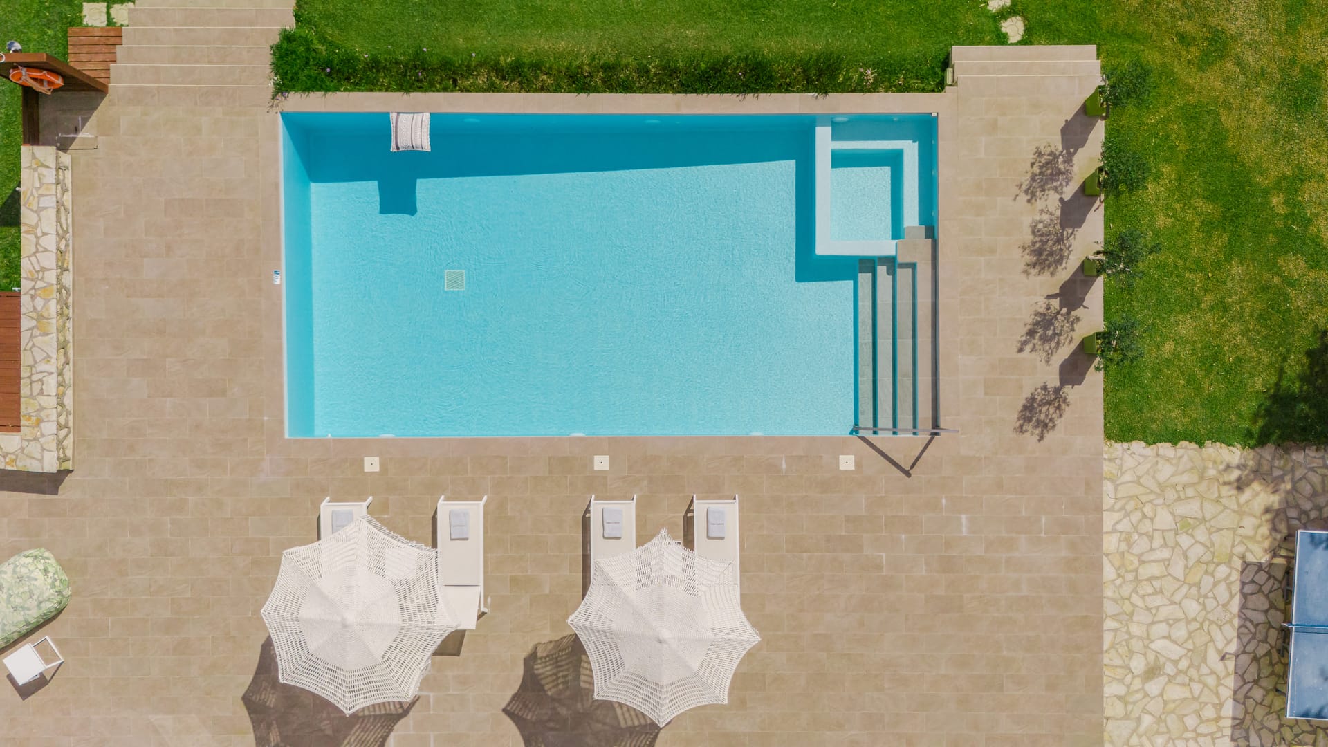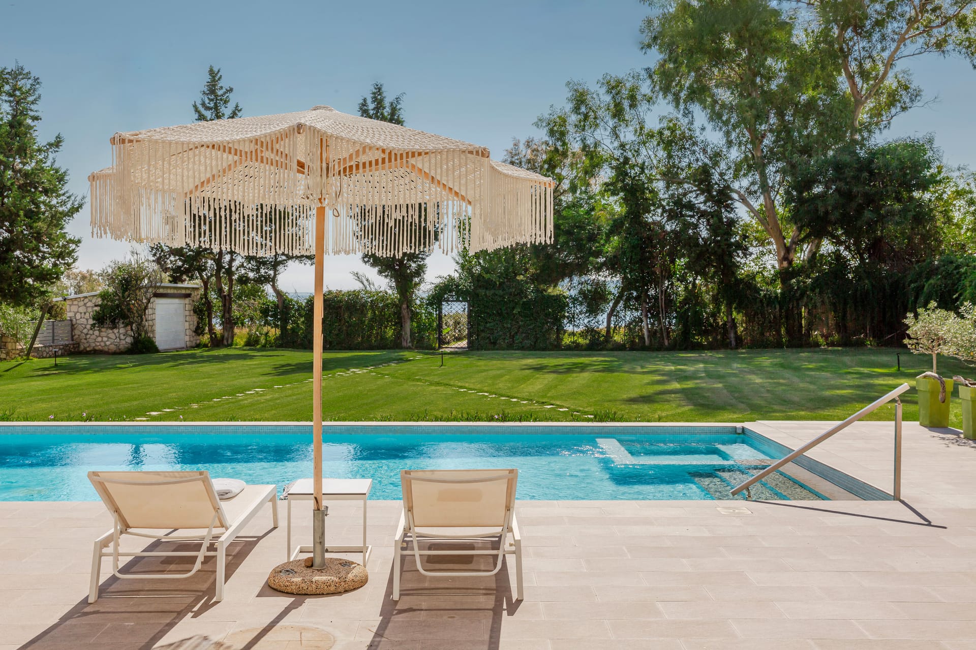 In a quiet location of Agios Sostis, Zakynthos, just a few meters away from a secluded beach, Rivazzurra is a private pool villa of supreme luxury and absolute privacy. The 50 sq.m. swimming pool, which is surrounded by umbrellas and sunbeds, has a jacuzzi function, an eco-cleaning system, a shallow end for children and night lighting. We offer any luxurious amenity you may desire, such as on-demand meal arrangements, private chef services, wonderful sports activities, dining in top-class restaurants, and countless more, coupled with the sublime experience of living in Rivazzurra Villa.
