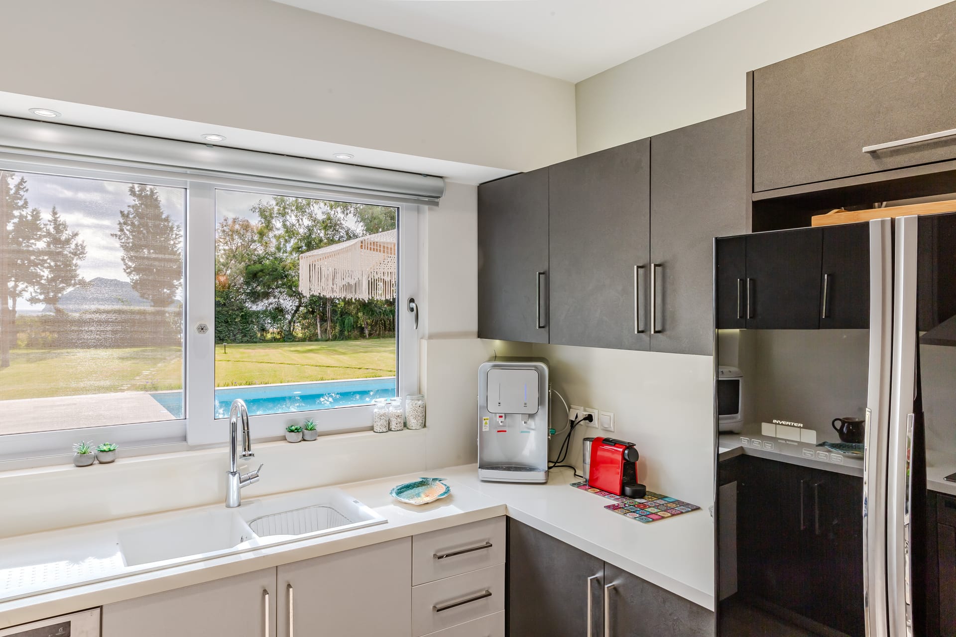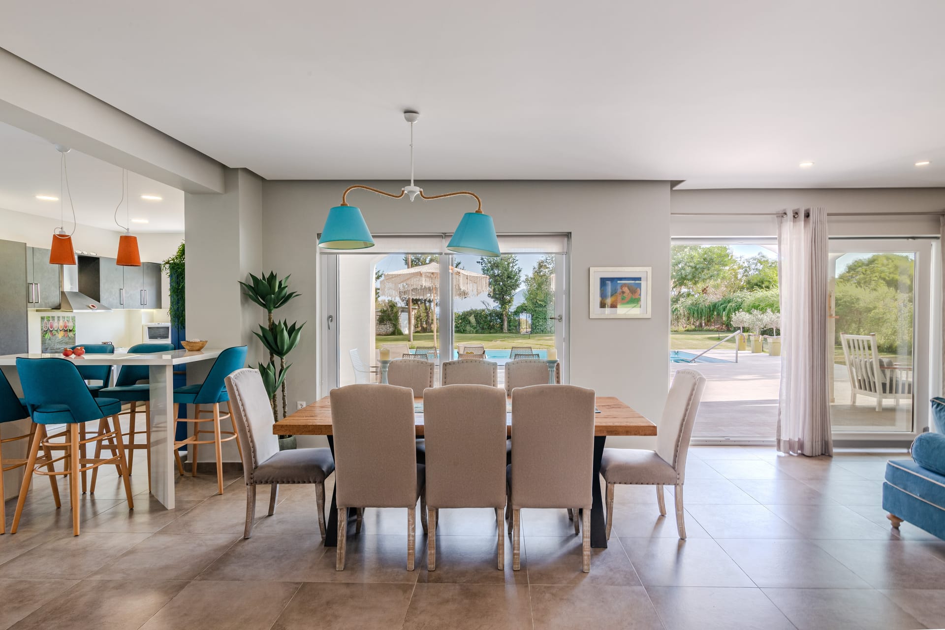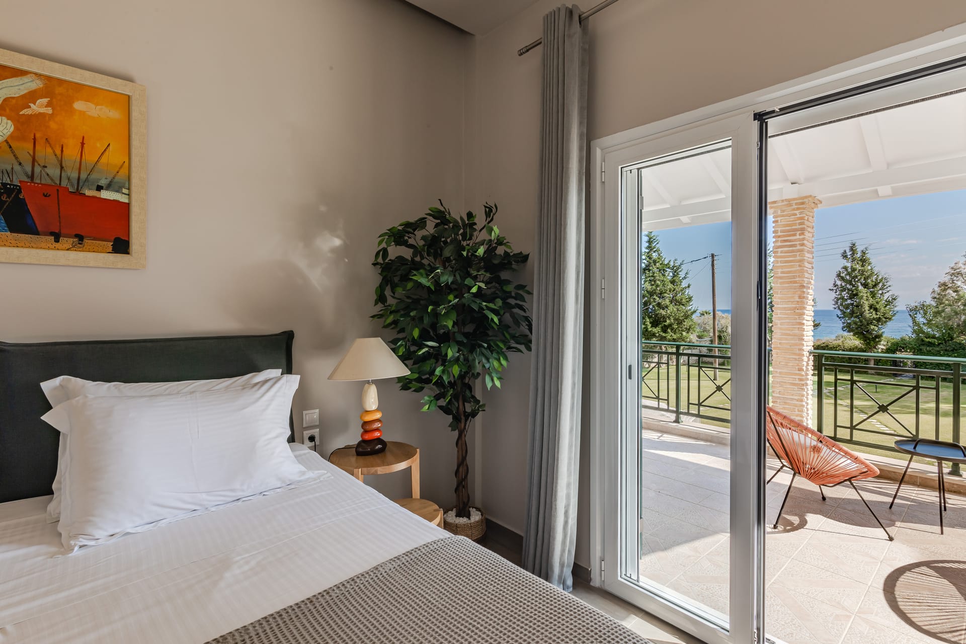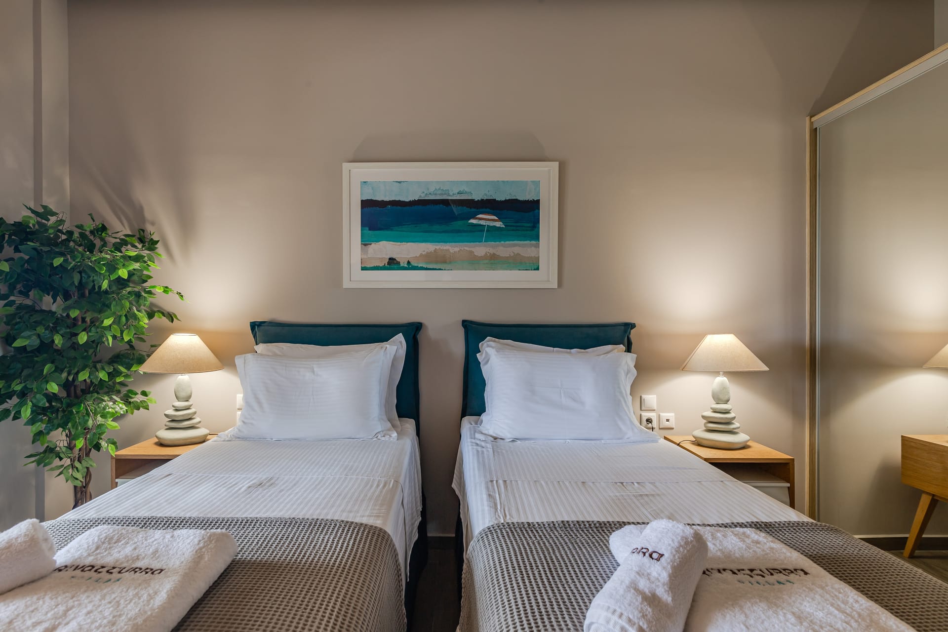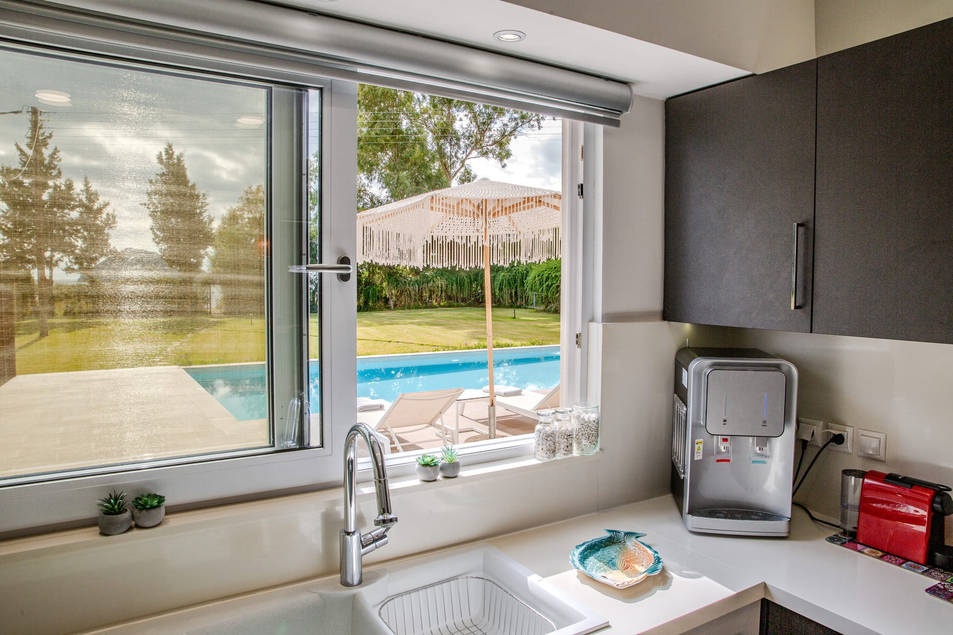 In a quiet location of Agios Sostis, Zakynthos, just a few meters away from a secluded beach, Rivazzurra is a private pool villa of supreme luxury and absolute privacy. The 50 sq.m. swimming pool, which is surrounded by umbrellas and sunbeds, has a jacuzzi function, an eco-cleaning system, a shallow end for children and night lighting. We offer any luxurious amenity you may desire, such as on-demand meal arrangements, private chef services, wonderful sports activities, dining in top-class restaurants, and countless more, coupled with the sublime experience of living in Rivazzurra Villa.