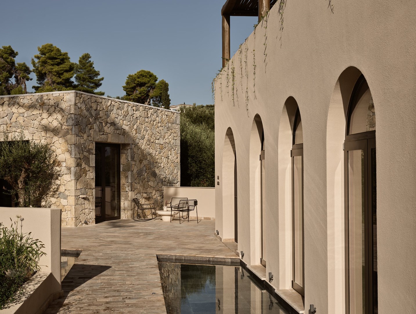“Verde”, meaning “green” in Italian reveals the dialectical relationship of the building with the natural landscape surrounding it, consisting mainly of olive and pine trees and native aromatic herbs of the Greek countryside. The nickname “Pierros” is an homage to the ancestors of the owners’ family, whose traditional cottage was placed on the foothill and was partially destroyed by an earthquake which struck the island of Zakynthos in 1952.