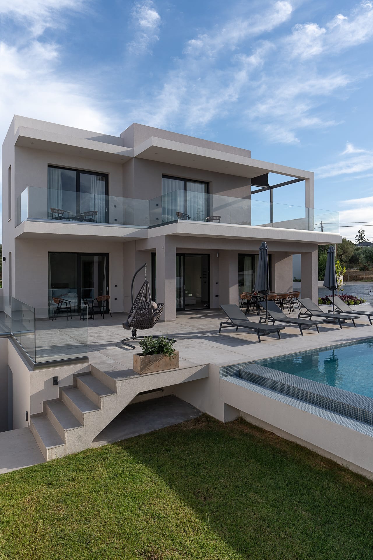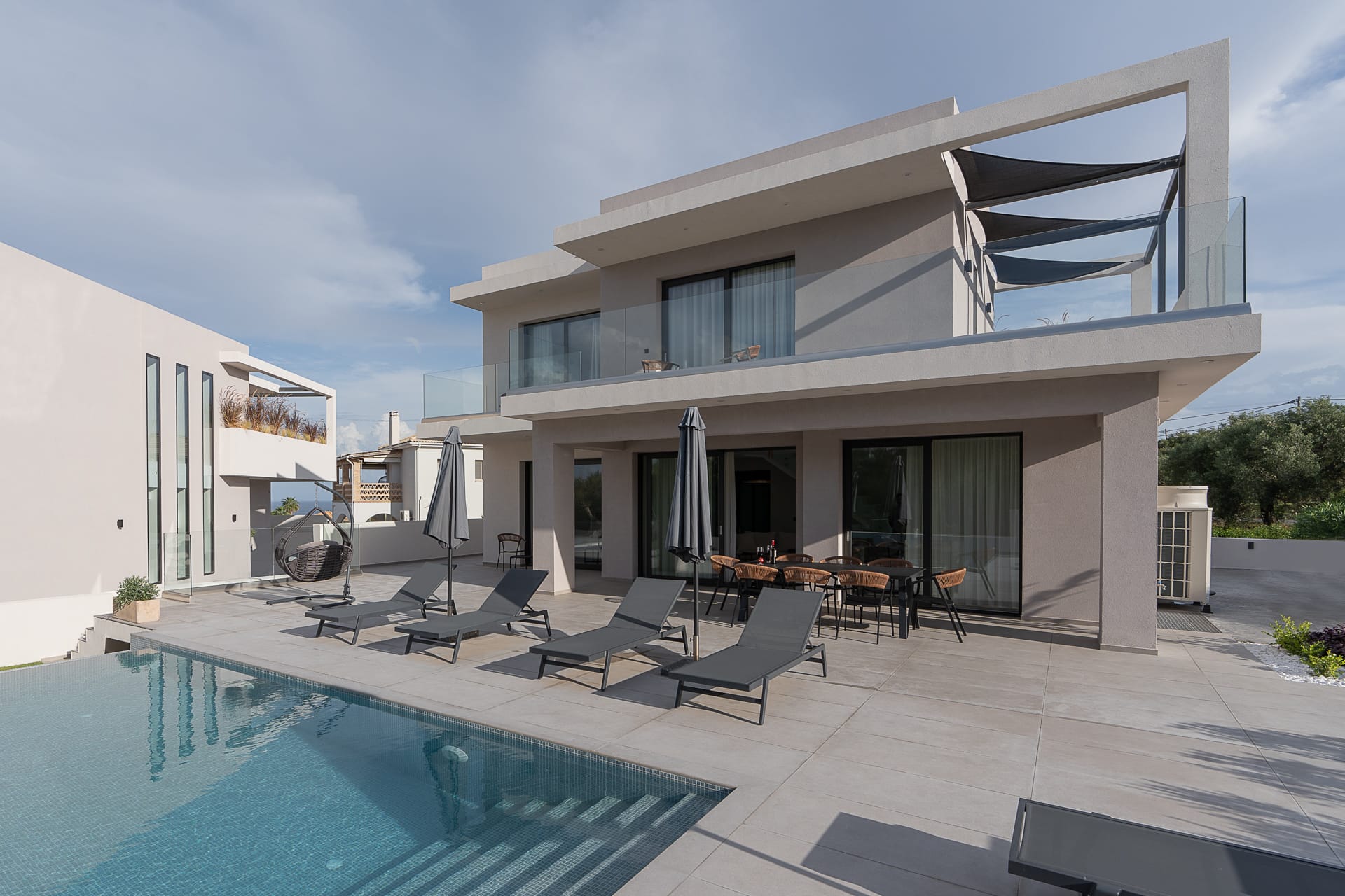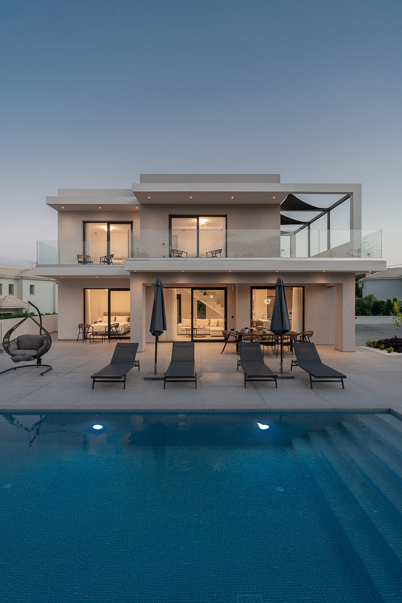 Enhance your holiday by experiencing ultimate relaxation in a villa of high and minimal aesthetics, featuring 5 bedrooms, 6 bathrooms, a spacious terrace, and a private pool. Enjoy family moments during fun barbecue nights, take refreshing dips, and savor the unrivaled view of the stunning Ionian Sea.