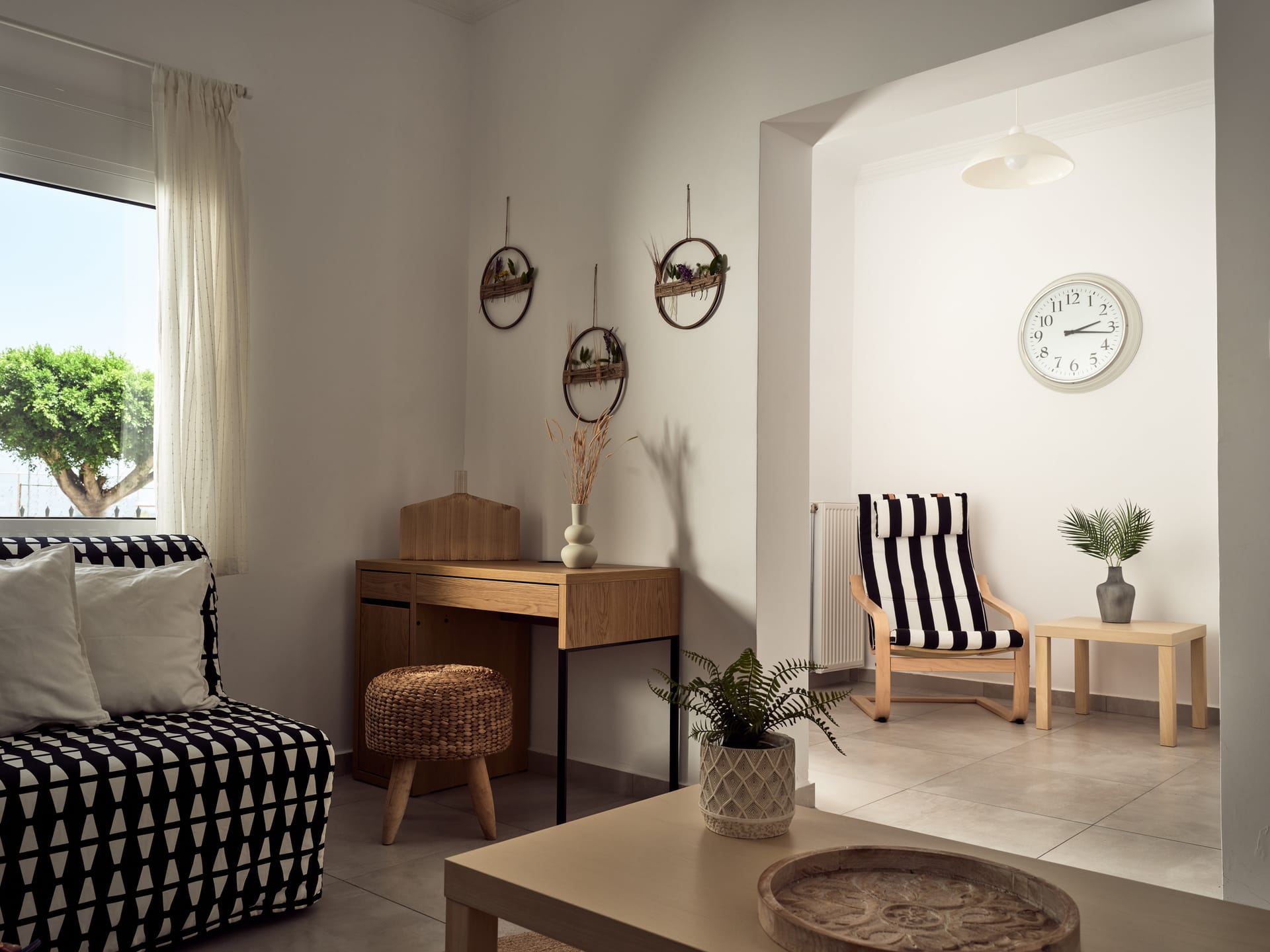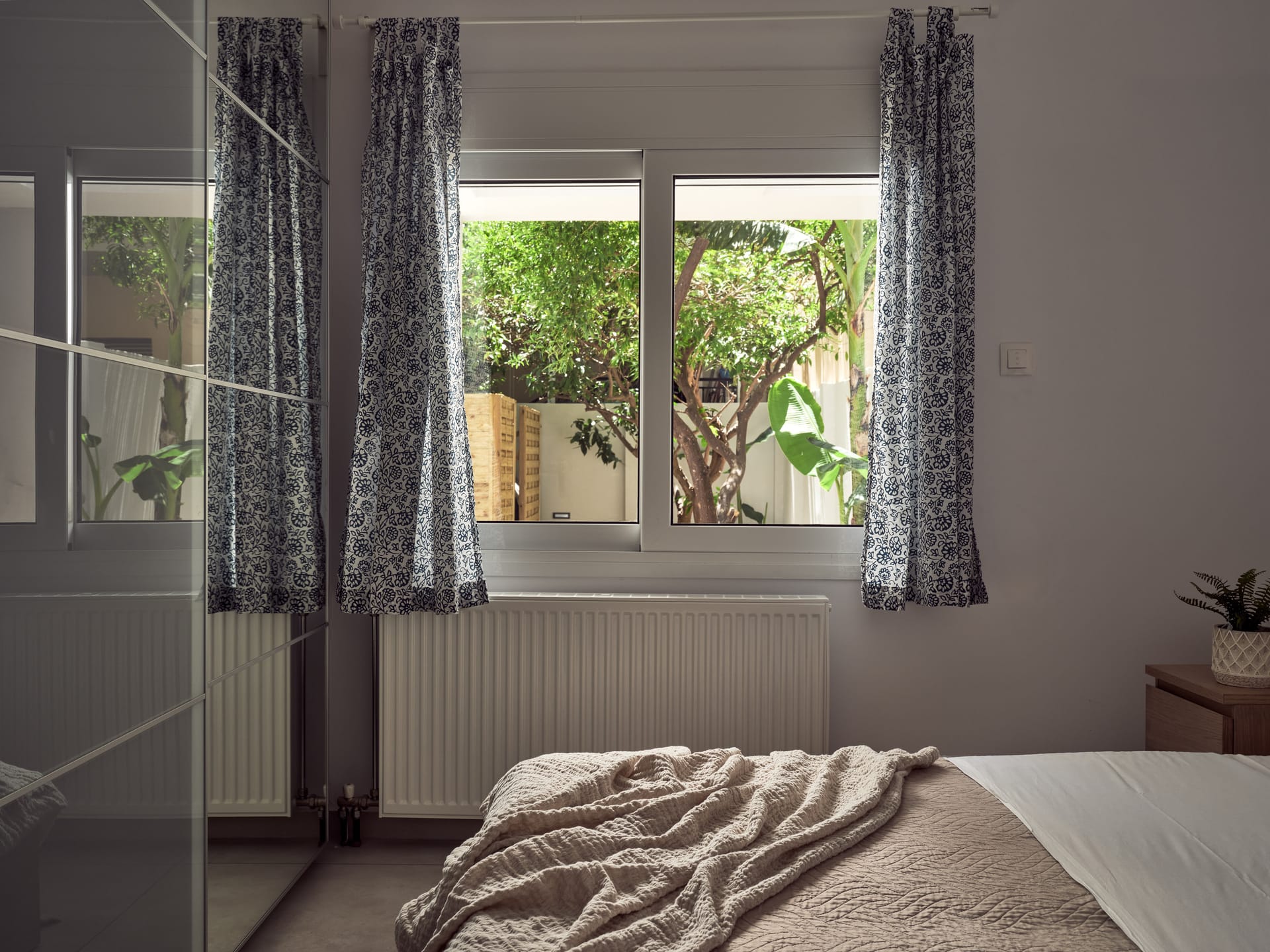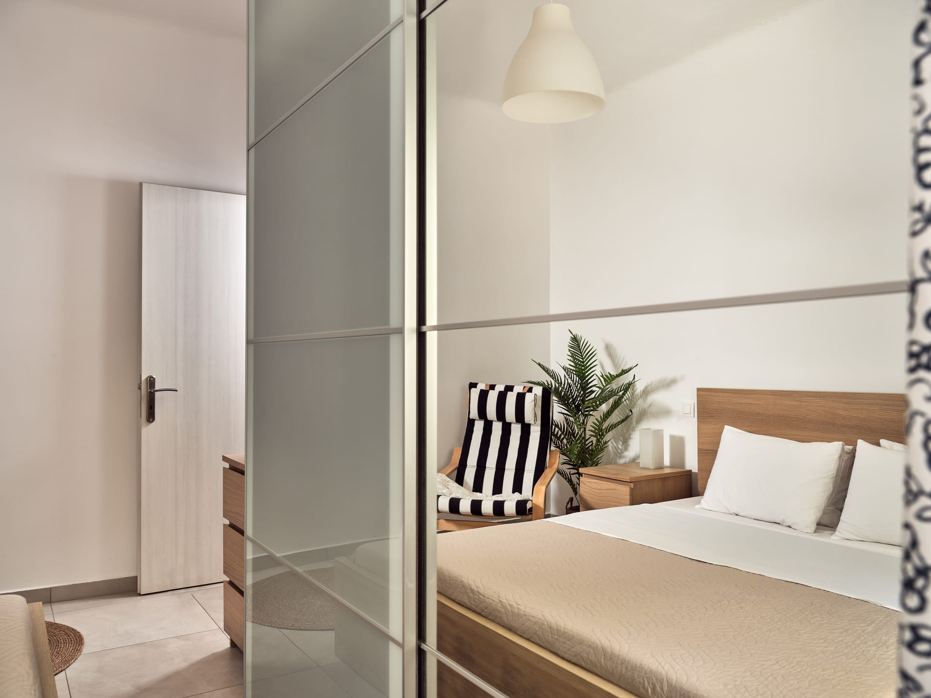 Margie City Apartment: One bedroom apartment fully equipped, with garden near the central square of Zakynthos town, in front of the beach with free sunbeds, next to open air cinema, beach volley and tennis court.
