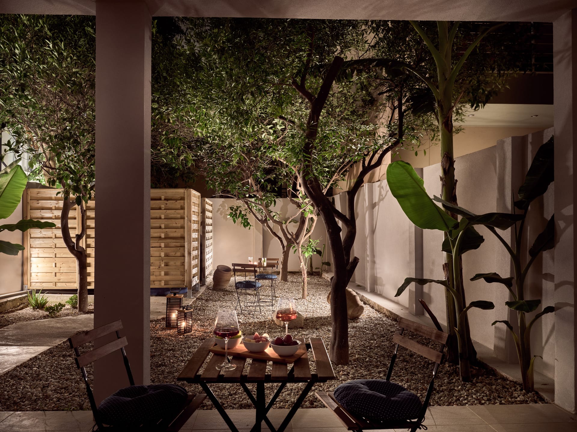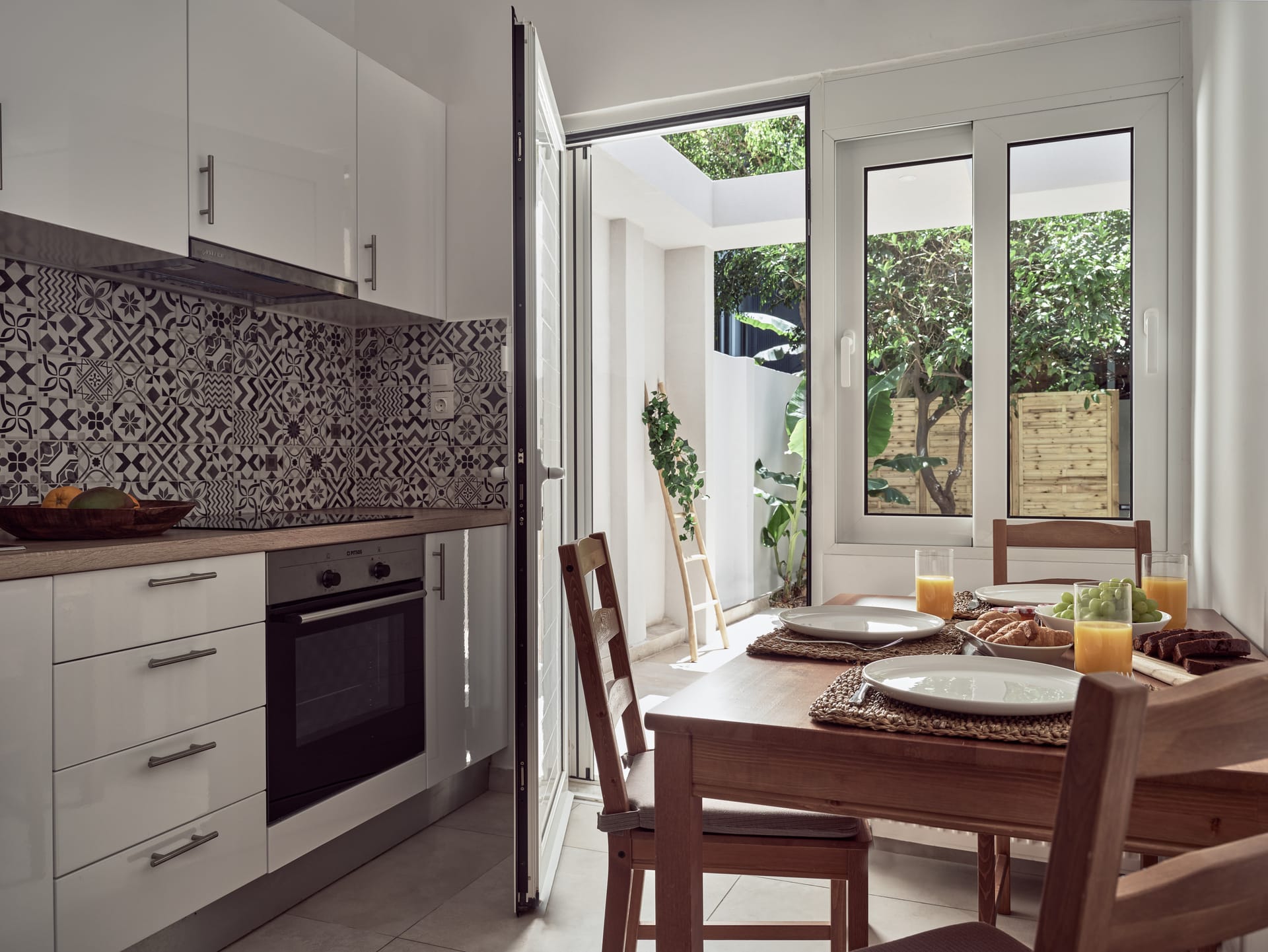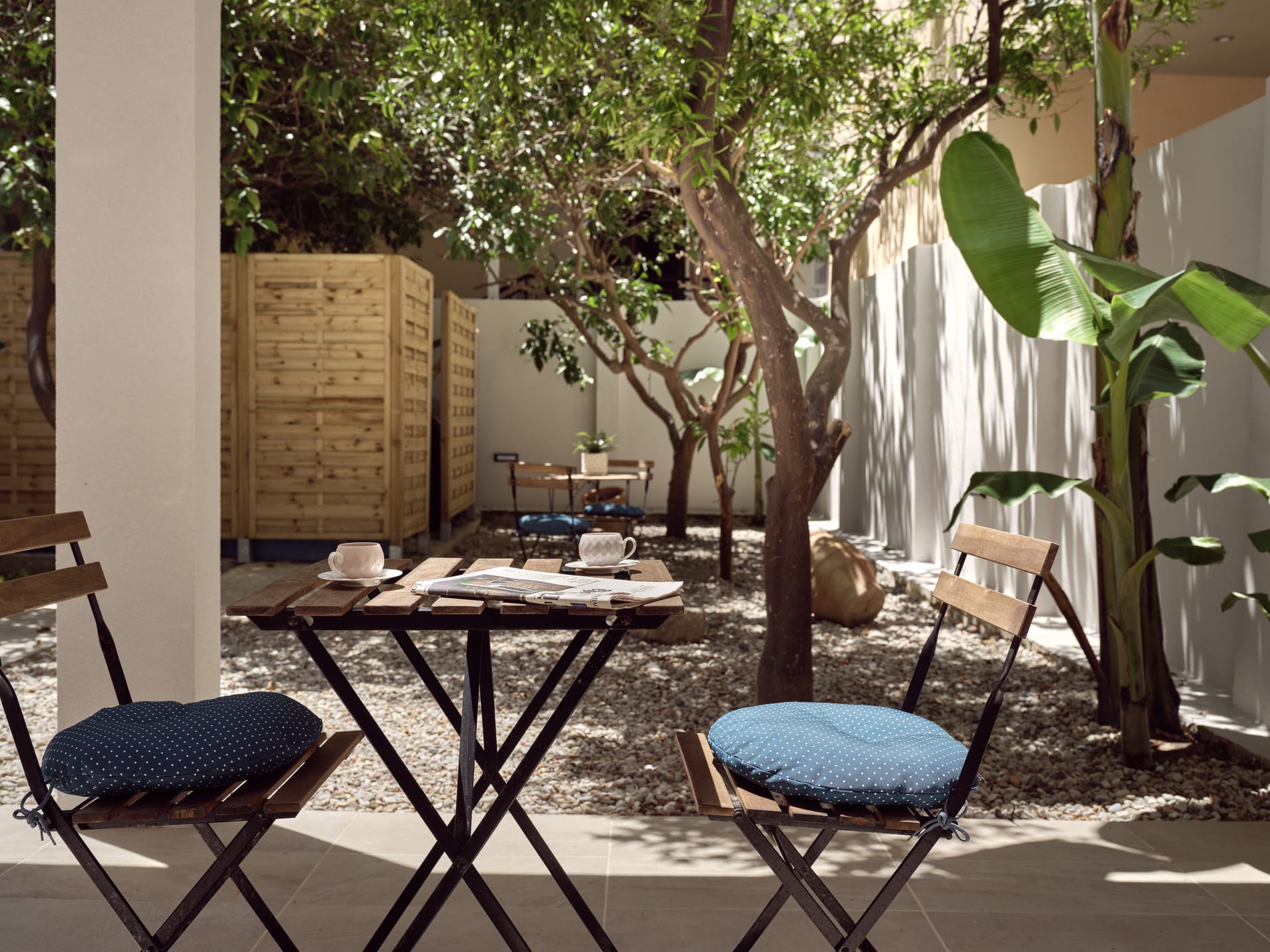 Margie City Apartment: One bedroom apartment fully equipped, with garden near the central square of Zakynthos town, in front of the beach with free sunbeds, next to open air cinema, beach volley and tennis court.