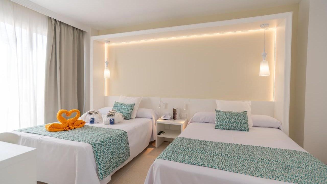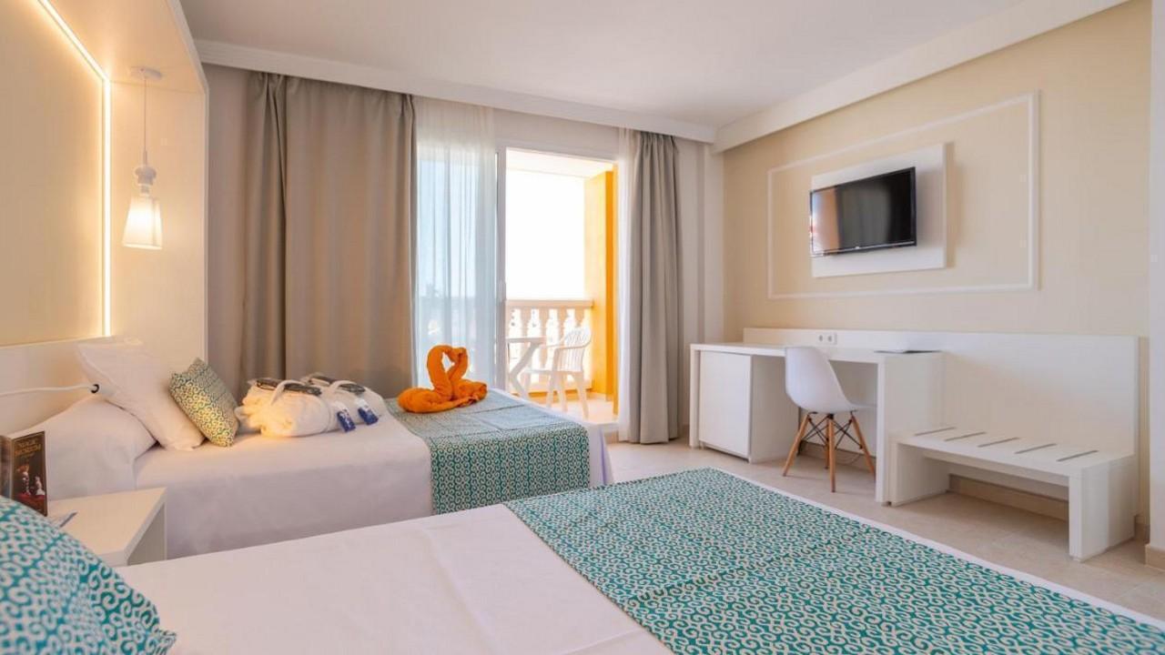 ✔ Семейства с деца — големи стаи с две големи легла, детски клуб, анимация и плитък пясъчен плаж пред хотела.