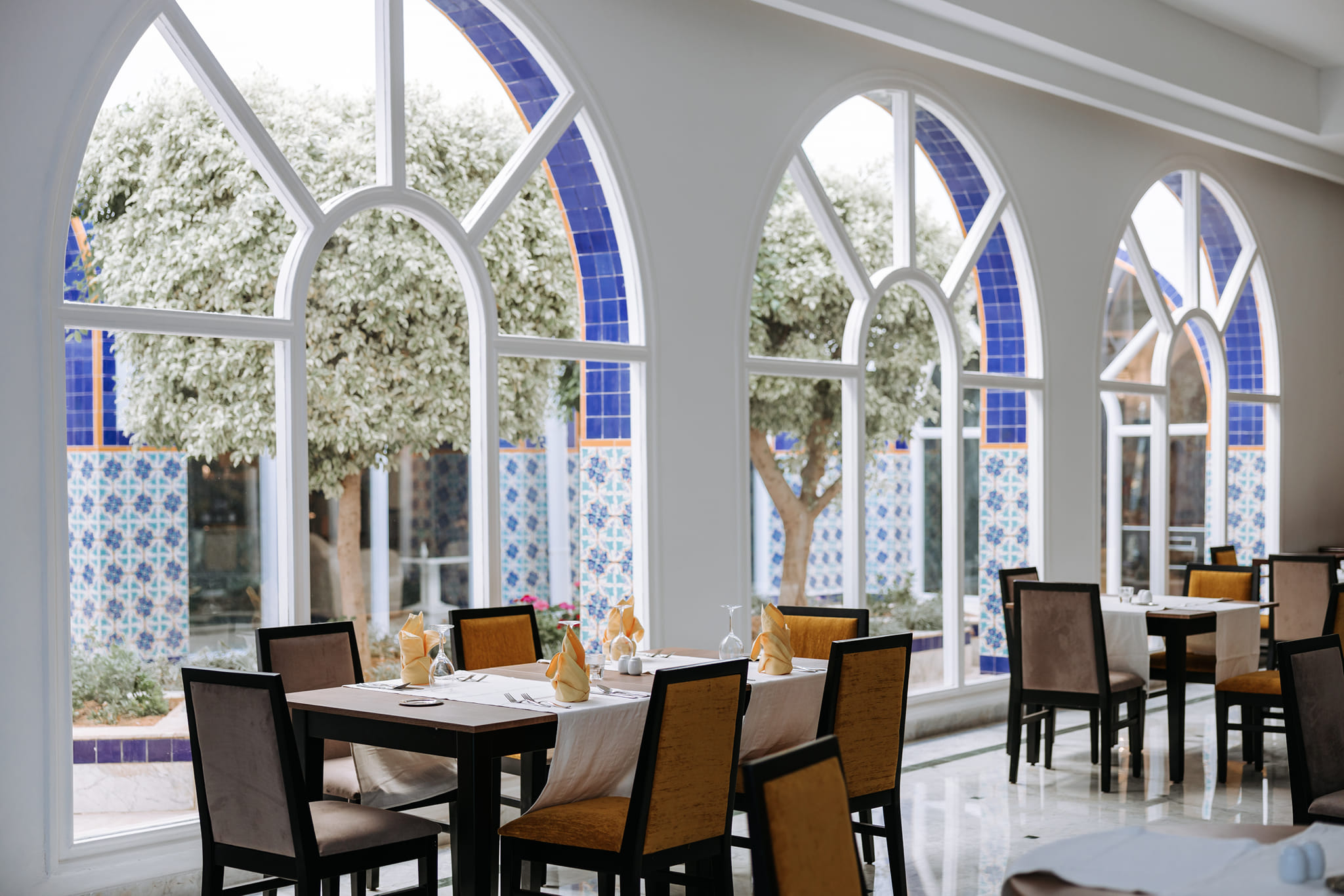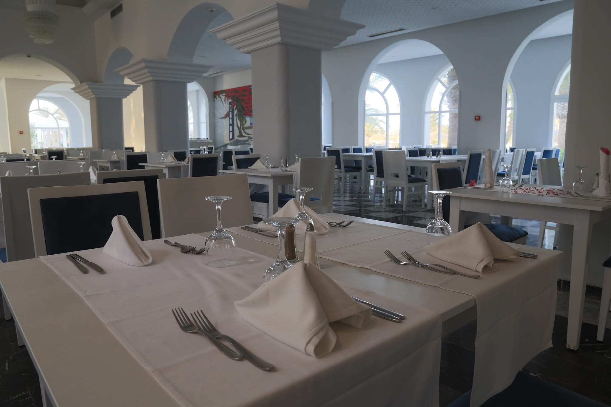 Основен ресторант El Menzel, а ла карт ресторант Il Gusto с тунизийска и средиземноморска кухня (платен, 1 безплатно посещение за престой, след предварителна резервация), а ла карт ресторант La Pergola с италианска кухня (след предврителна резервация), а ла карт ресторант на плажа Le Sporting Beach (след предварителна резервация, от юни до септември), лоби бар Blue, бар басейн Granada (май-октомври), бар на плажа Le Sporting Beach (май-октомври), диско бар Le Mirage (веднъж седмично), мавританско кафене Andalusia (наргиле - срещу заплащане), открит басейн с детска зона, закрит басейн (отопляем през зимата), СПА център, конферентна зала, магазини, банкомат.