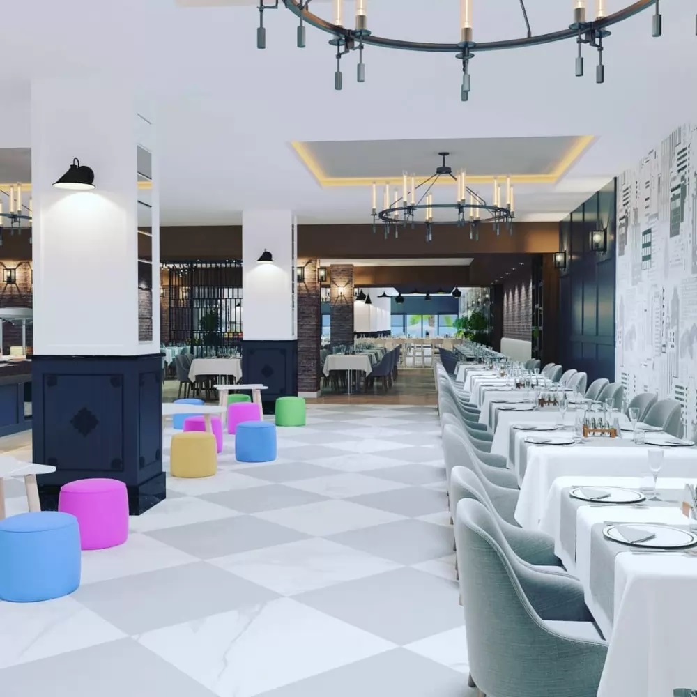 Основен ресторант, 1 а-ла-карт ресторанта (1 безплатно посещение при минимум 7 нощувки, с предварителна резервация), 1 снек ресторант, сладкарница, 3 бара, 2 открити басейна, 4 водни пързалки, СПА център, магазини, паркинг.