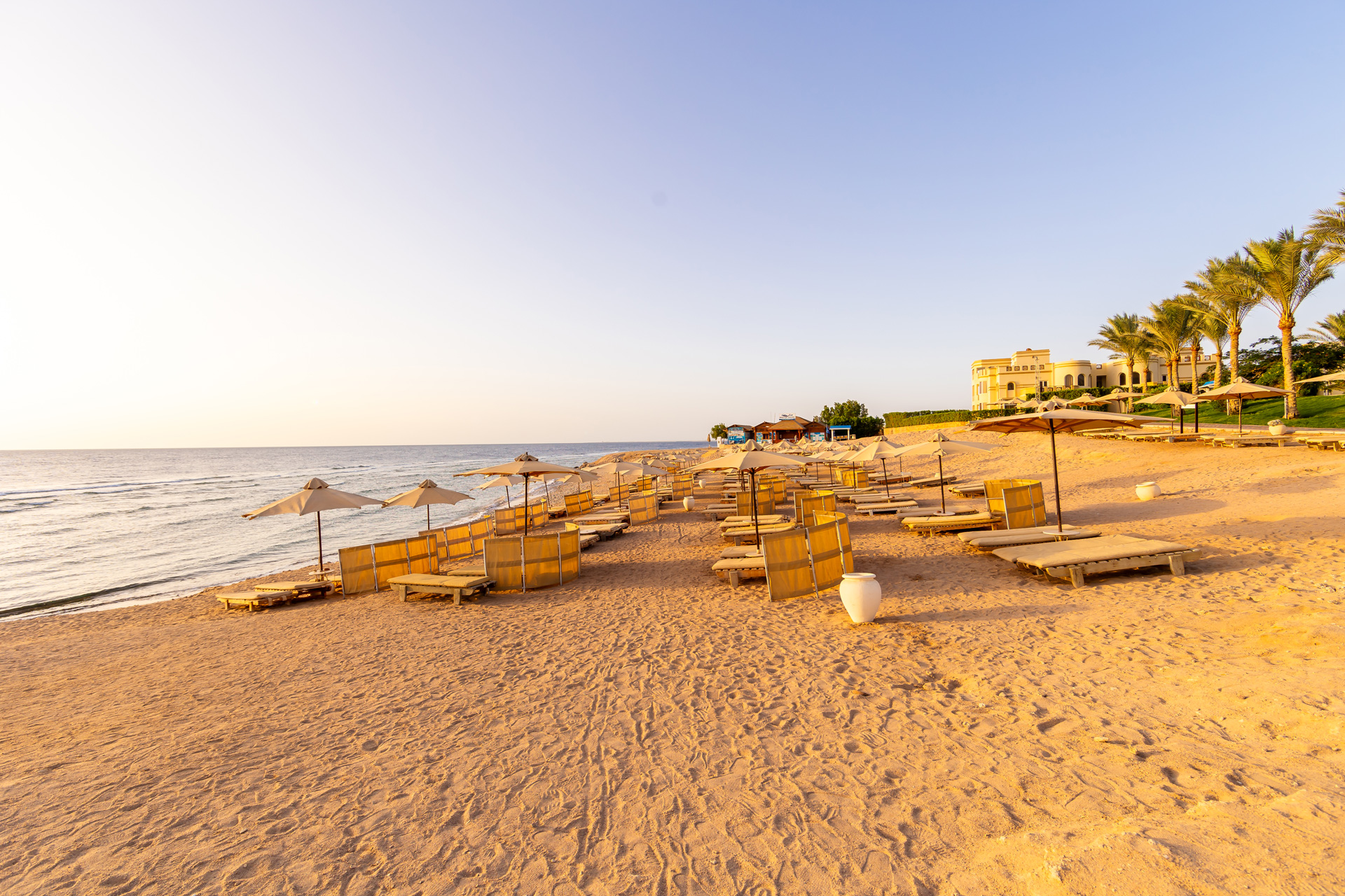 Собствен, с коралов риф. Чадъри, шезлонги и матраци на плажа и при басейна - безплатно. Плажни кърпи – безплатно.