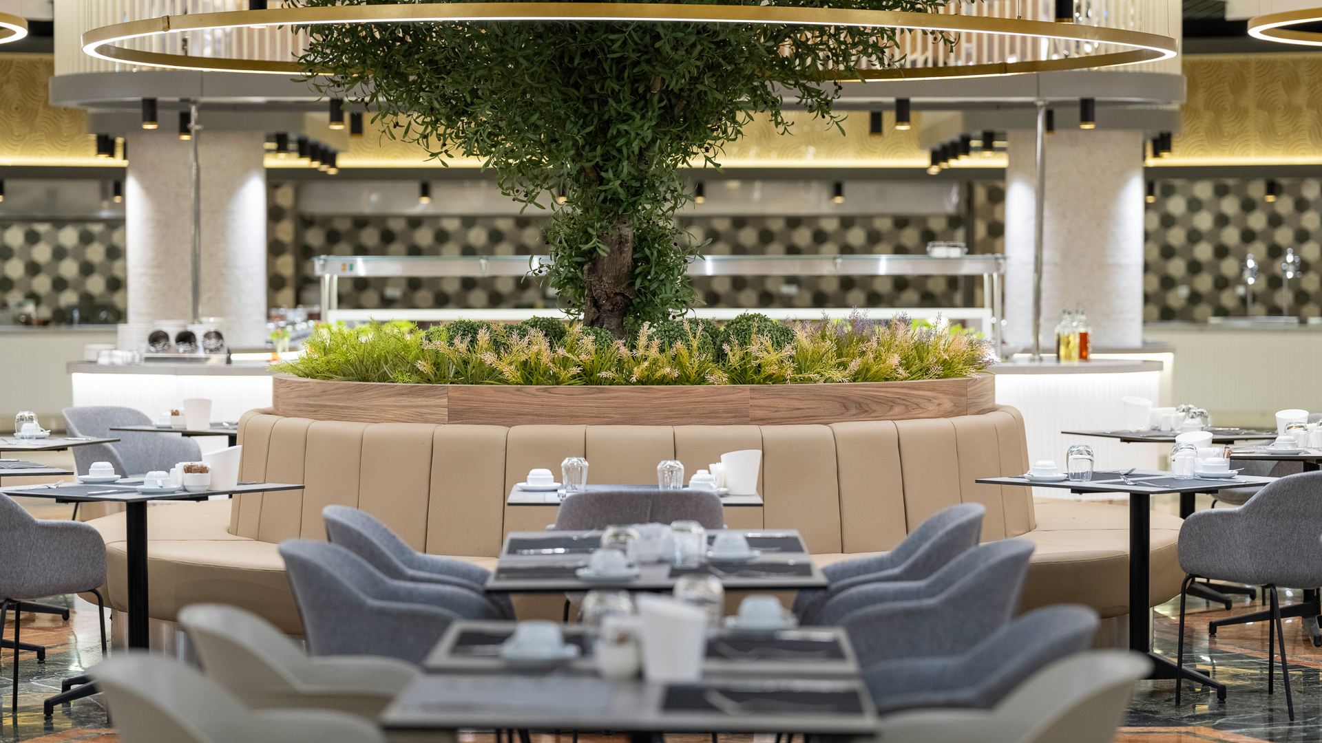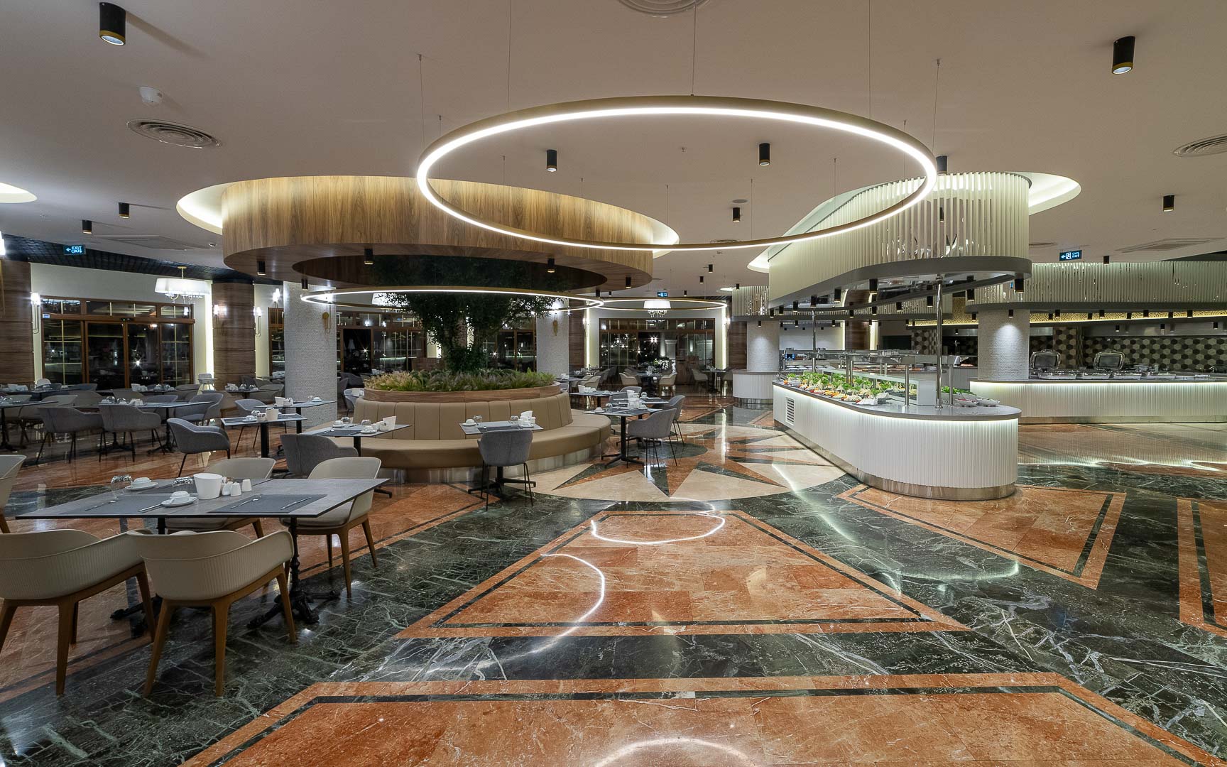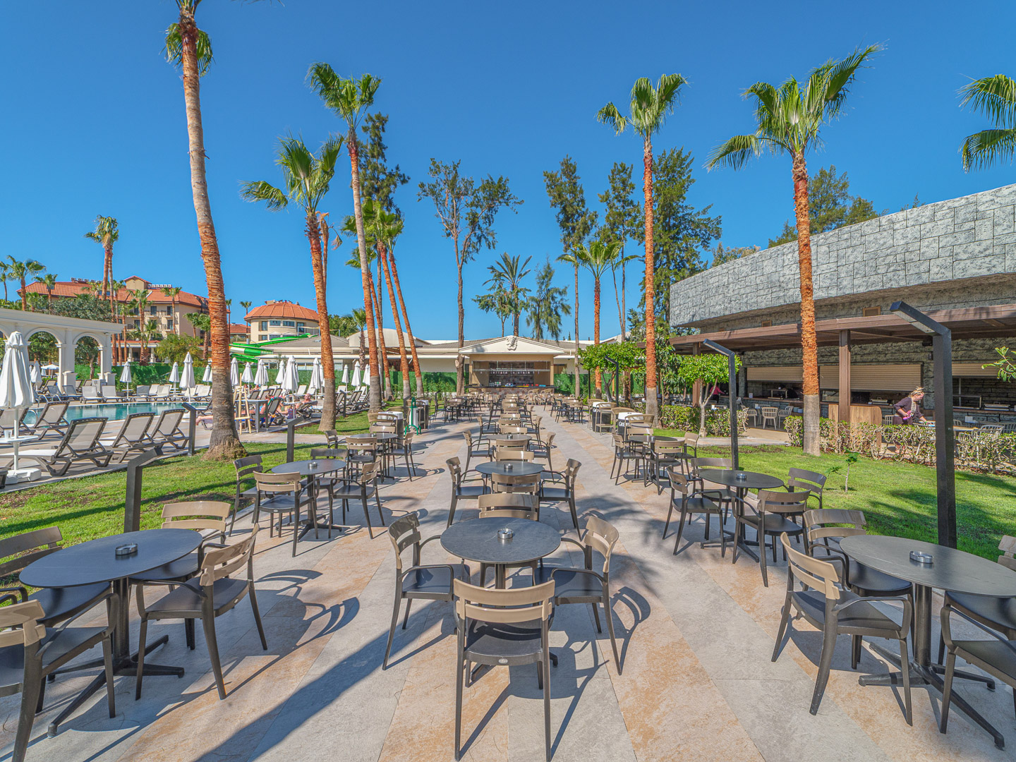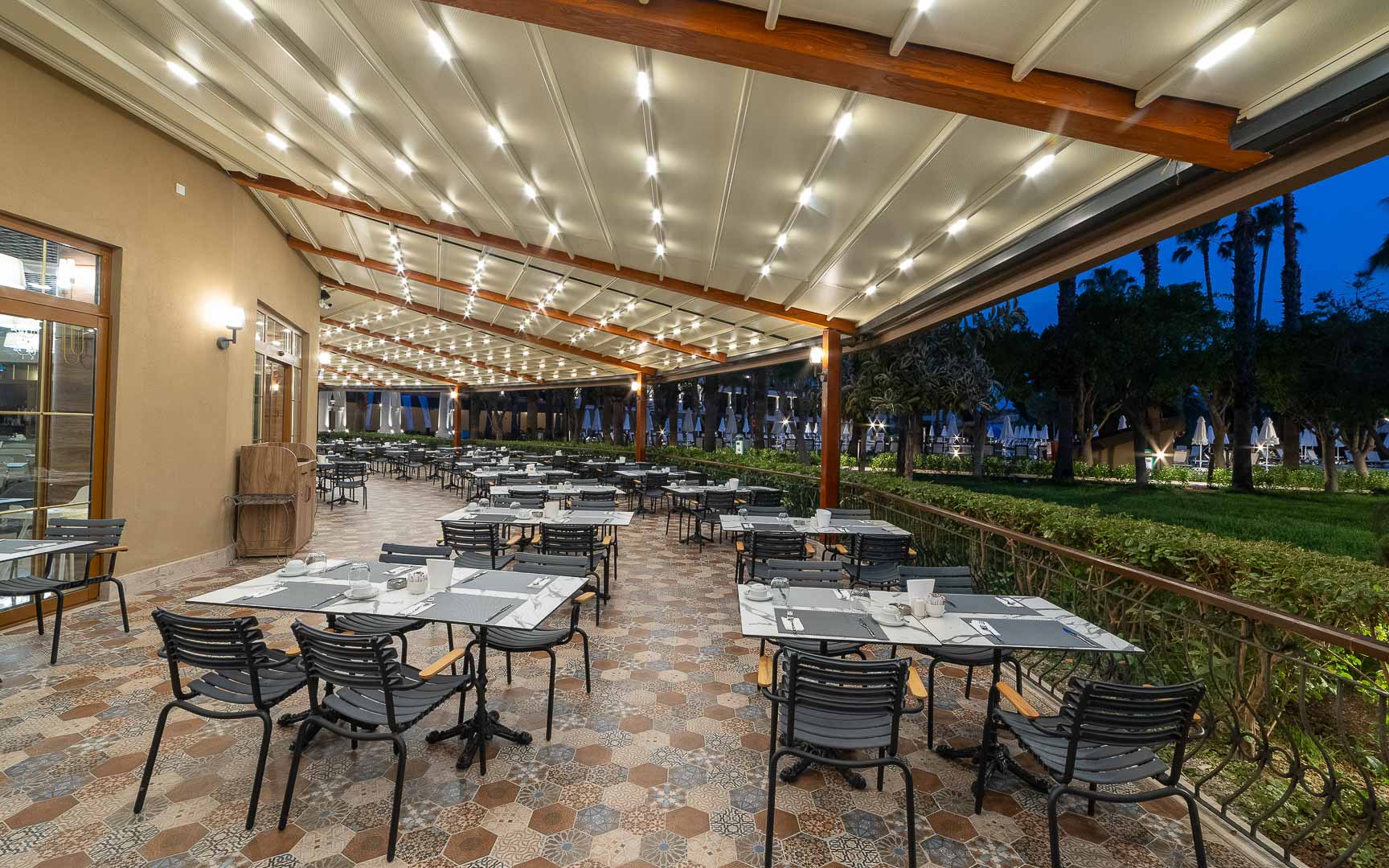 Основен ресторант, 1 а-ла-карт ресторант (италиански/рибен – 1 безплатно посещение на при минимум 7 нощувки, с предварителна резервация), 2 снек ресторанта (1 от които на плажа), сладкарница, 5 бара, 3 открити и 1 закрит басейн, 2 водни пързалки, СПА център, 4 конферентни зали.