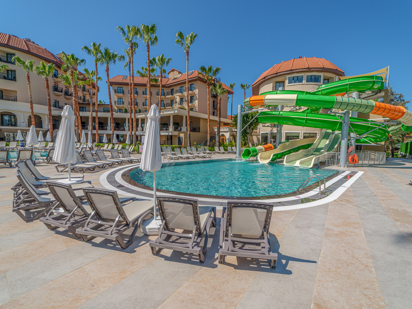 Намира се на 58 км от летище Анталия, на 65 км от центъра на Анталия, на 11 км от центъра на Сиде, на 500 м от брега на морето. Построен 1998 г., на обща площ от 26 000 м2. Частично реновиран 2023/2024 г.