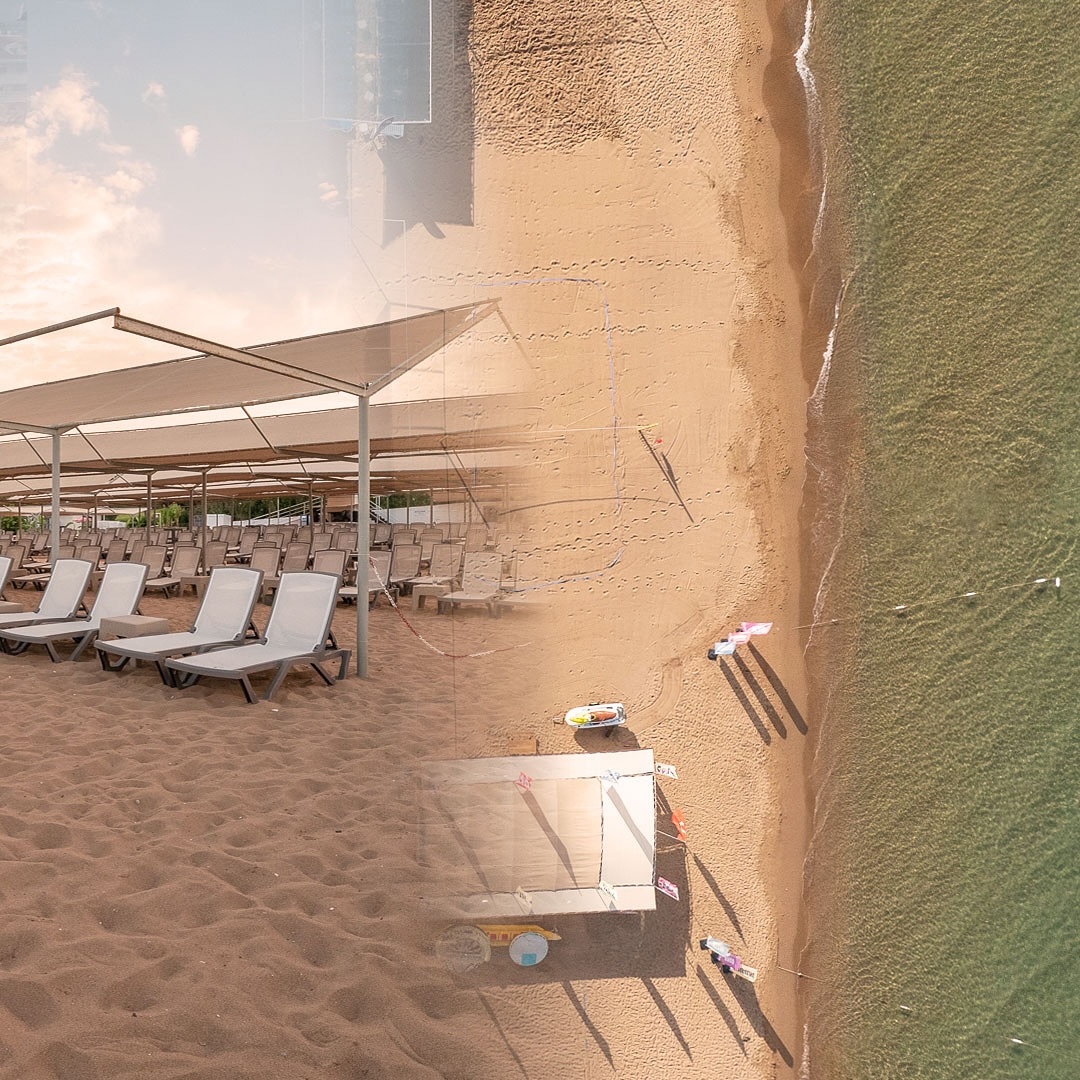 Собствен, на 500 м. от хотела, пясъчен. Безплатен шатъл до плажа (в определен часови диапазон). Чадъри, шезлонги и плажни кърпи на плажа и при басейна – безплатно.