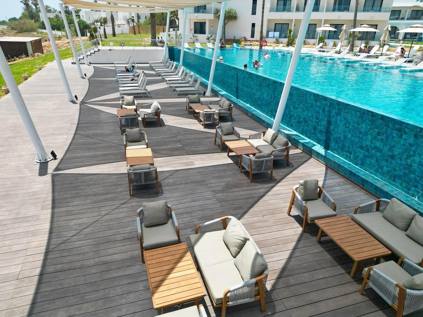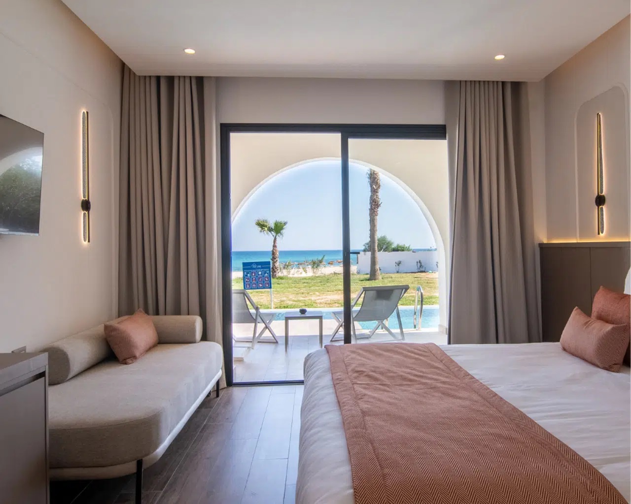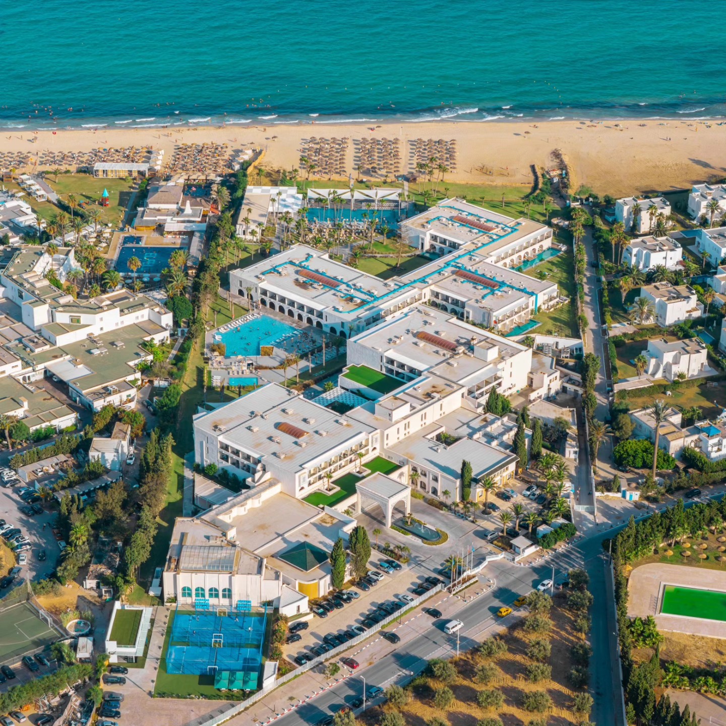 Намира се на 58 км от летище Енфида, на 5 км от центъра на Хамамет, на брега на морето. Последно реновиран през 2024 год.