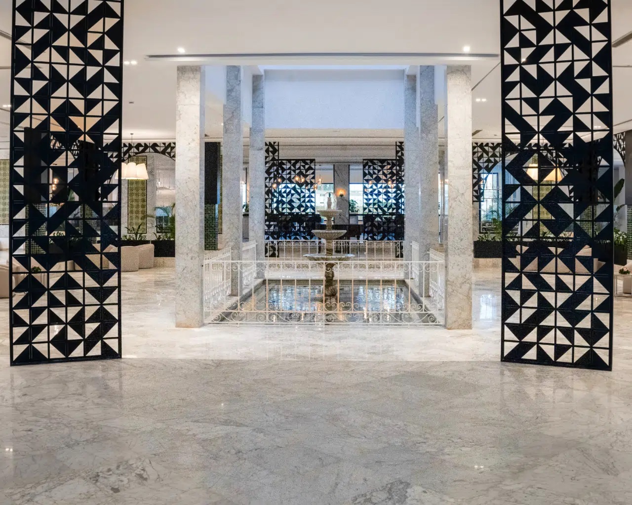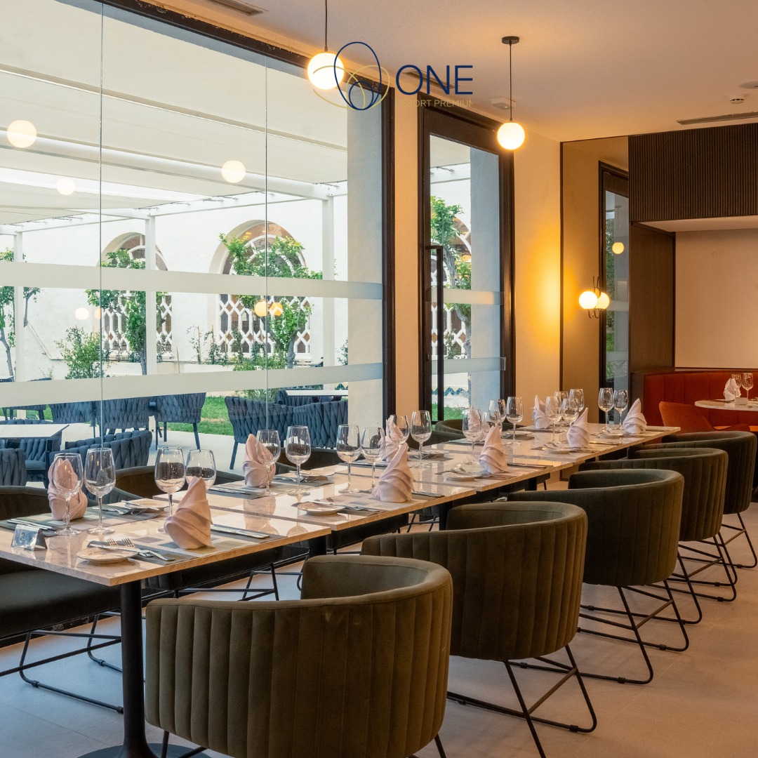 Основен ресторант Meridian, снек бар L ‘Express Gourmet, плажен бар Prime One, лоби бар, италиански а ла карт ресторант La Cucina (срещу заплащане, 1 безплатно посещение за престой, след предварителна резервация), базилски а ла карт ресторант Fogo de Chao (срещу заплащане, 1 безплатно посещение за престой, след предварителна резервация), мавританско кафене (срещу заплащане), открит басейн, отделен басейн за възрастни, закрит басейн, денонощна рецепция, СПА център, магазини за сувенири, обмяна на валута.