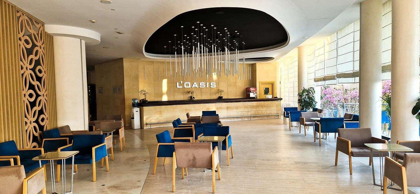 Основен ресторант Le Grand, два тематични а-ла-карт ресторанта Le Panache (едно безплатно посещение с 24 часа предварителна резервация), Dragon (ресторант с азиатска кухня, платен), снек ресторант до басейна и барбекю ресторант до плажа (работи само през висок сезон), лоби бар, бар басейн, диско бар Le Theatre, мавританско кафене, пиано бар Carillion (срещу заплащане), плажен бар, 1 открит басейн с бар, закрит басейн (отоплява се от ноември до март, денонощна рецепция, обменно бюро, конферентна зала, анимация, СПА център.